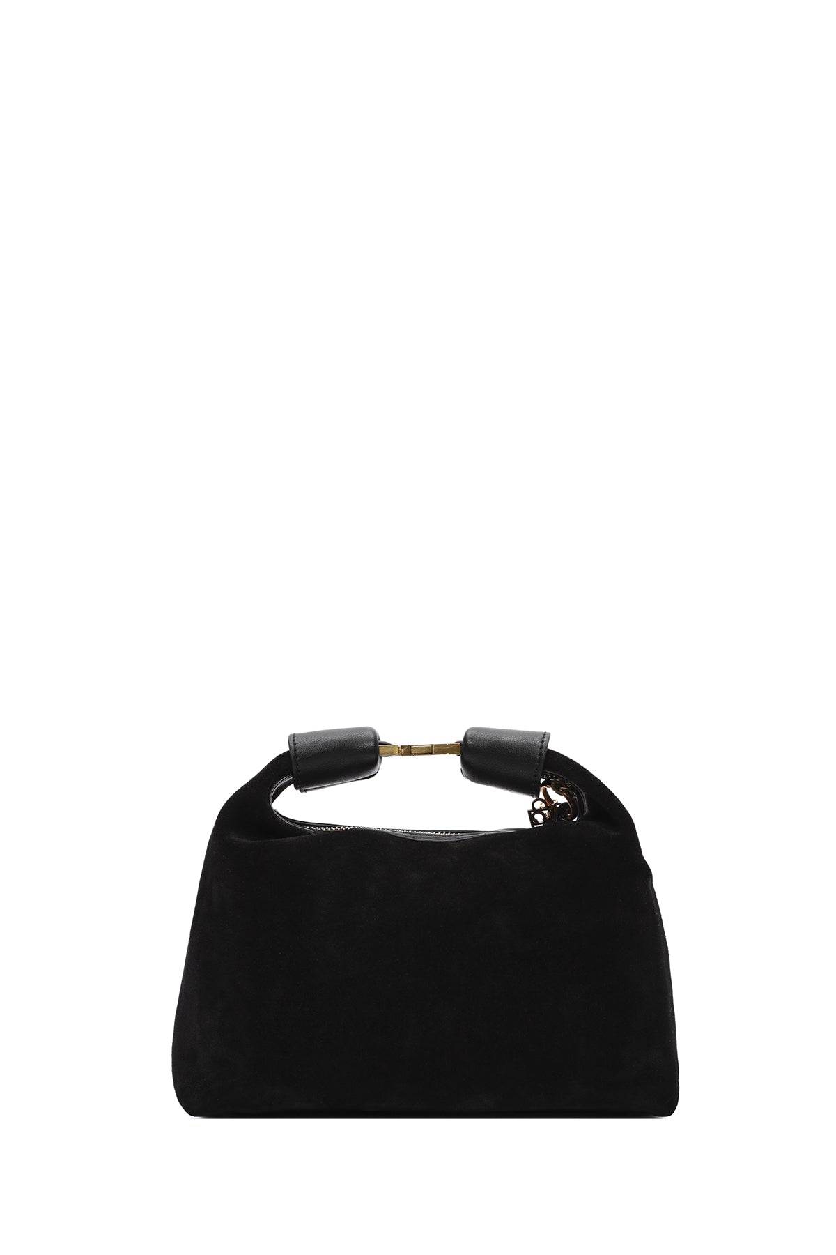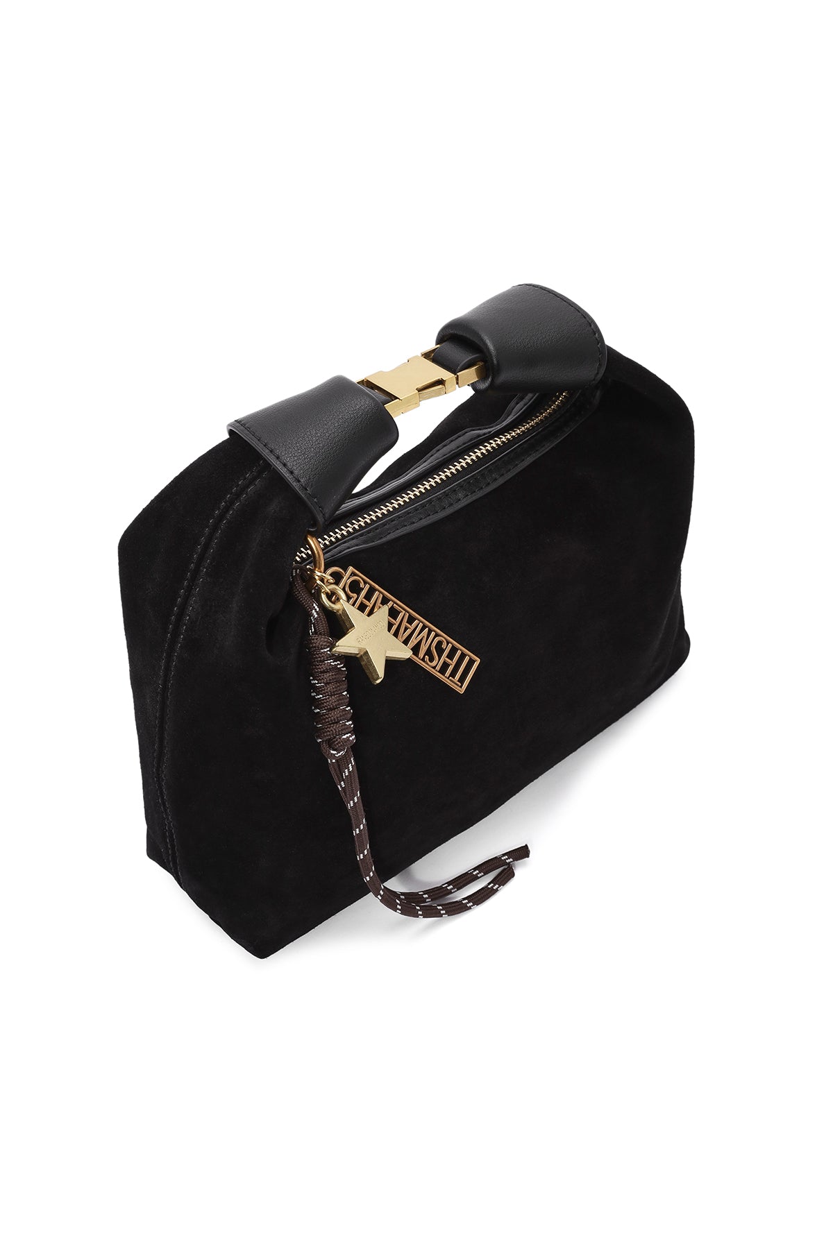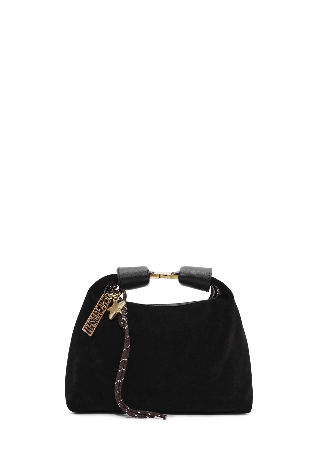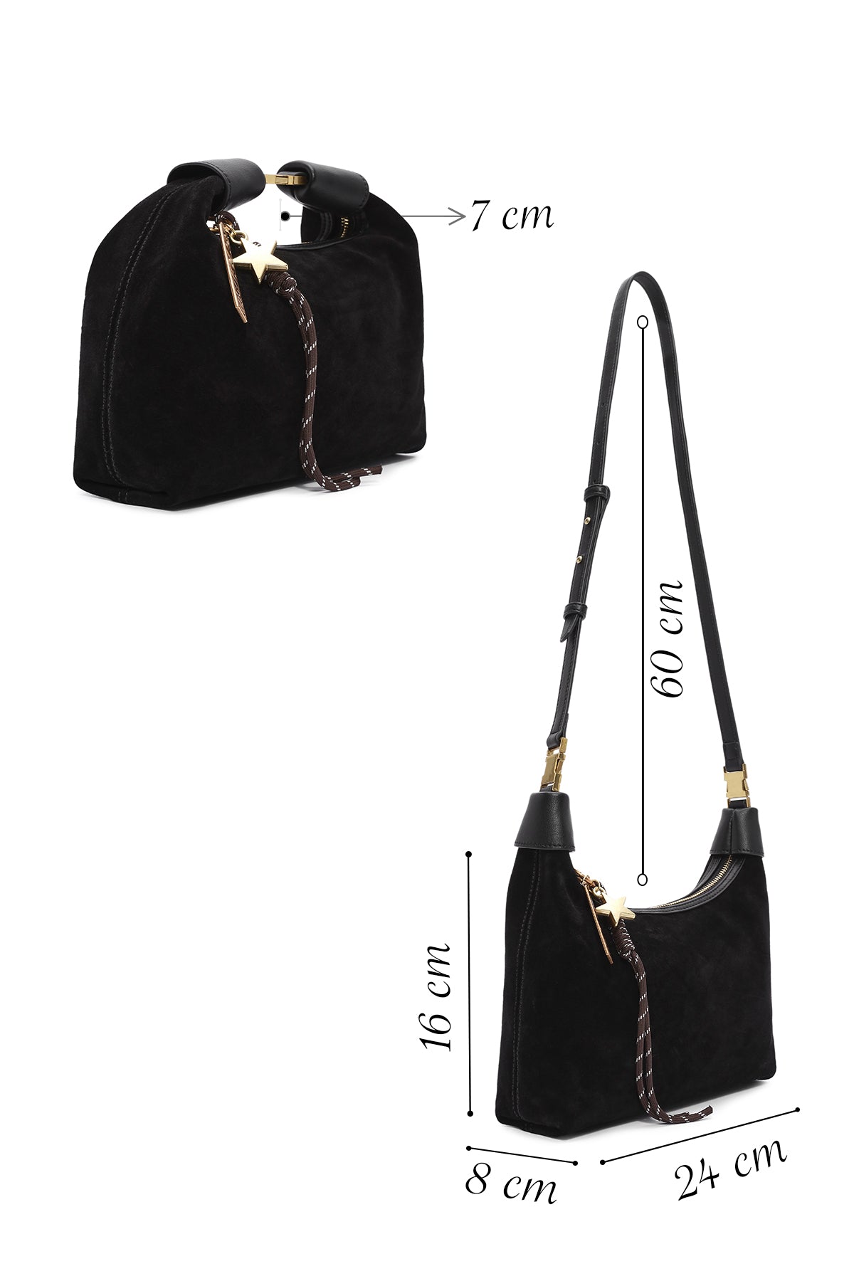 Kadın Siyah Uzun Askılı Süet Deri Mini Kol Çantası
