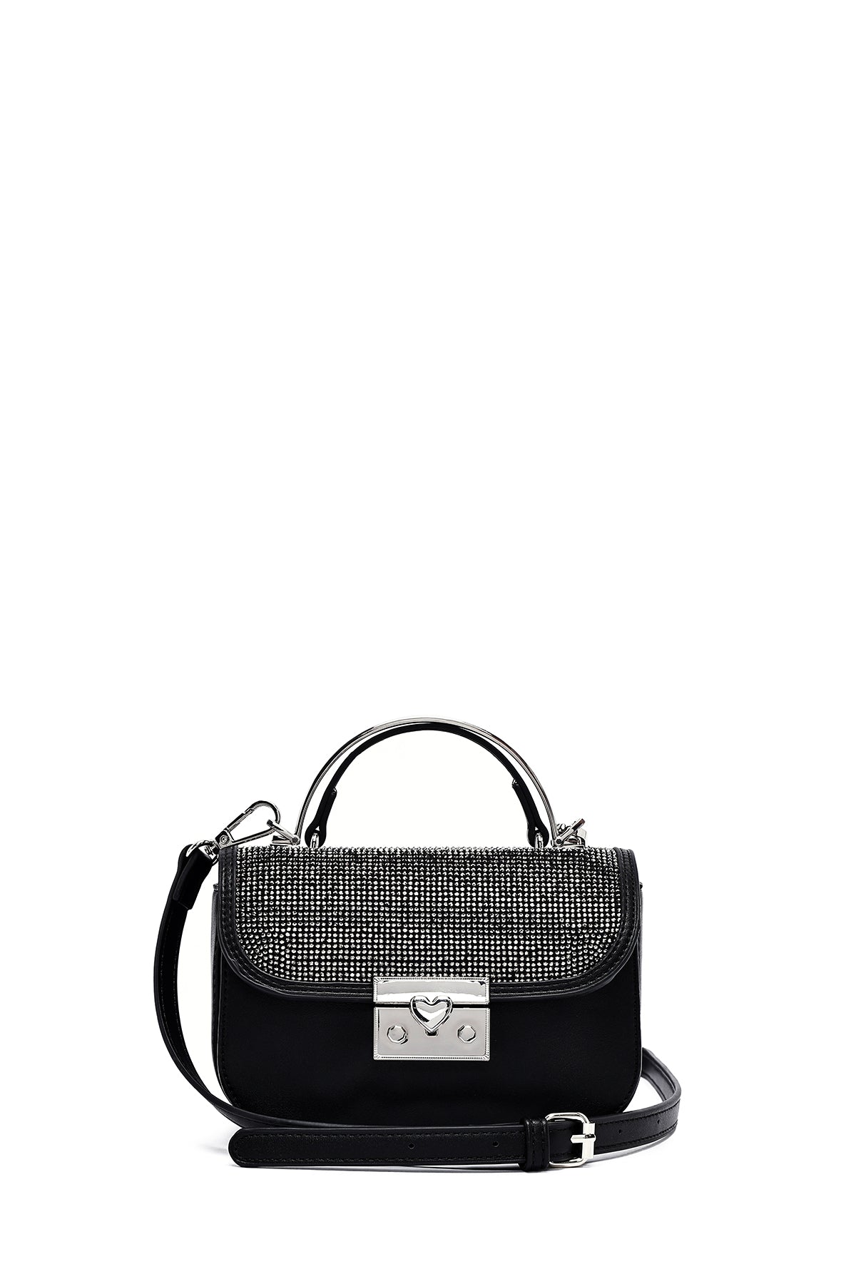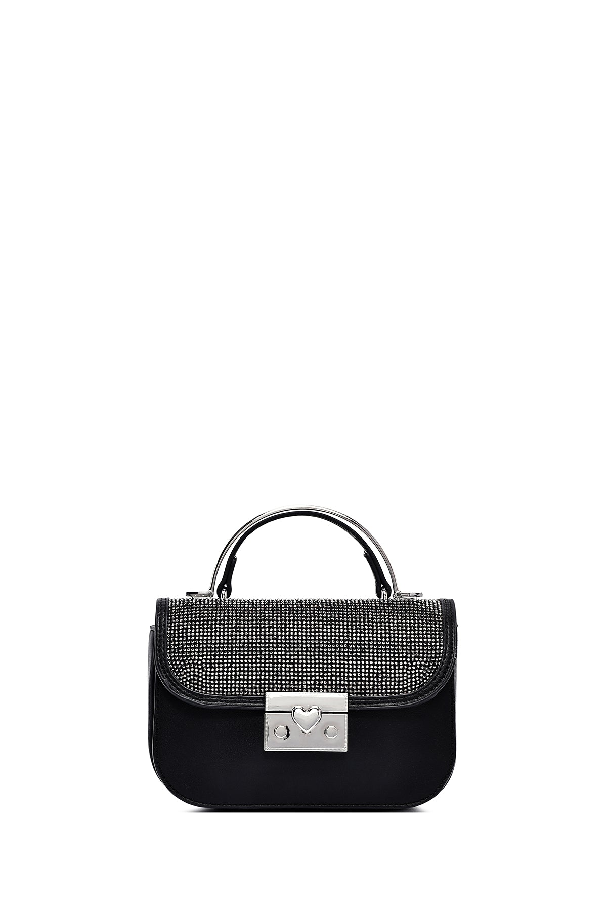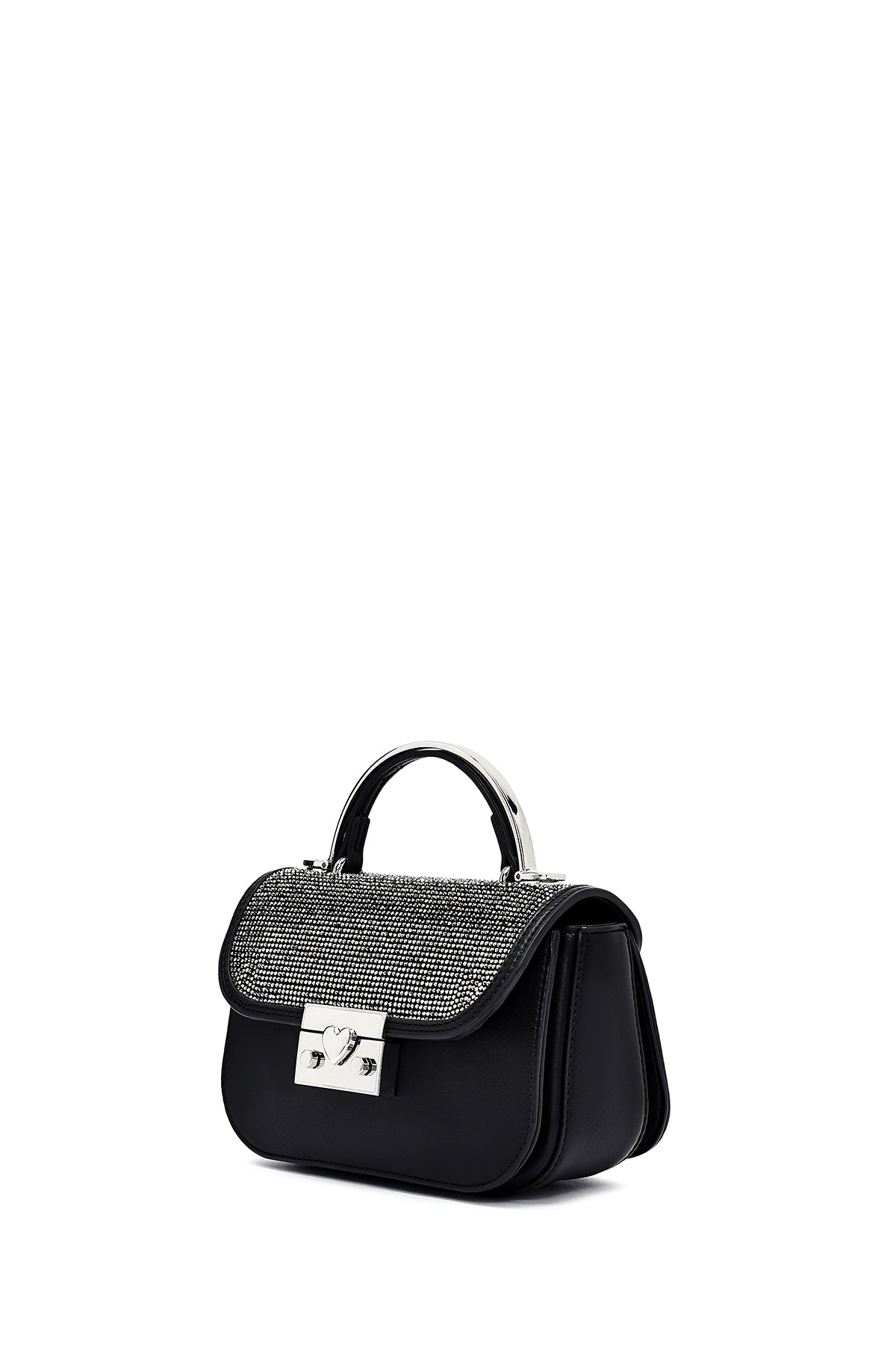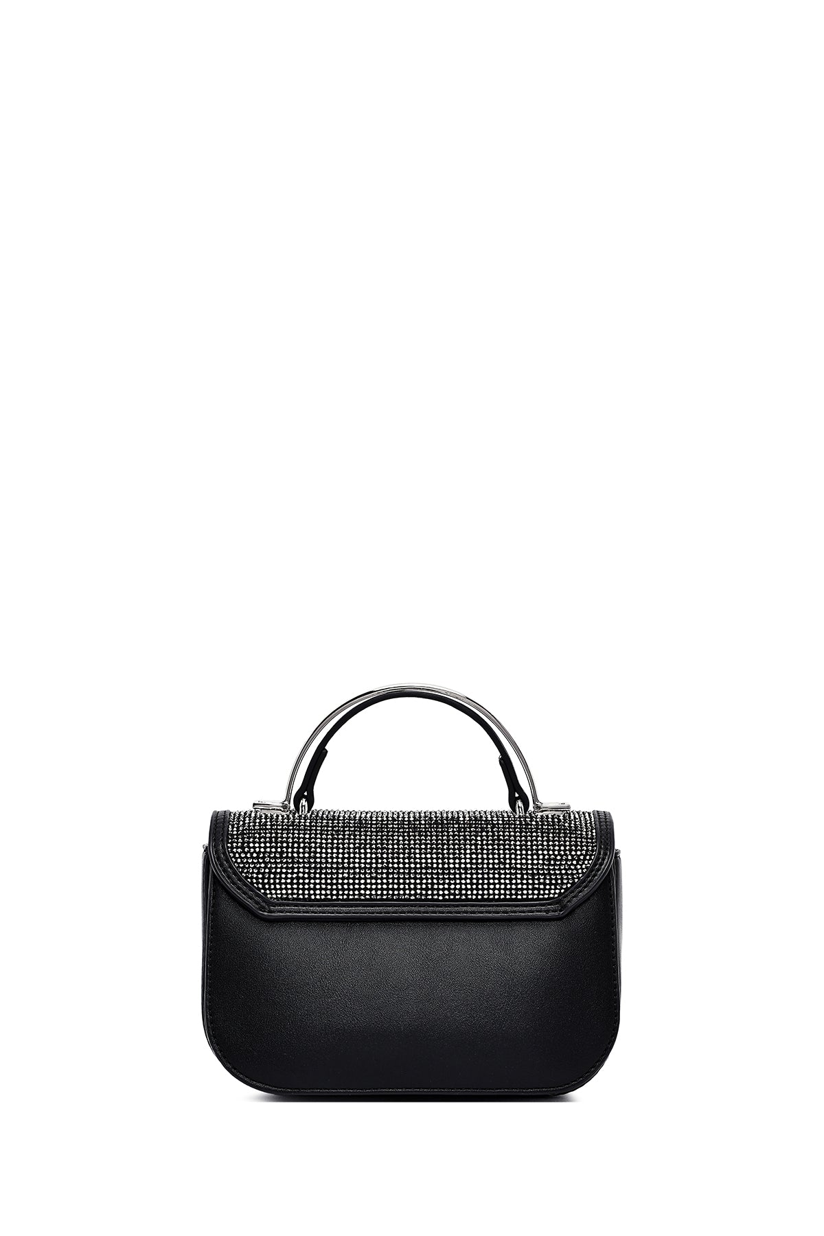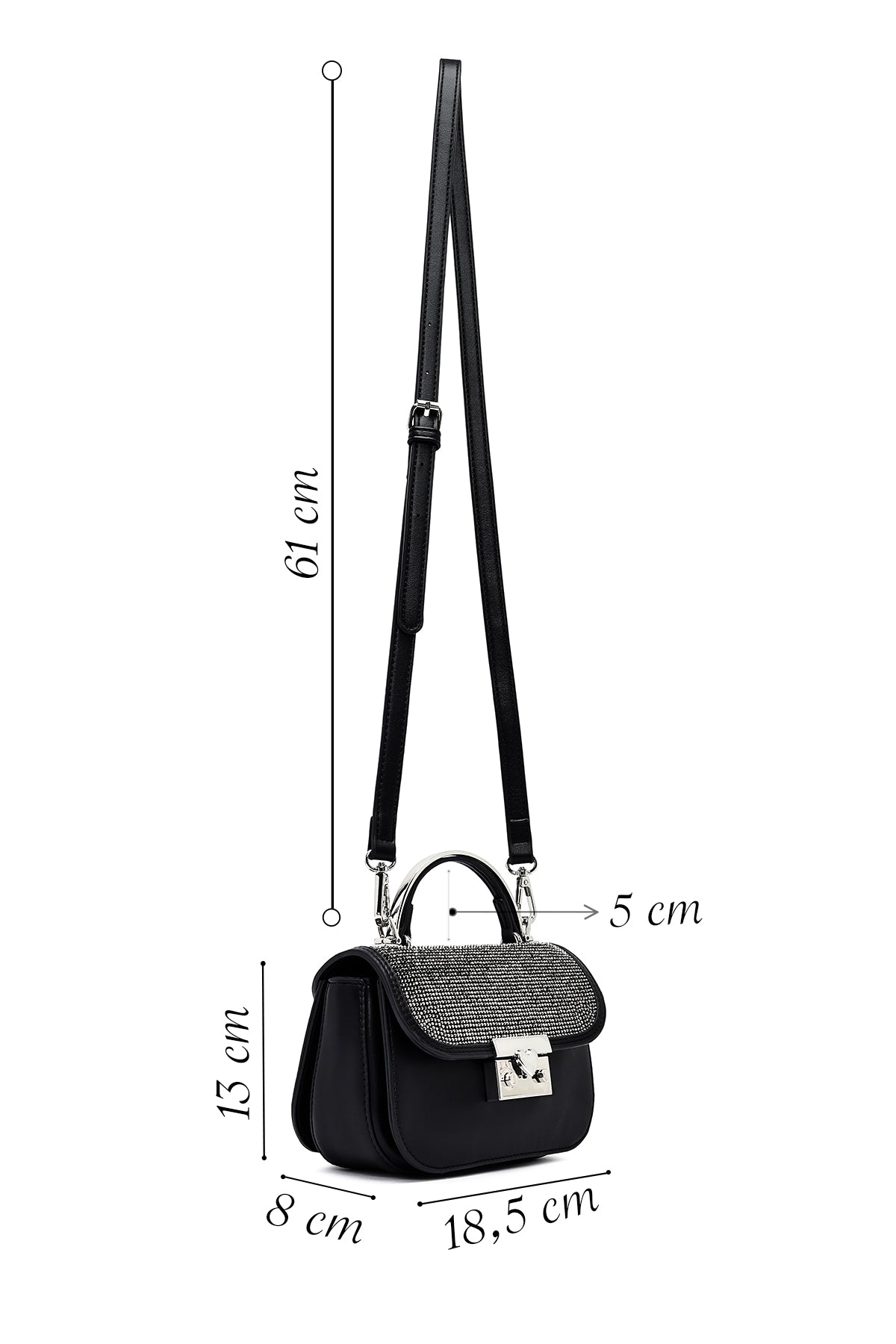 Kadın Siyah Uzun Askılı Taşlı Mini Kol Çantası
