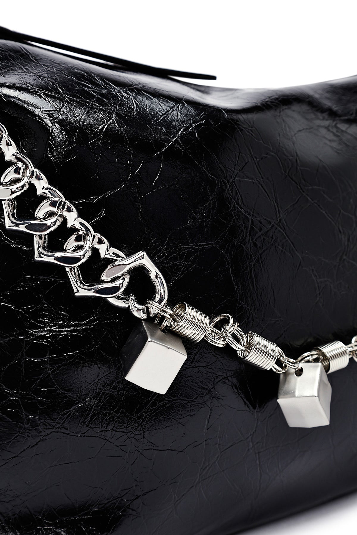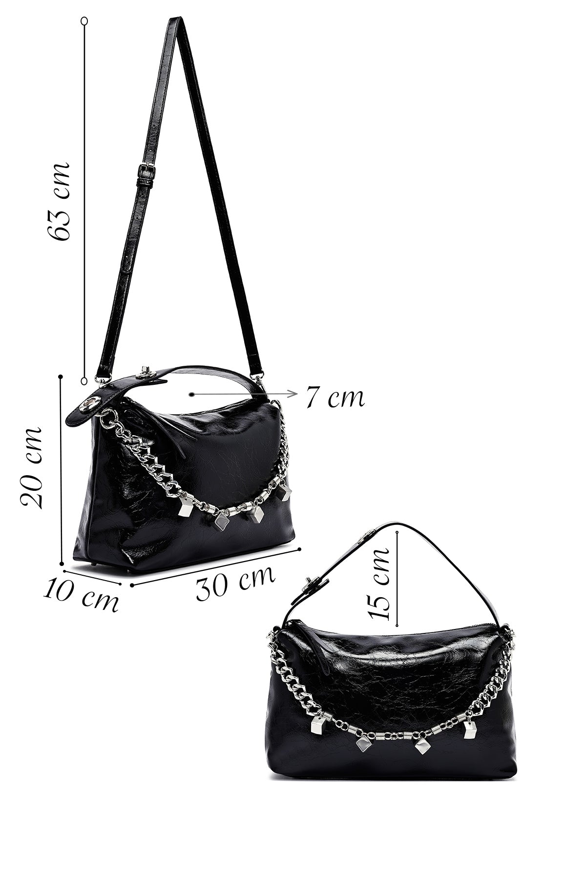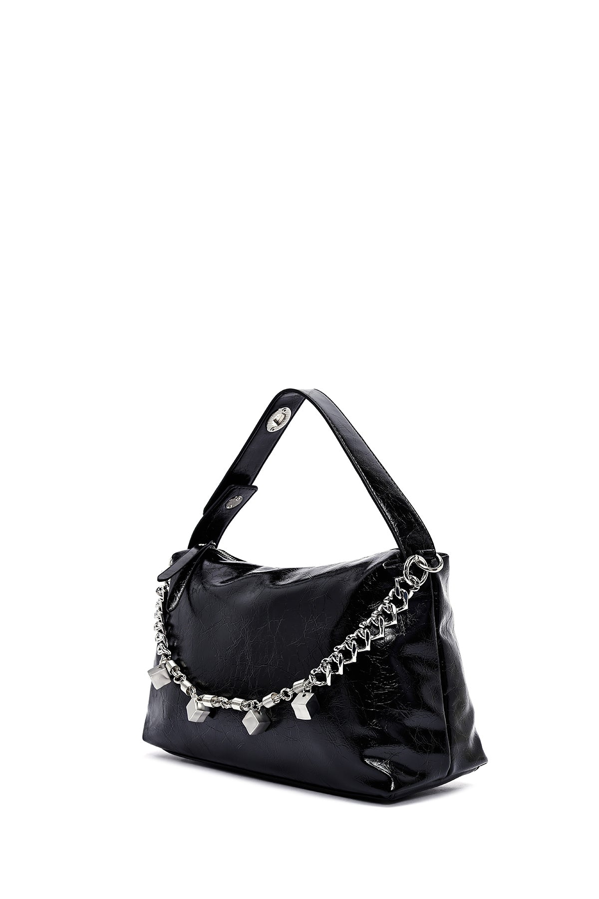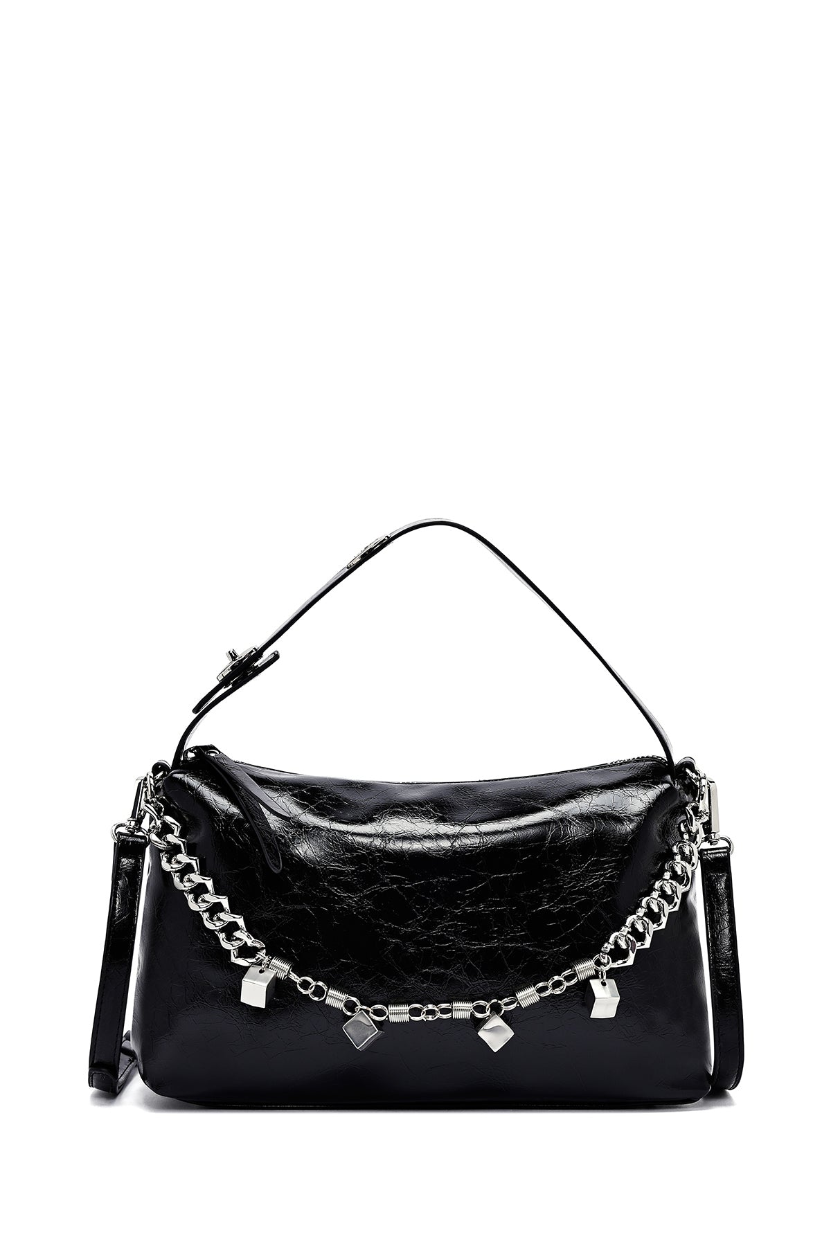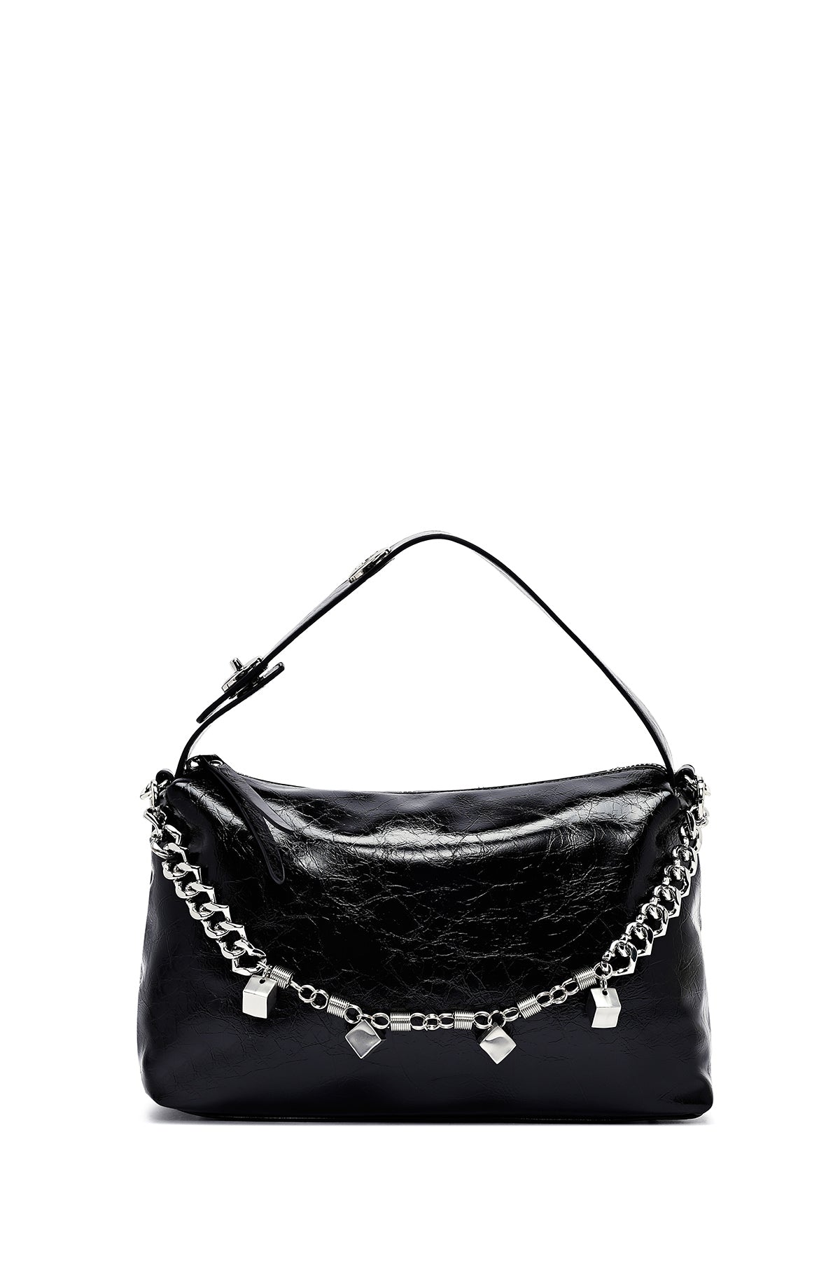 Kadın Siyah Uzun Askılı Zincir Detaylı Omuz Çantası