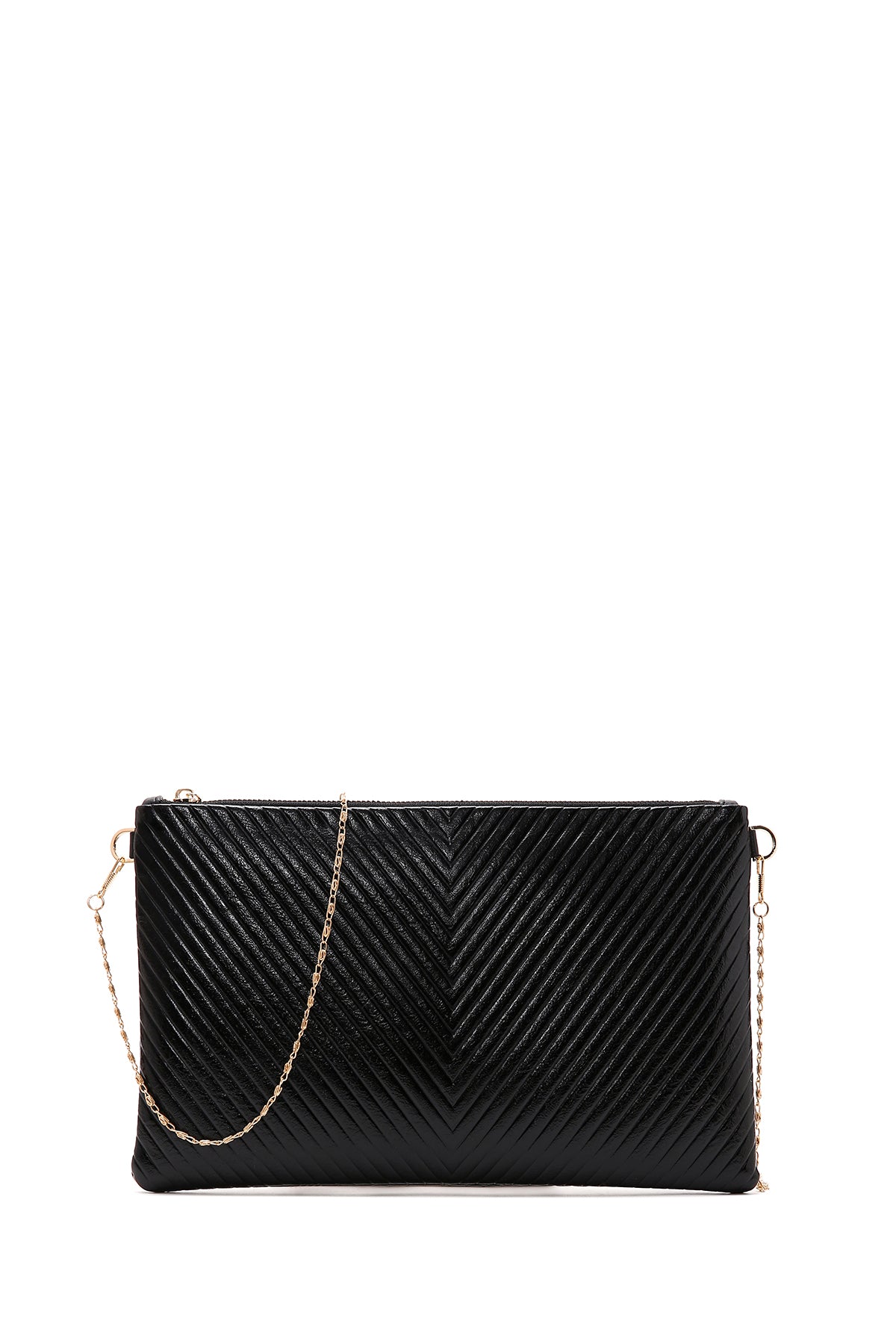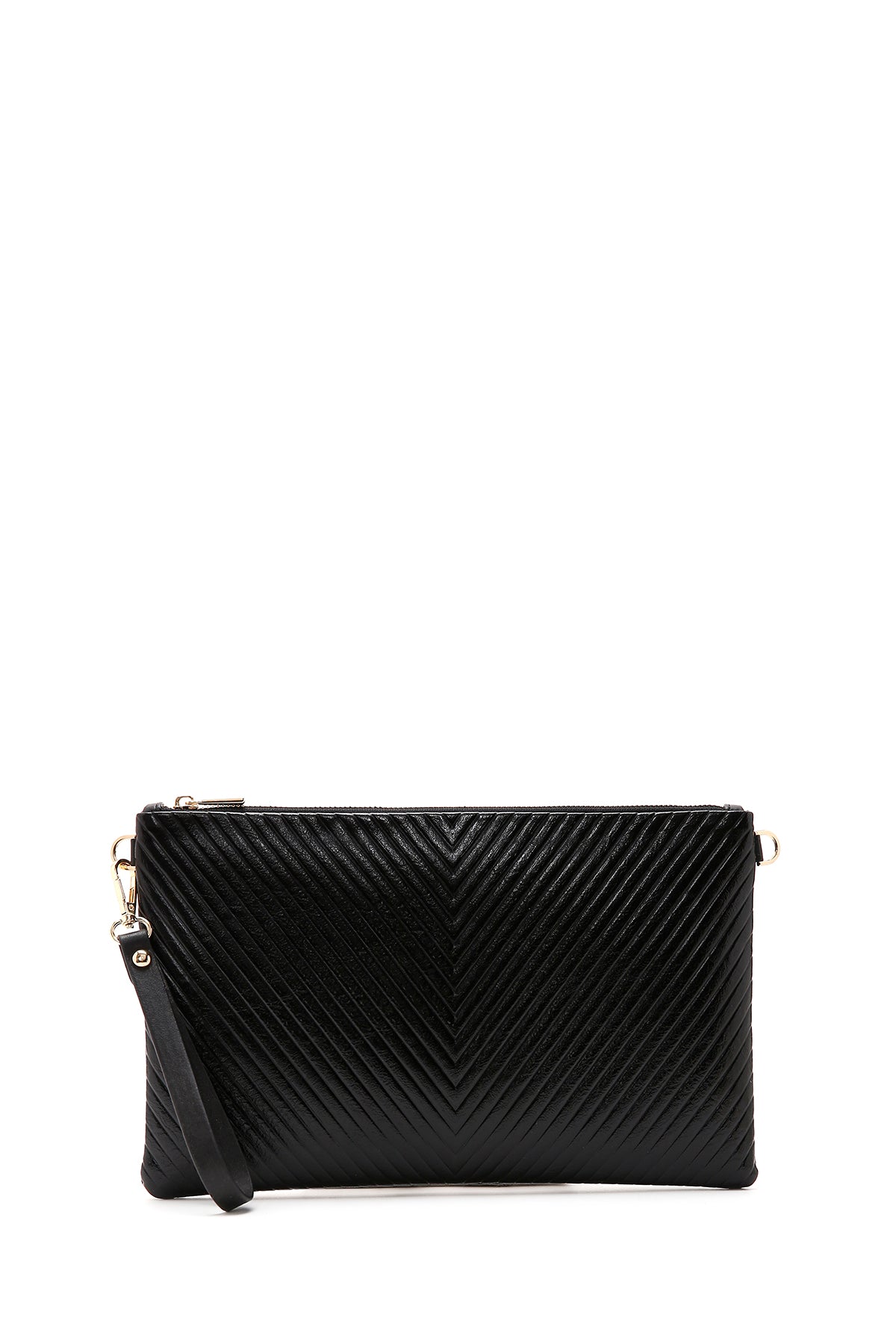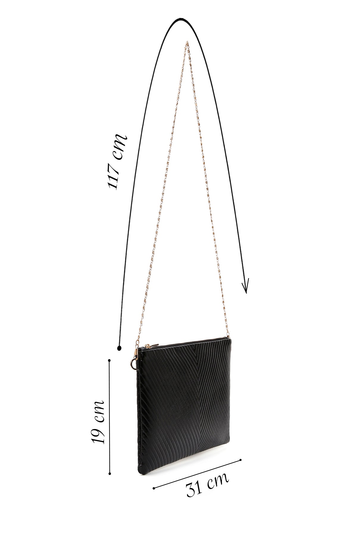 Kadın Siyah Uzun Zincir Askılı Baskılı Portföy Çanta