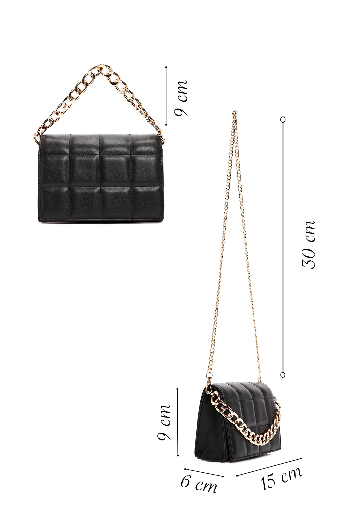 Kadın Siyah Uzun Zincir Askılı Kapitone Çapraz Çanta