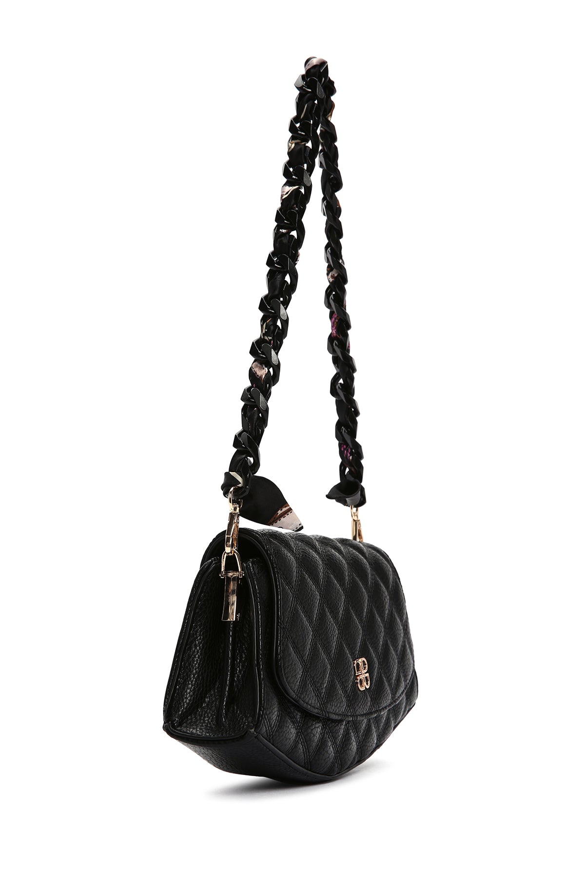 Kadın Siyah Uzun Zincir Askılı Kapitone Mini Omuz Çantası