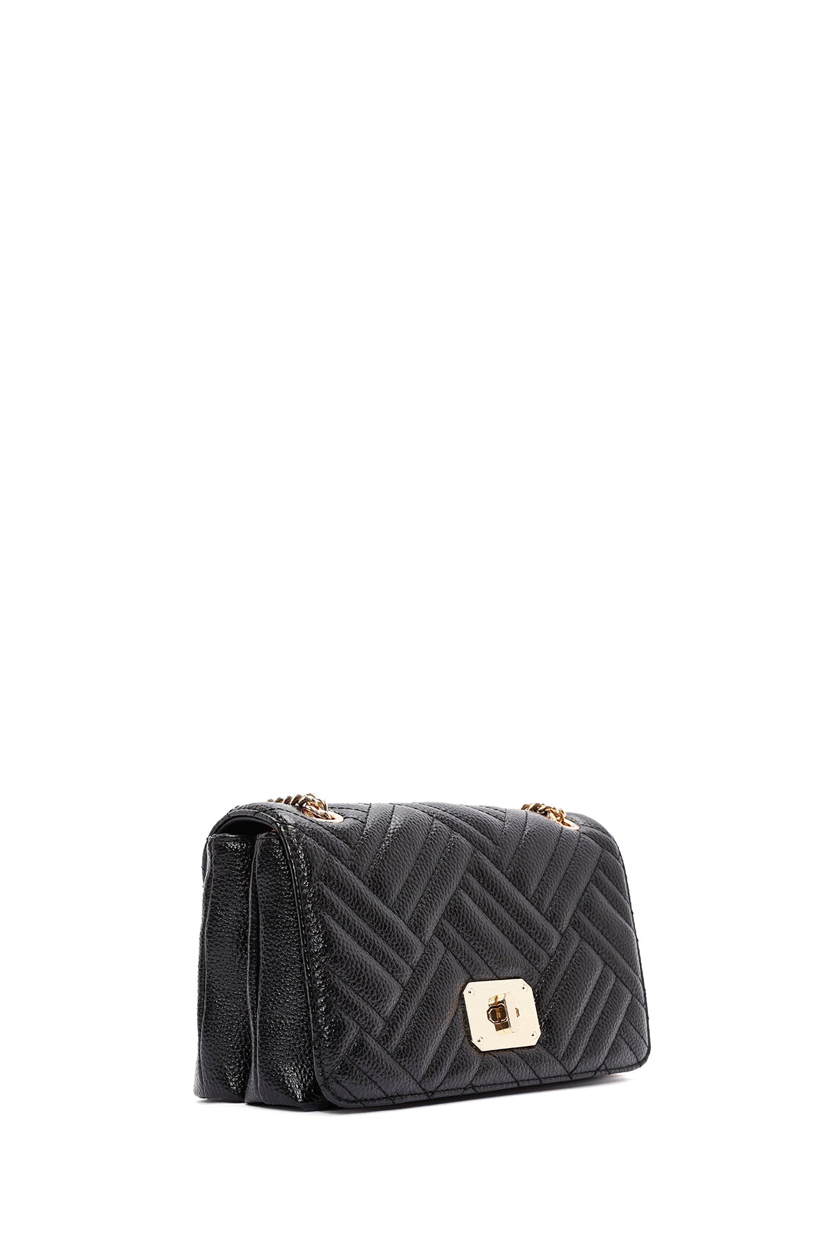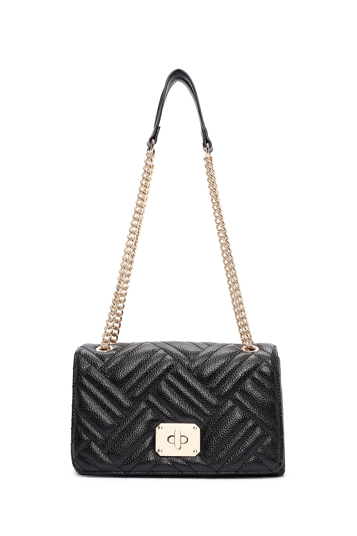 Kadın Siyah Uzun Zincir Askılı Kapitone Omuz Çantası