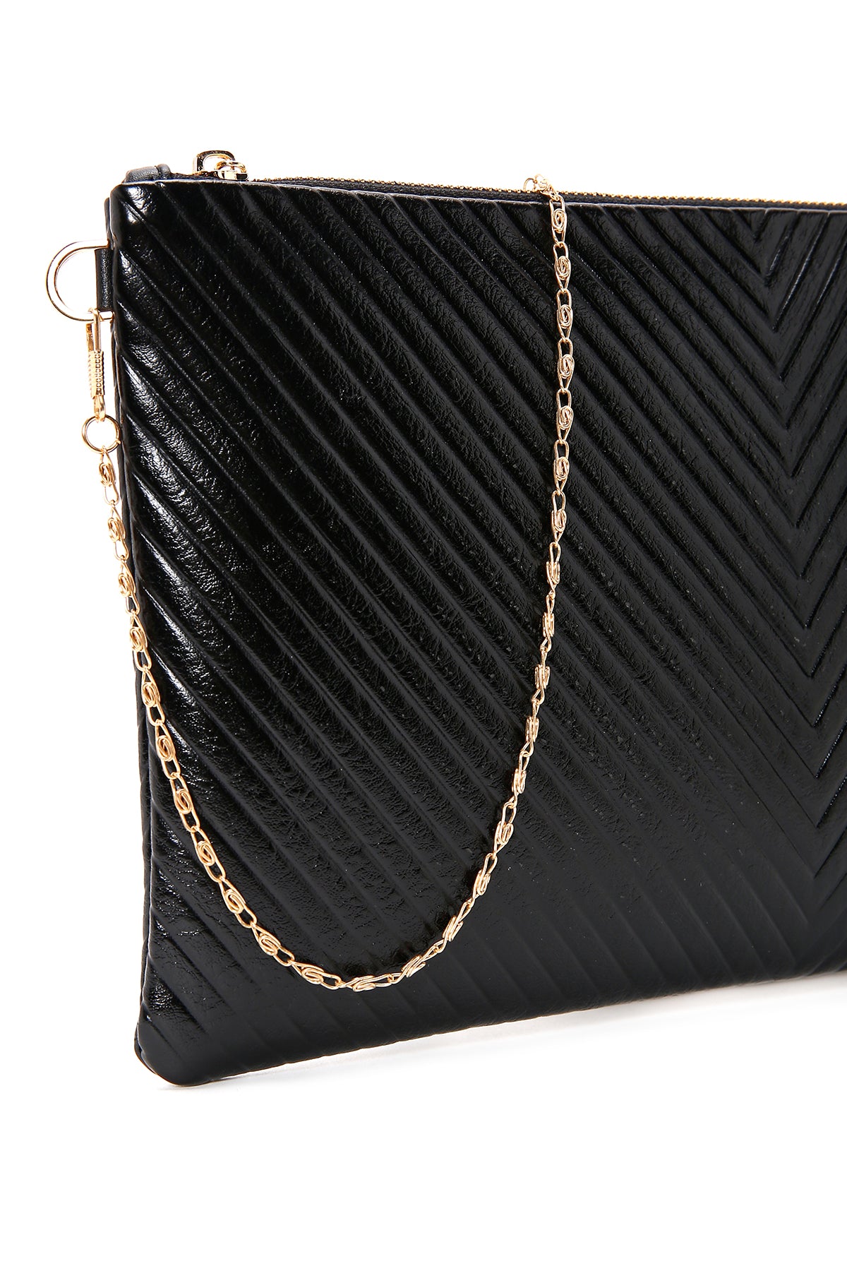 Kadın Siyah Uzun Zincir Askılı Metalik Portföy Çanta