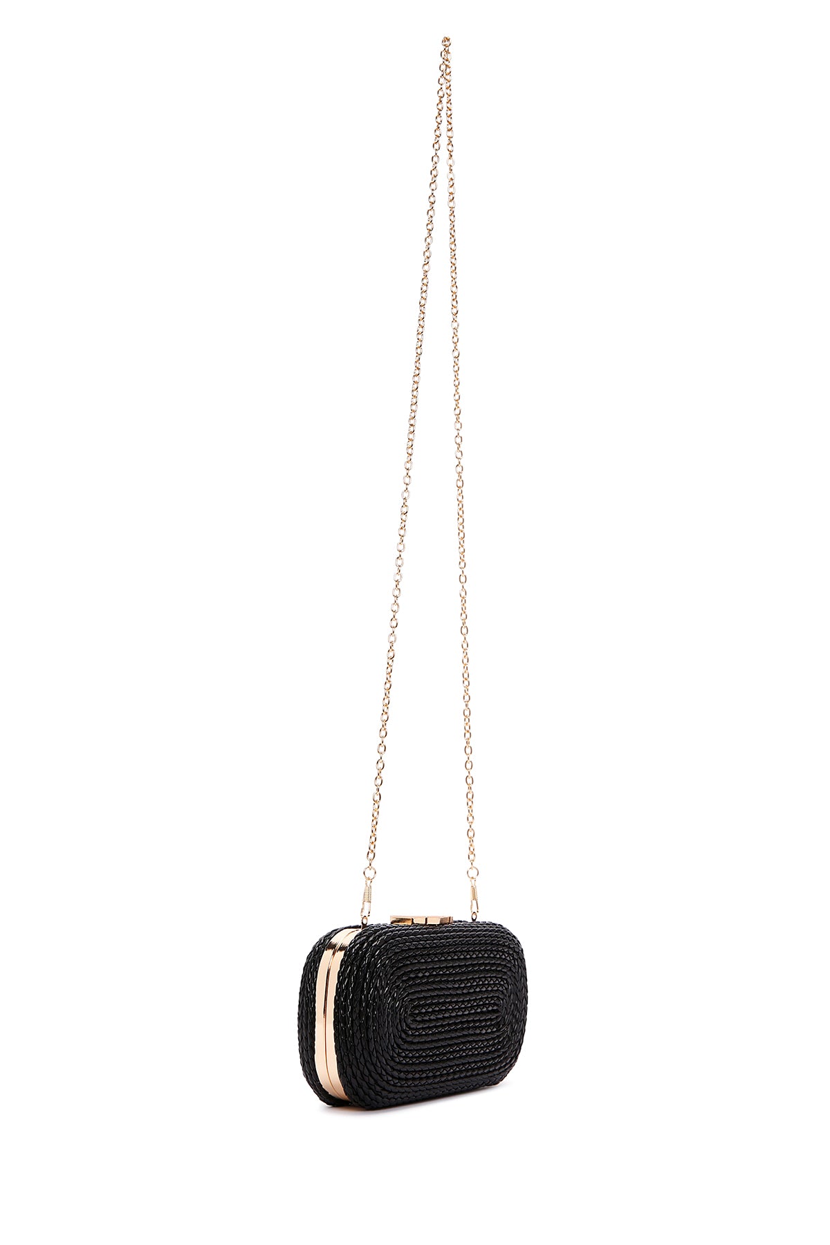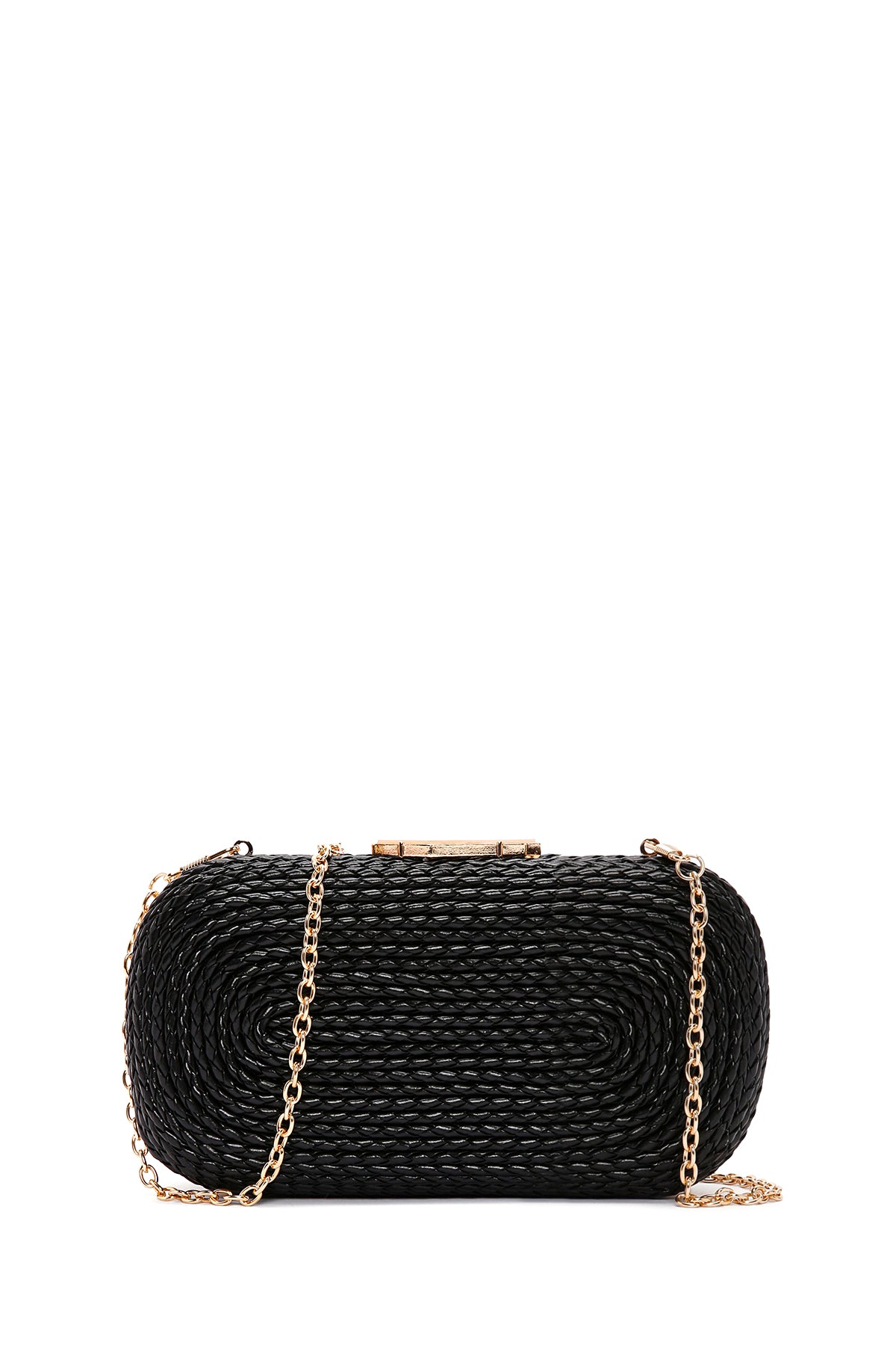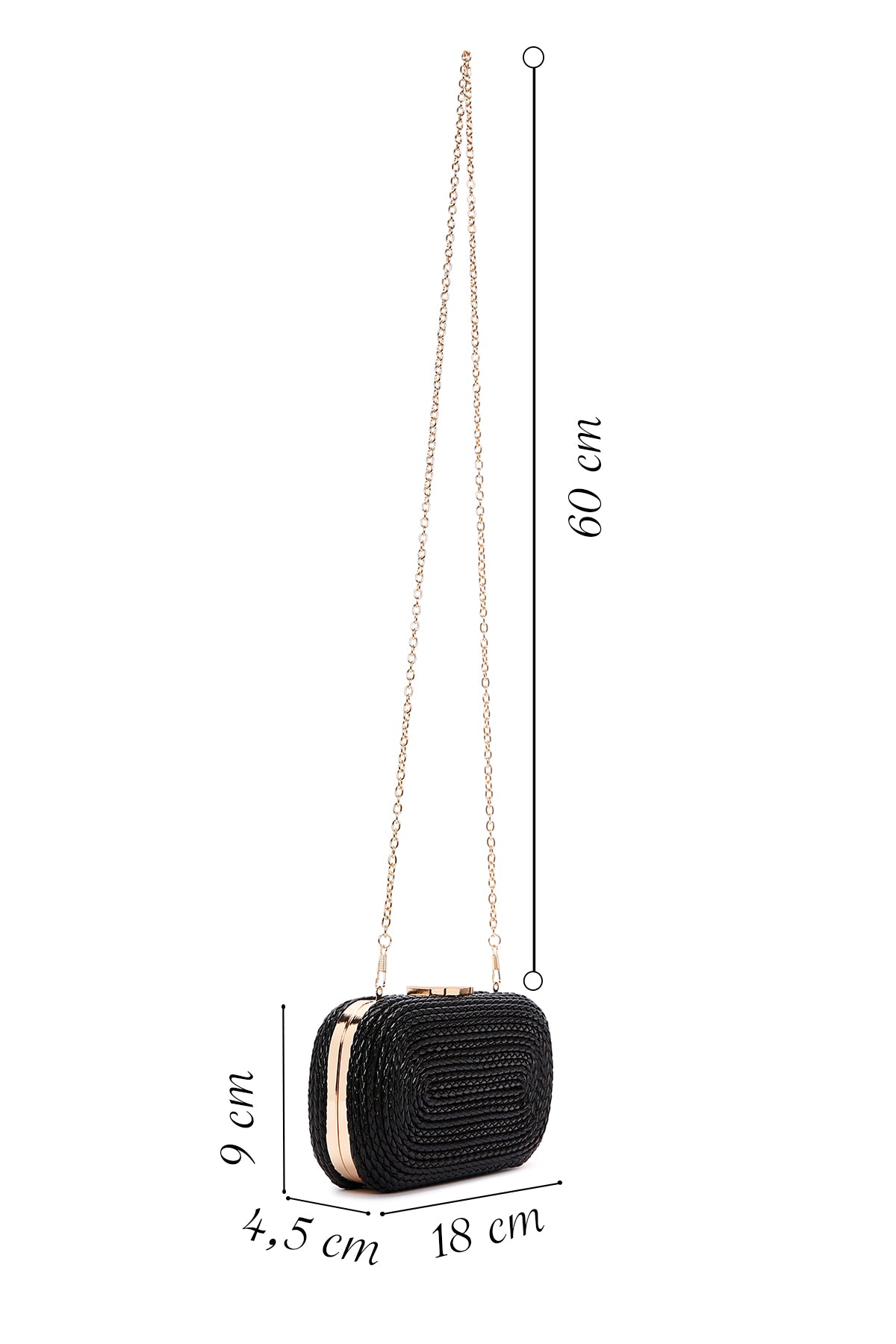 Kadın Siyah Uzun Zincir Askılı Örgü Abiye Çanta