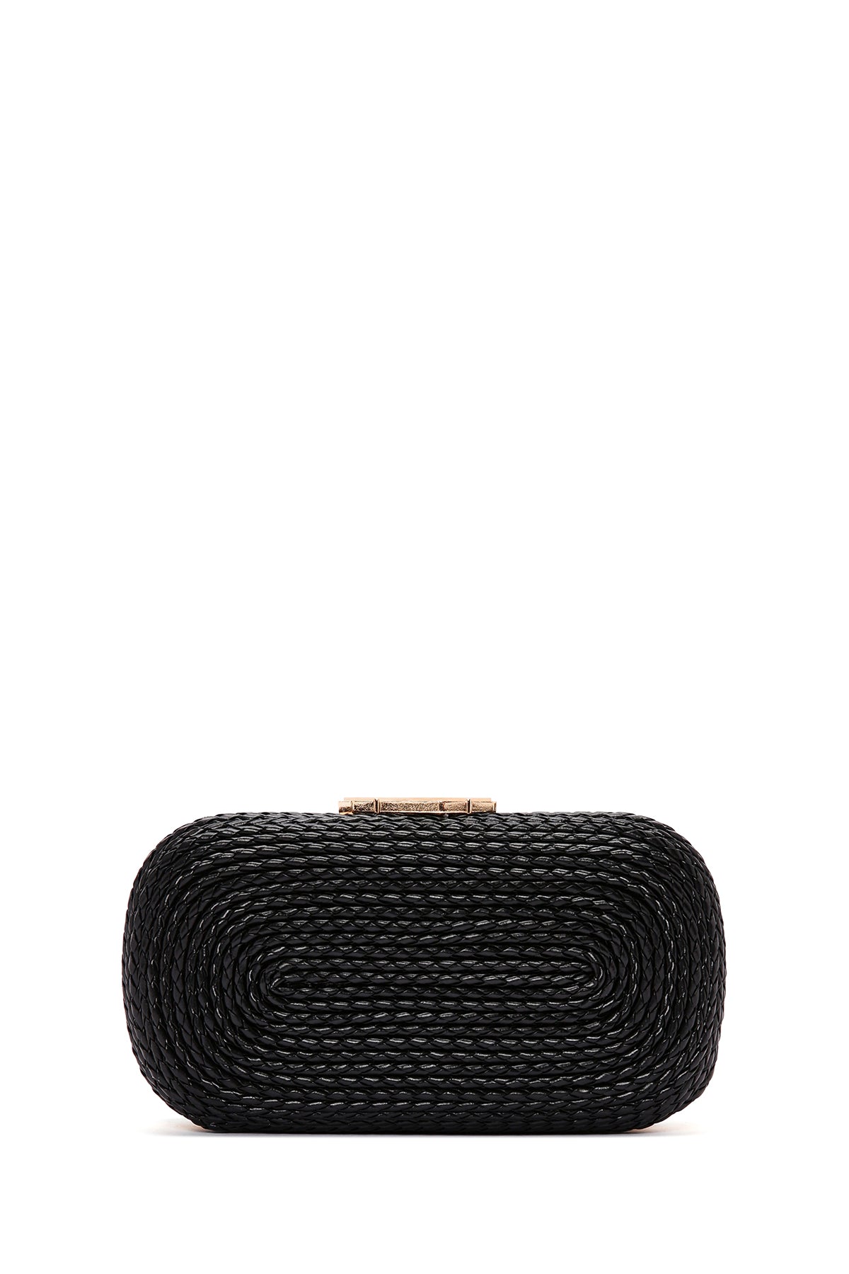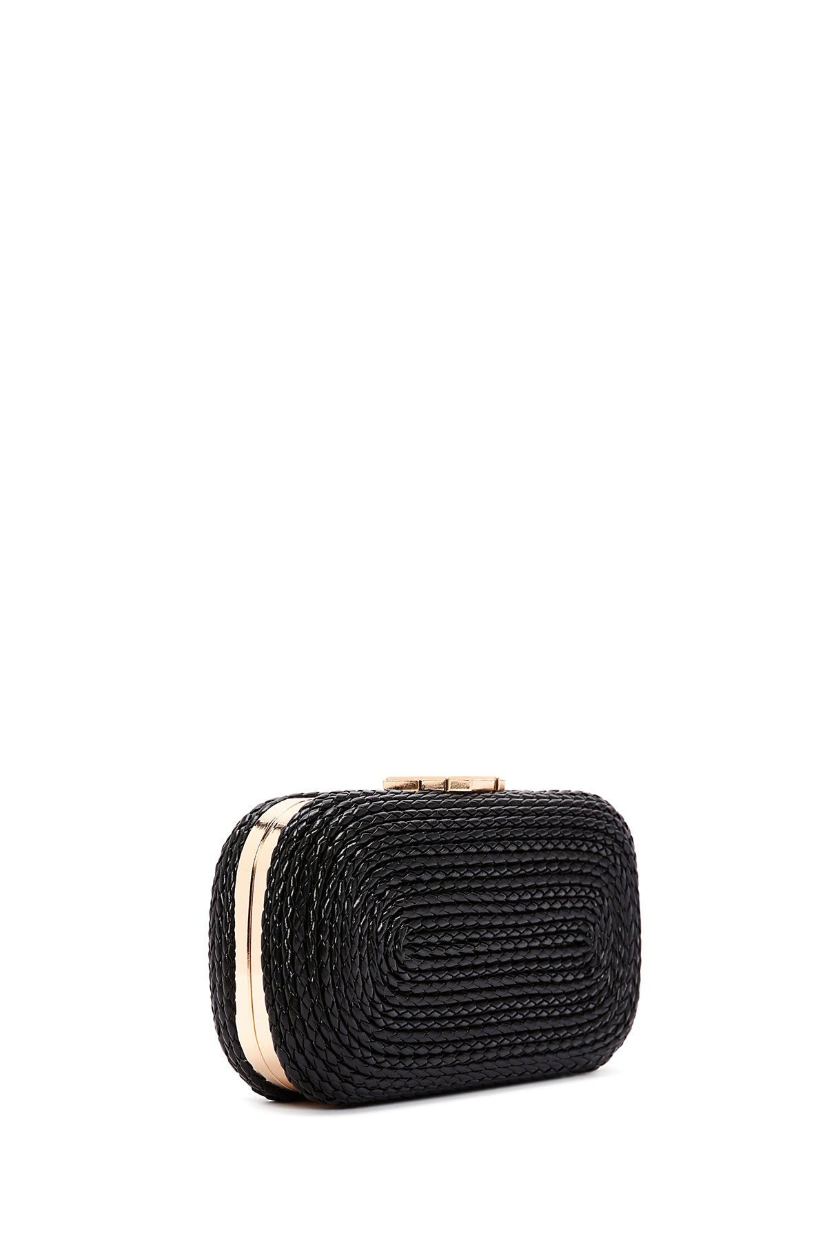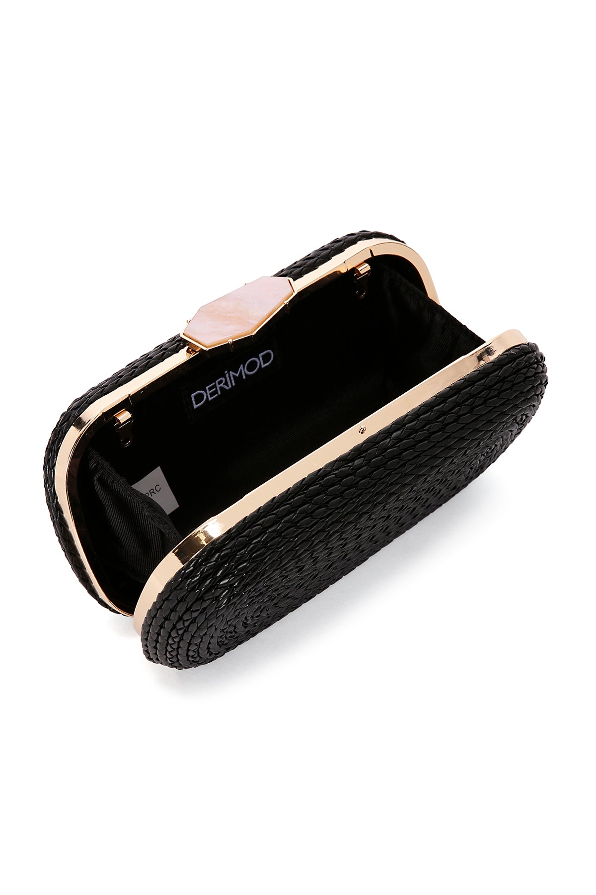 Kadın Siyah Uzun Zincir Askılı Örgü Abiye Çanta