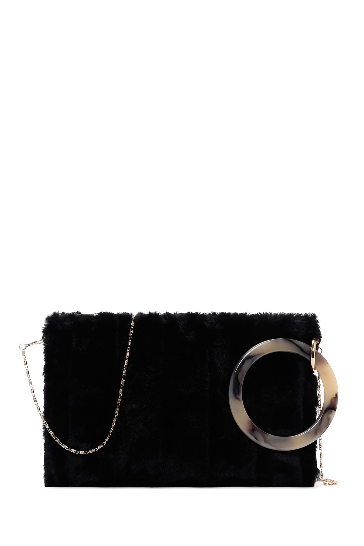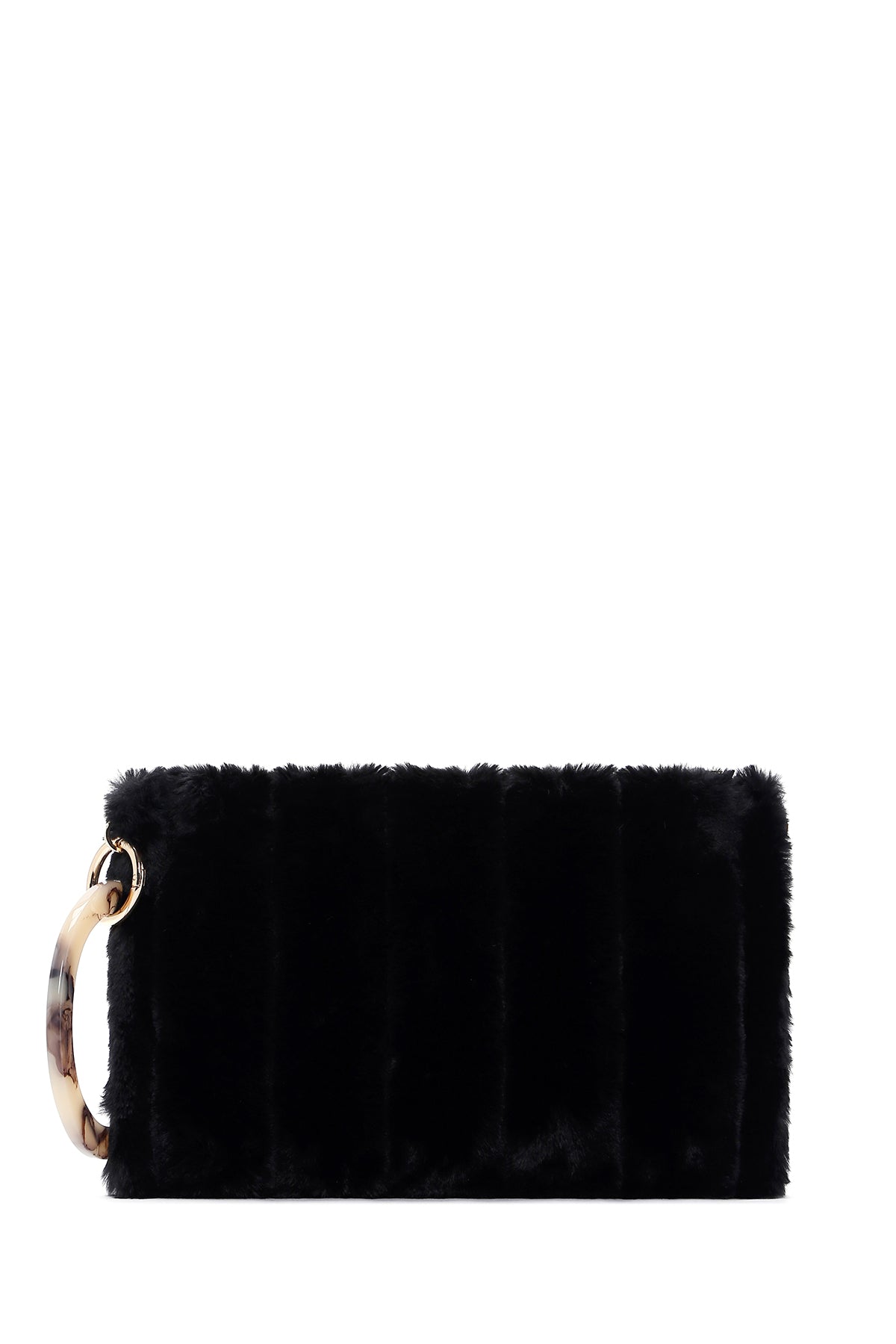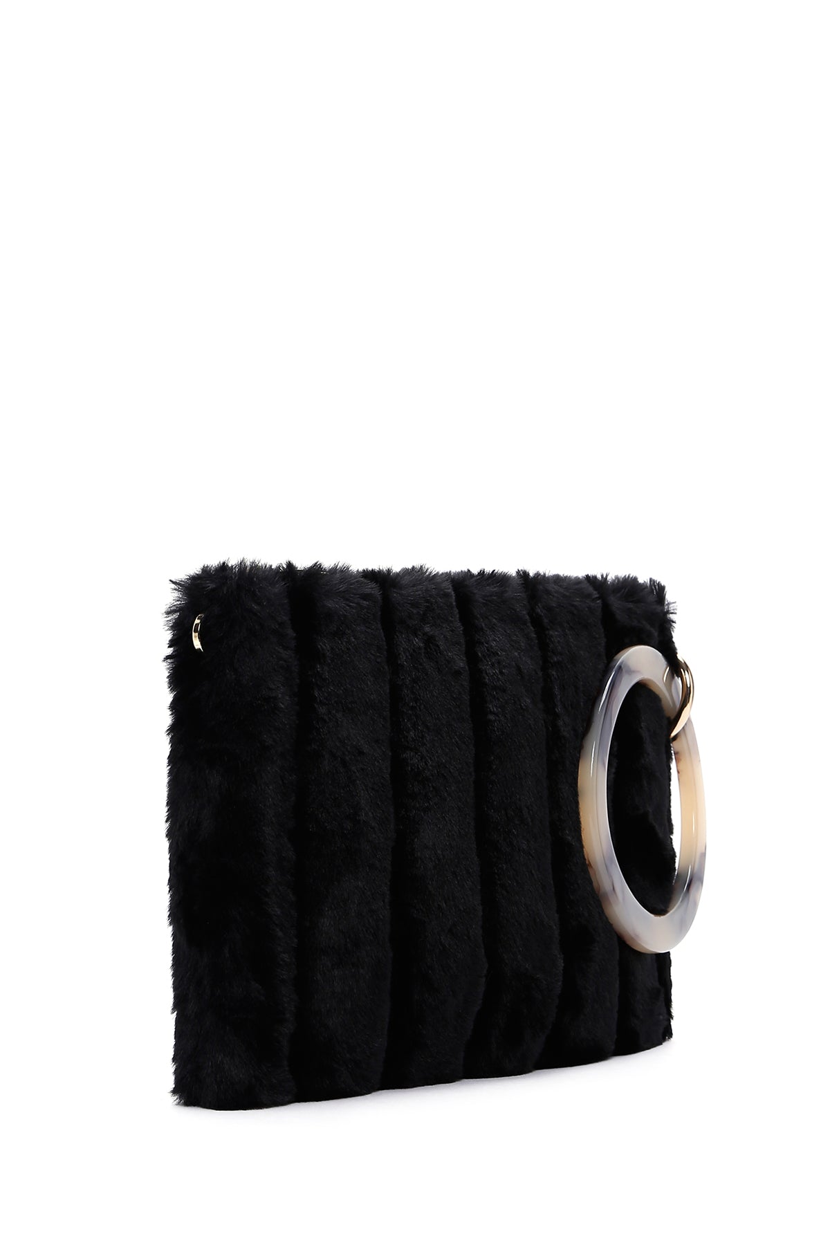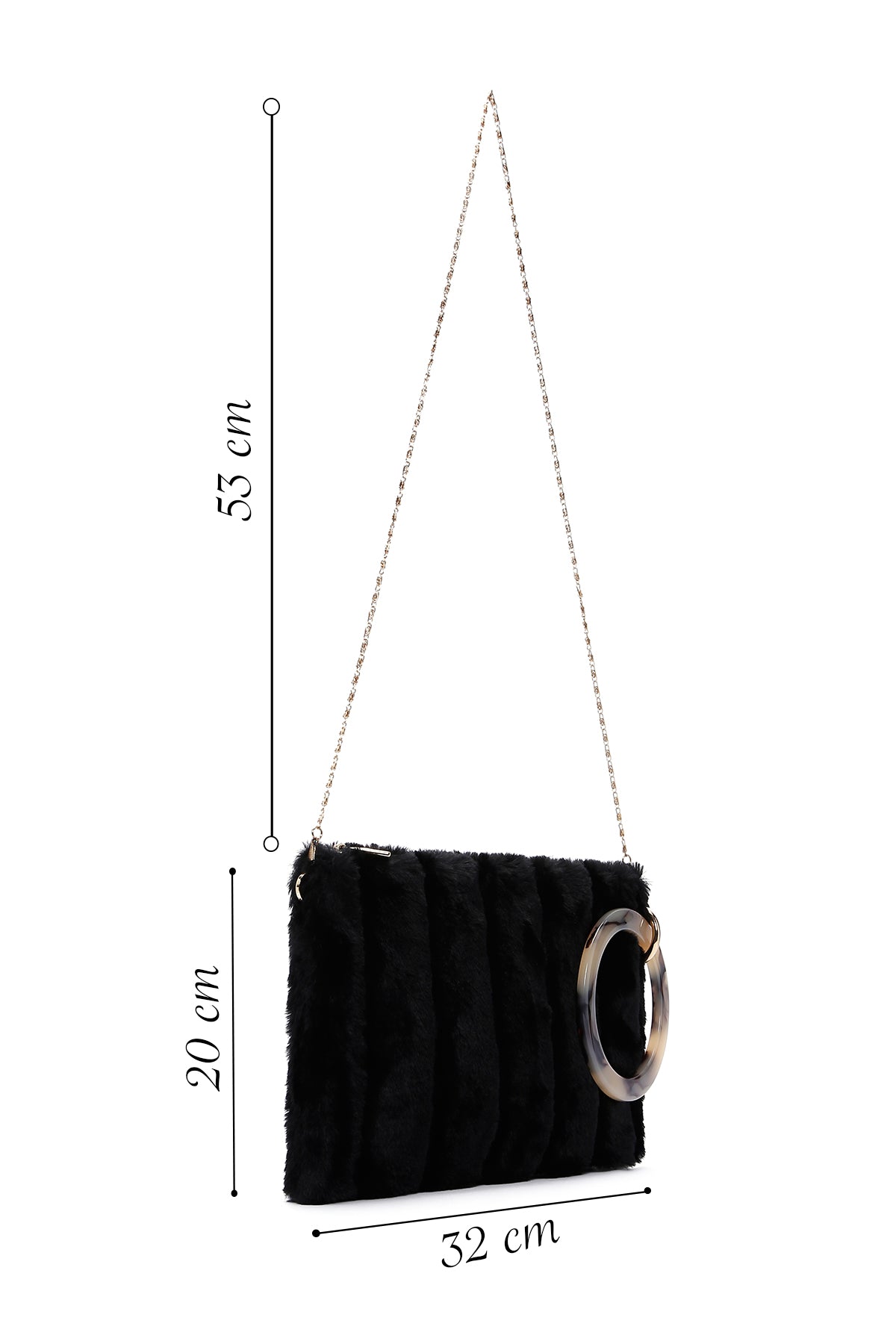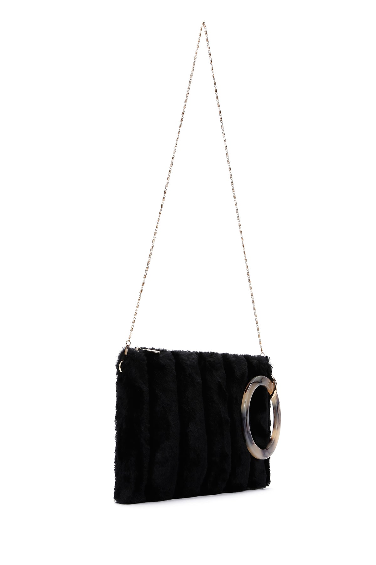 Kadın Siyah Uzun Zincir Askılı Peluş Portföy Çanta