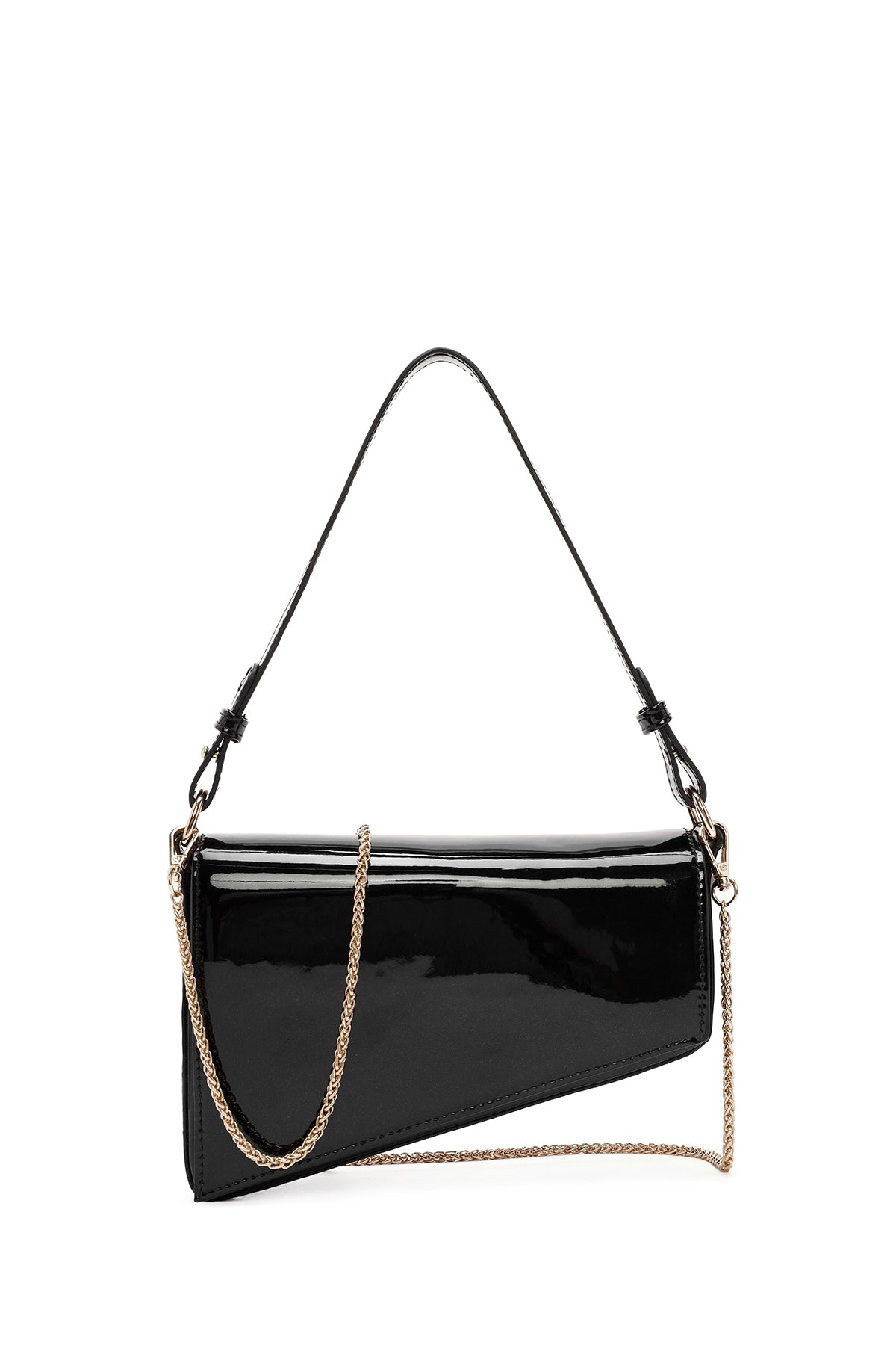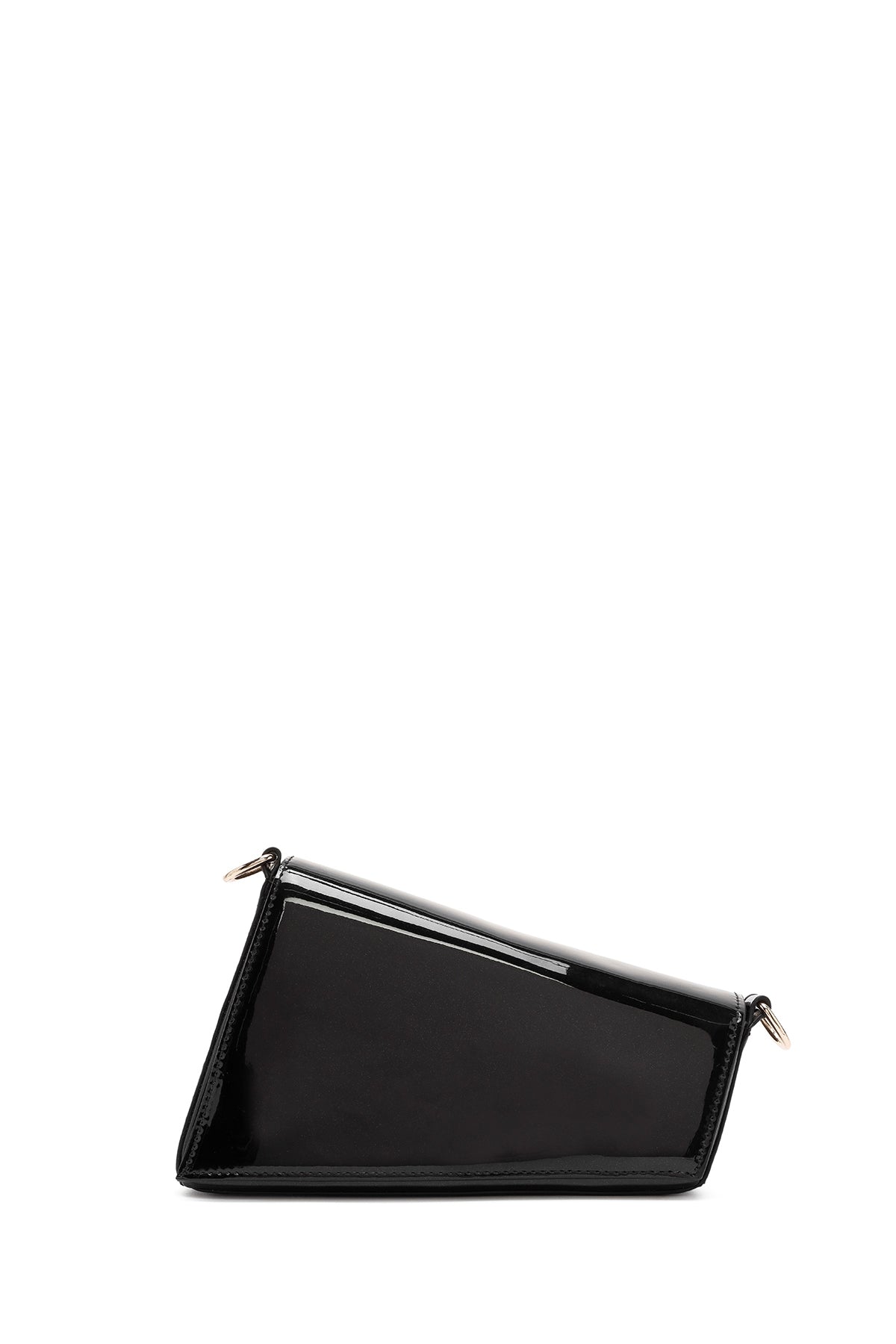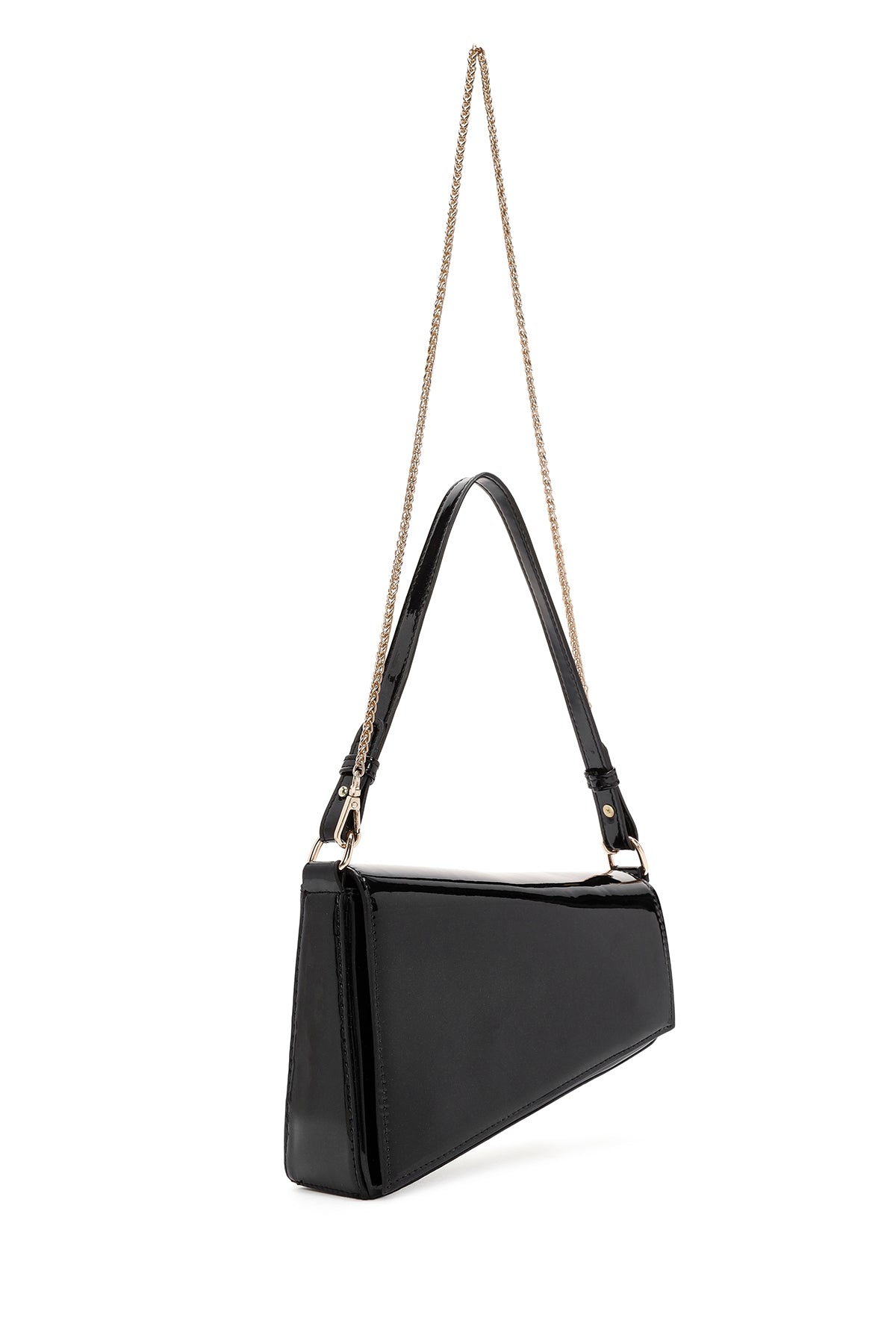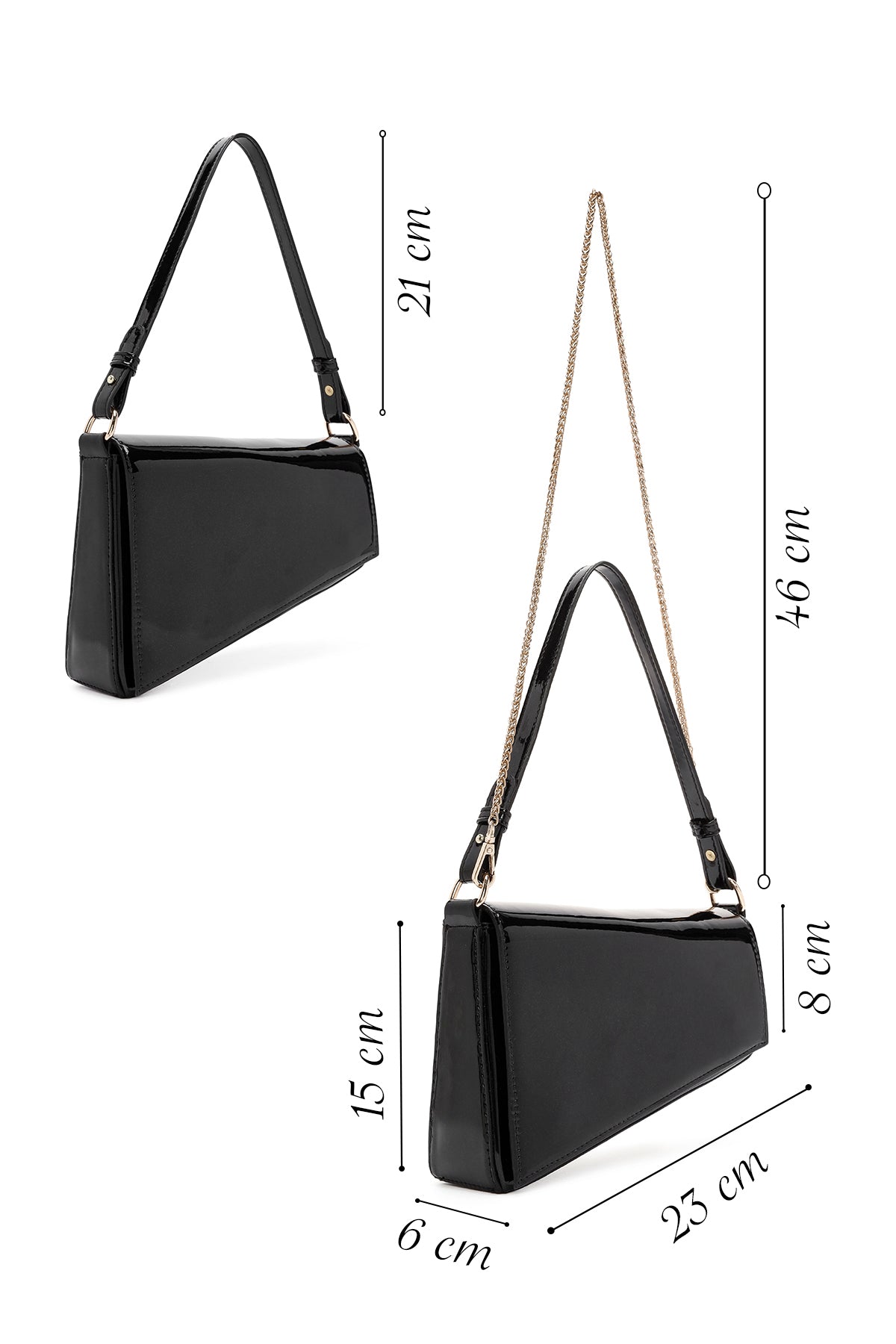 Kadın Siyah Uzun Zincir Askılı Rugan Mini Omuz Çantası