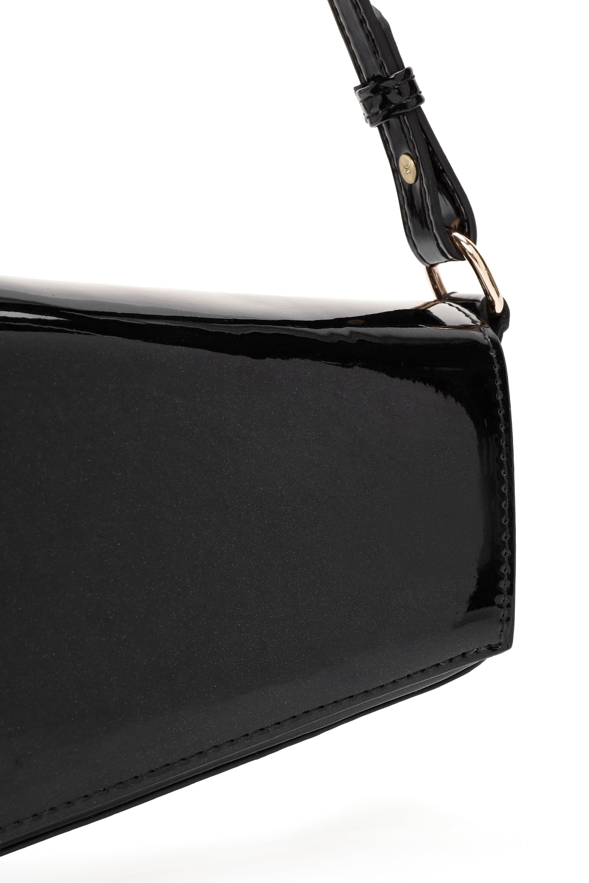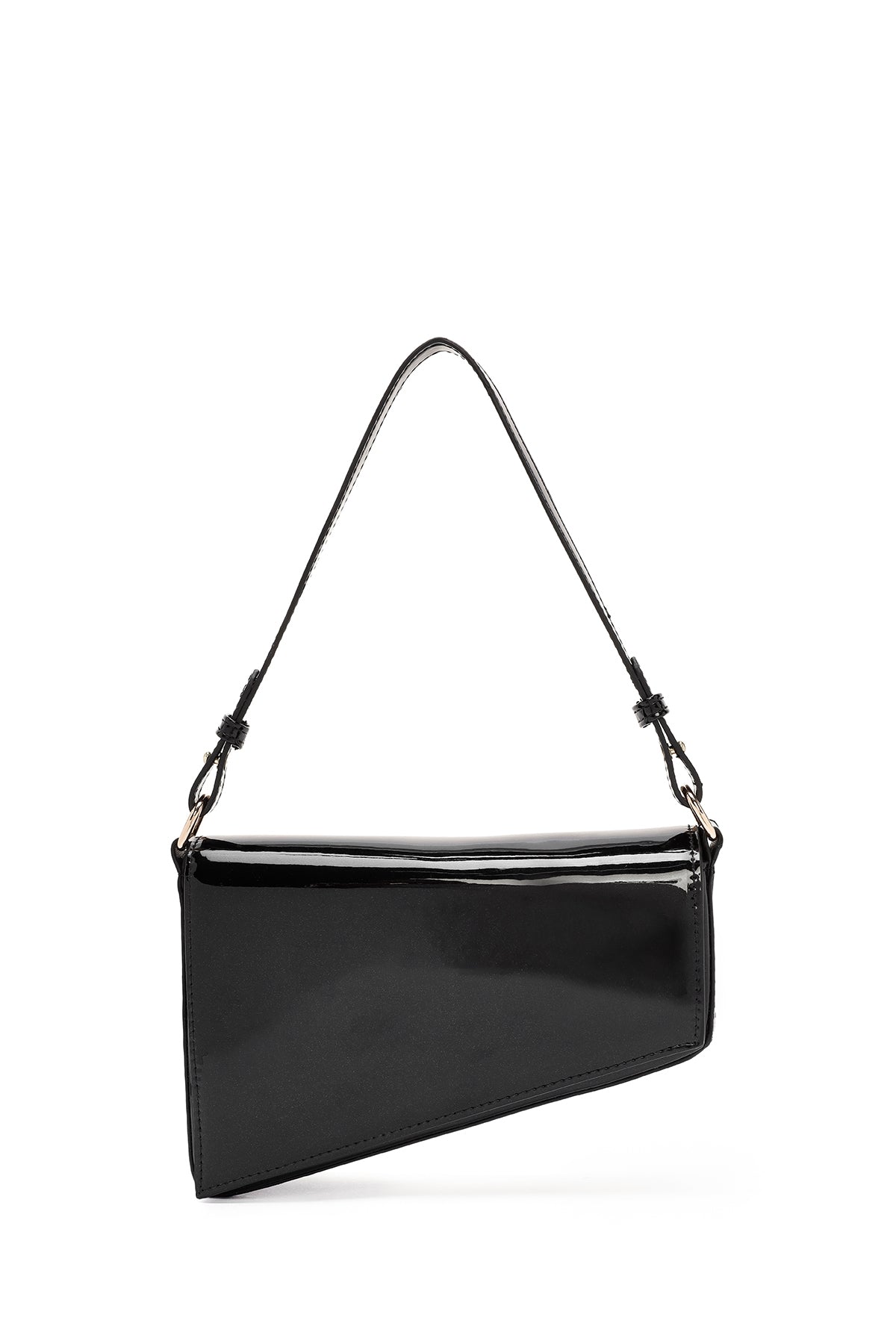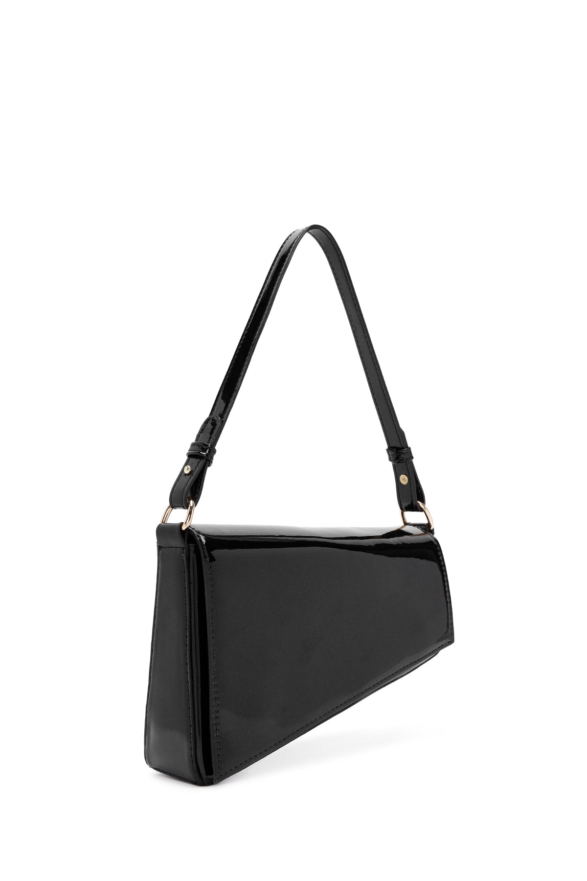 Kadın Siyah Uzun Zincir Askılı Rugan Mini Omuz Çantası