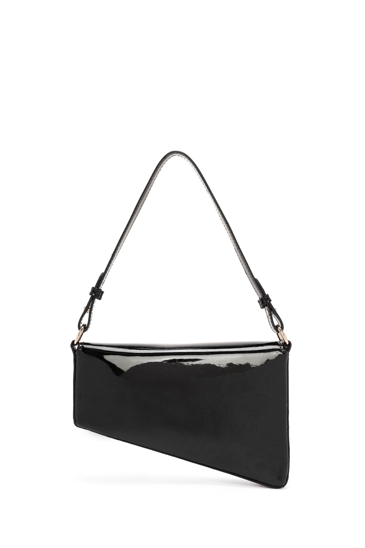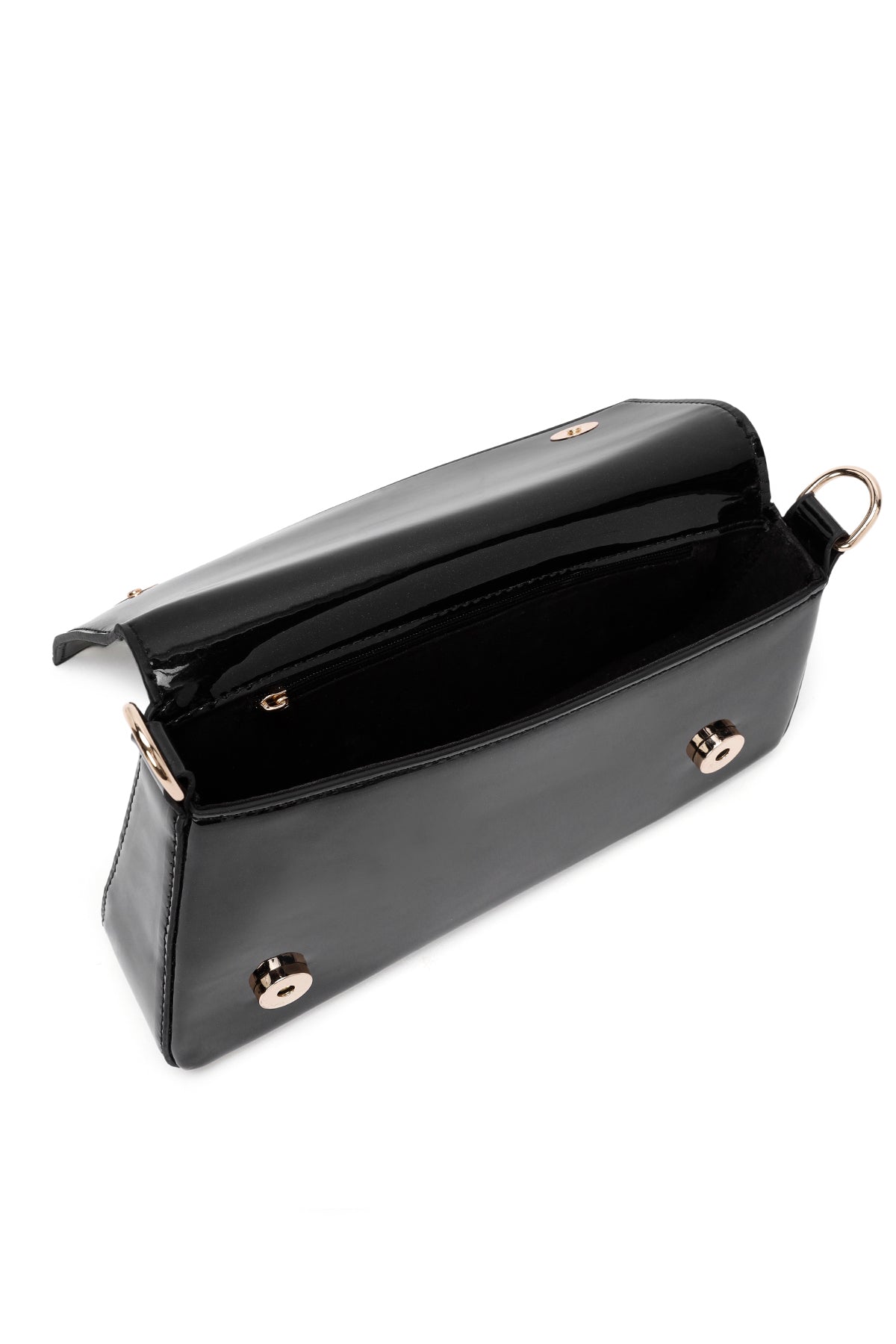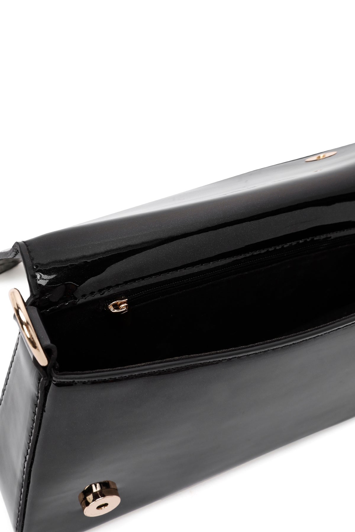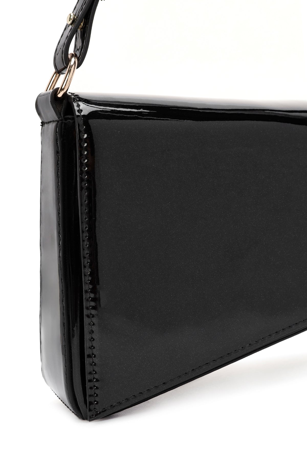 Kadın Siyah Uzun Zincir Askılı Rugan Mini Omuz Çantası