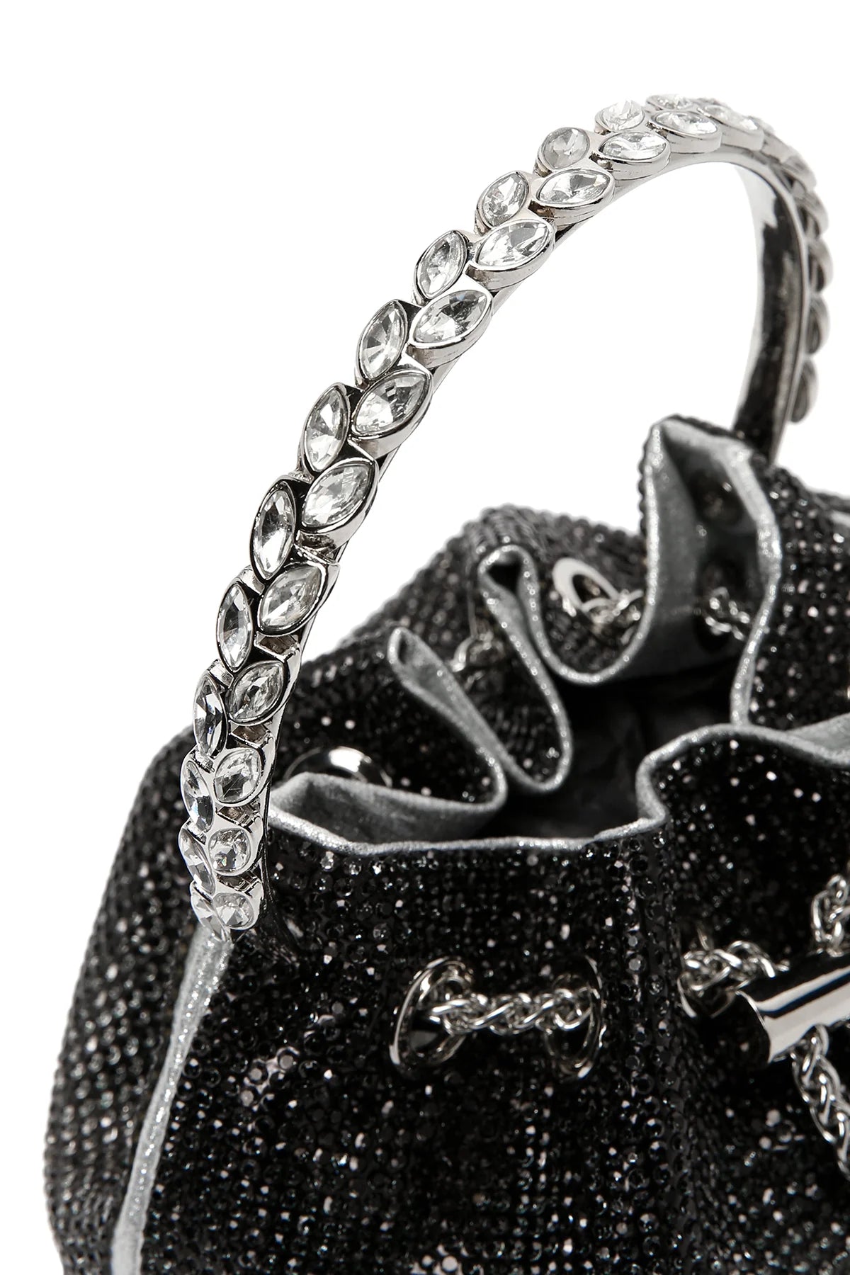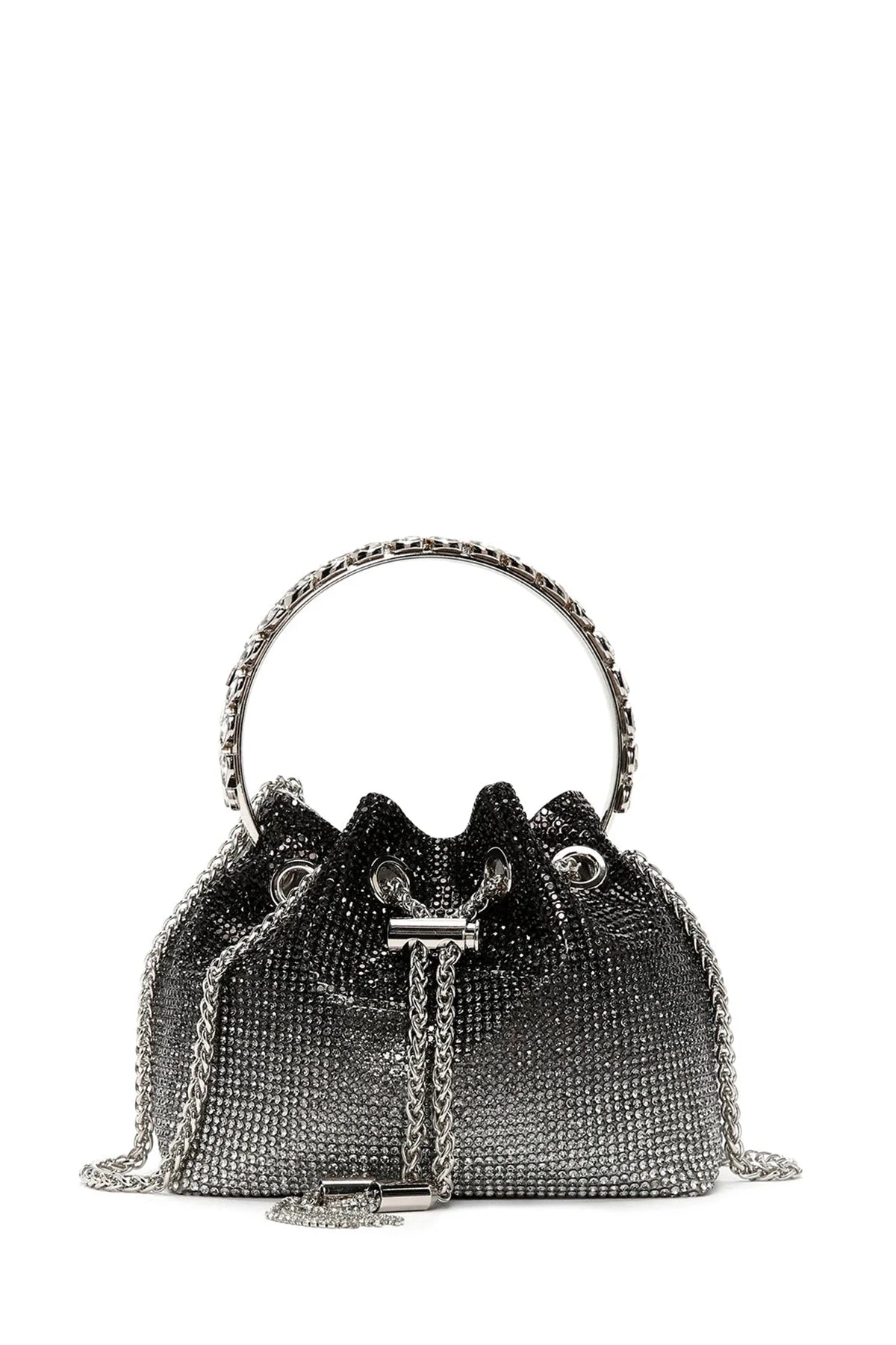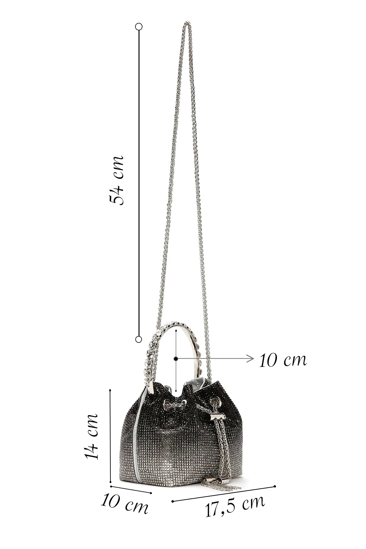 Kadın Siyah Uzun Zincir Askılı Taşlı Çapraz Çanta
