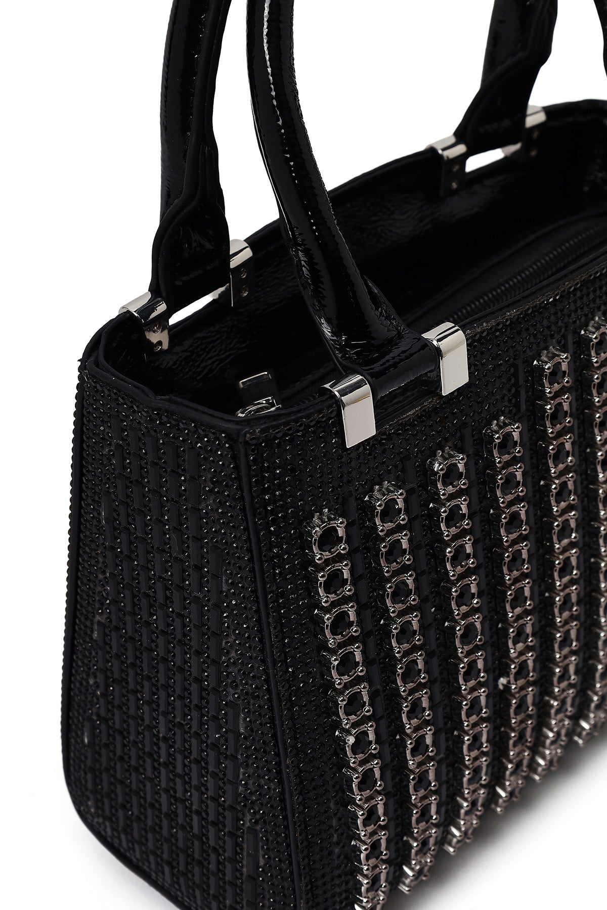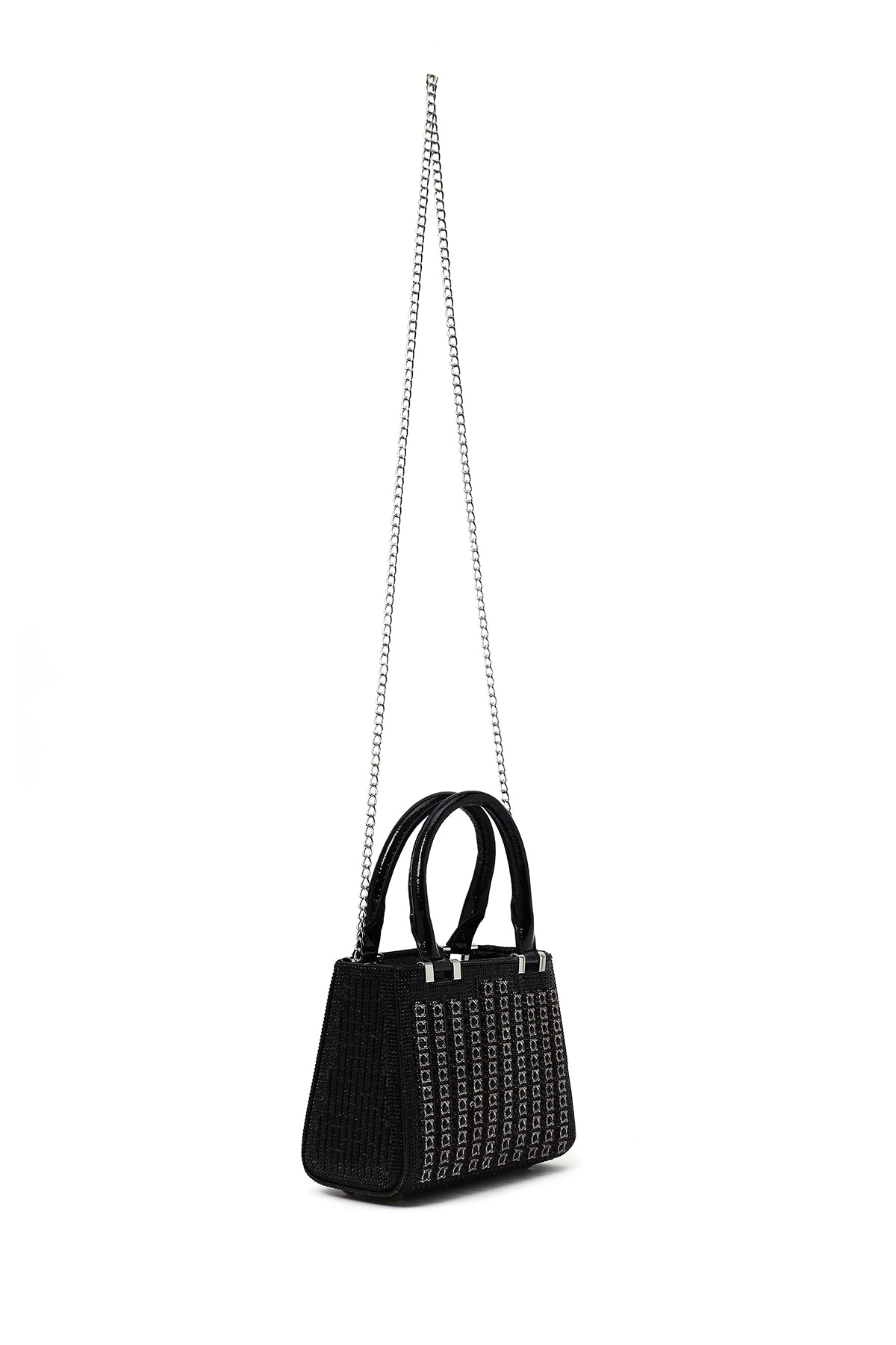 Kadın Siyah Uzun Zincir Askılı Taşlı Mini Abiye Çanta
