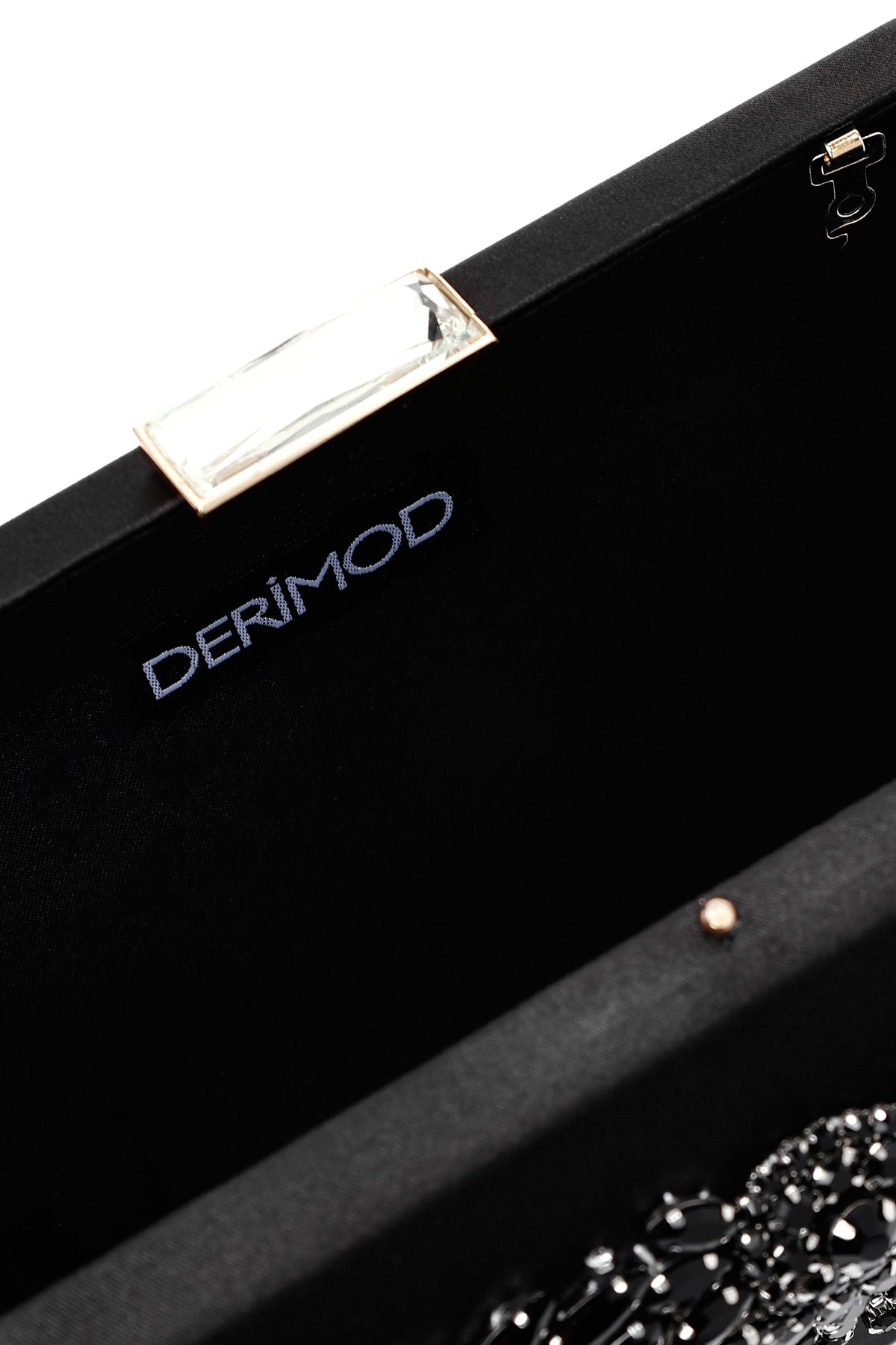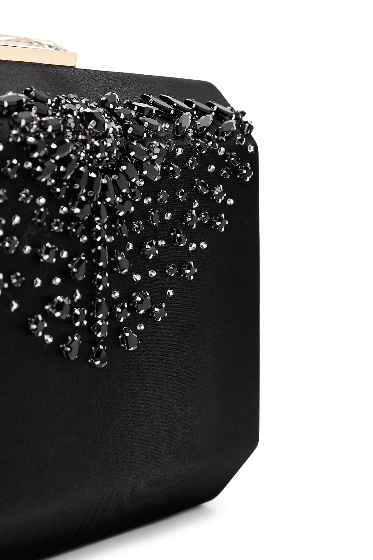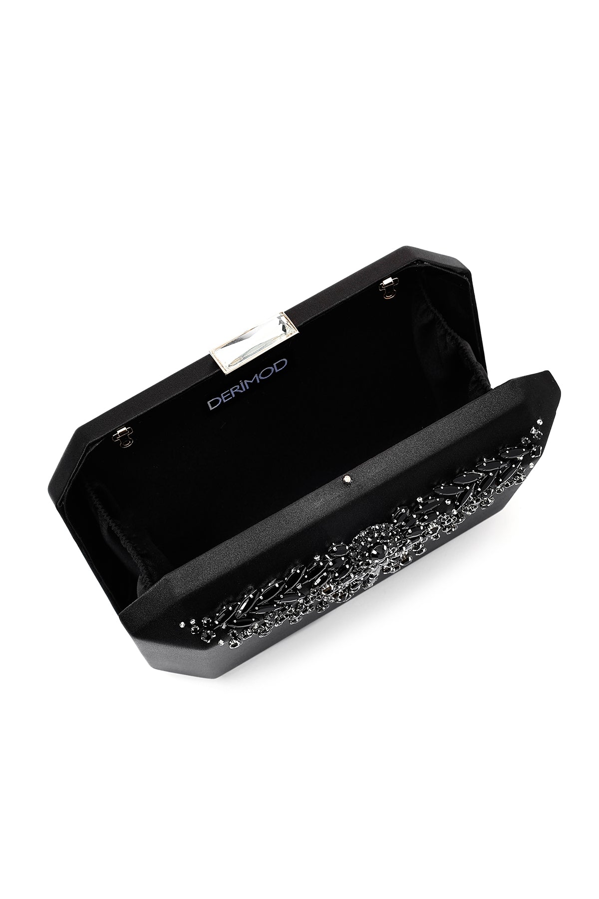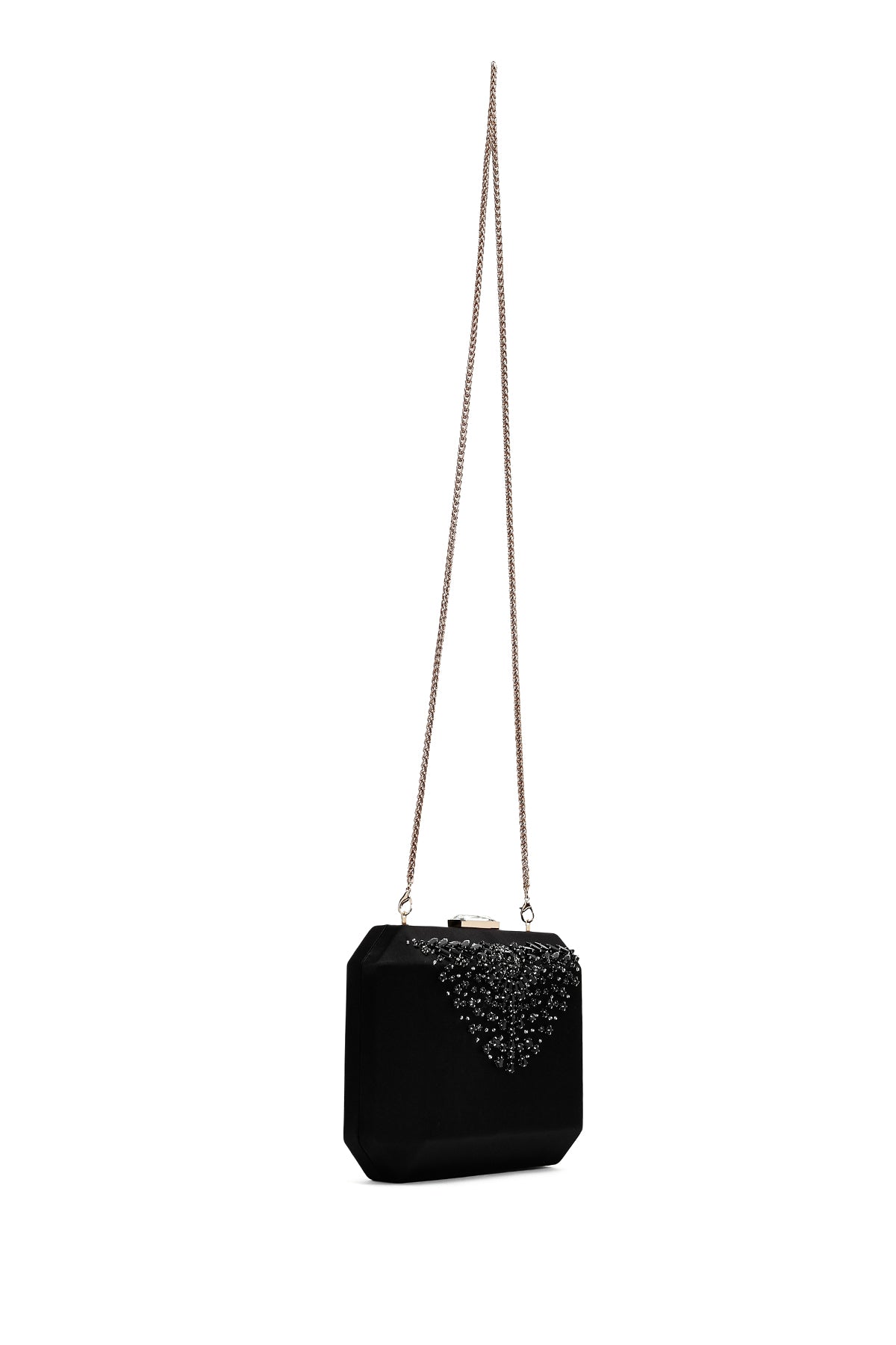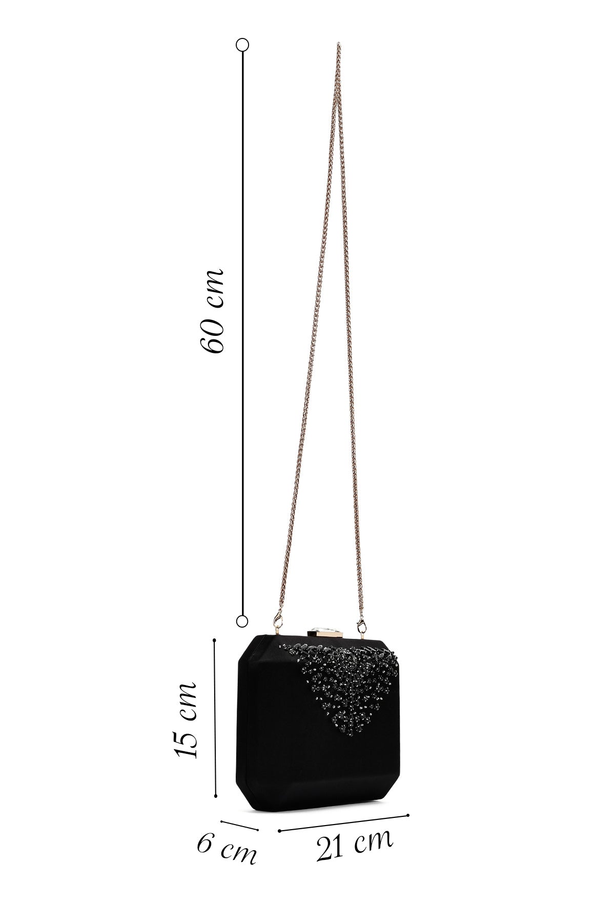 Kadın Siyah Uzun Zincir Askılı Taşlı Mini Abiye Kutu Çanta