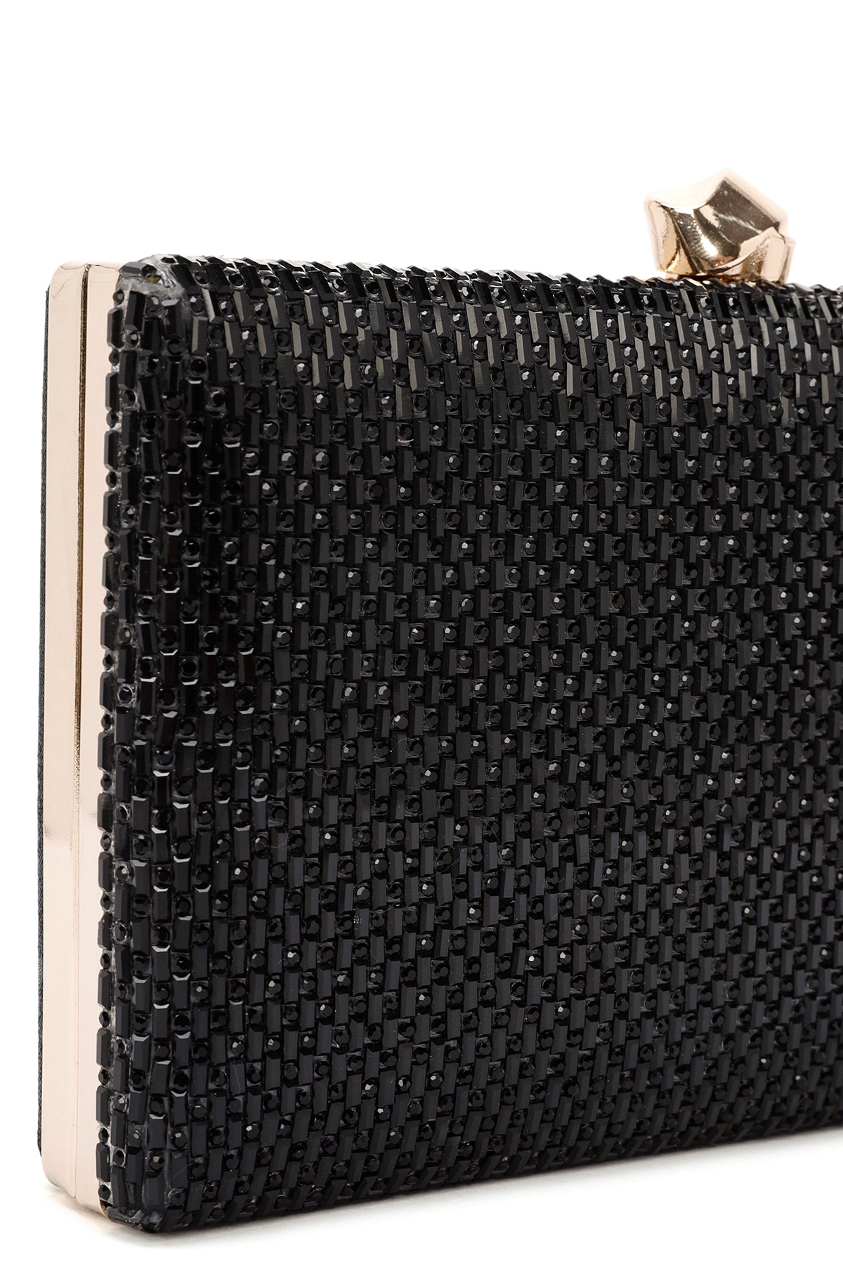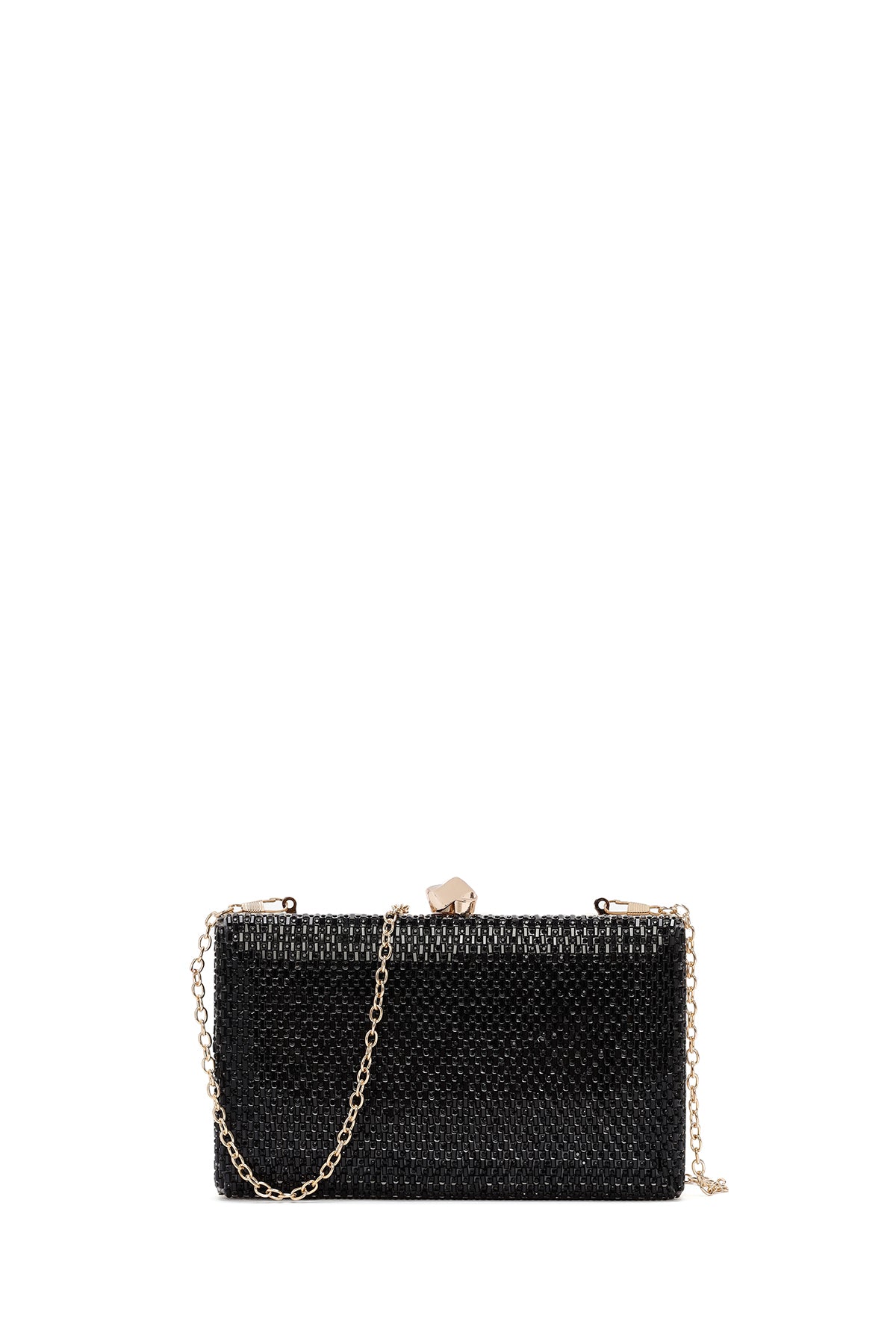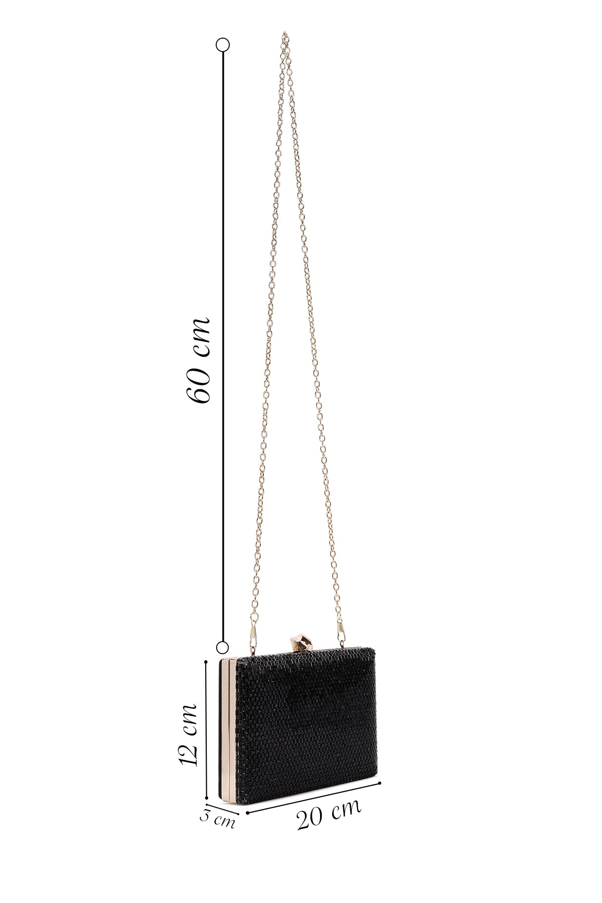 Kadın Siyah Uzun Zincir Askılı Taşlı Portföy Çanta