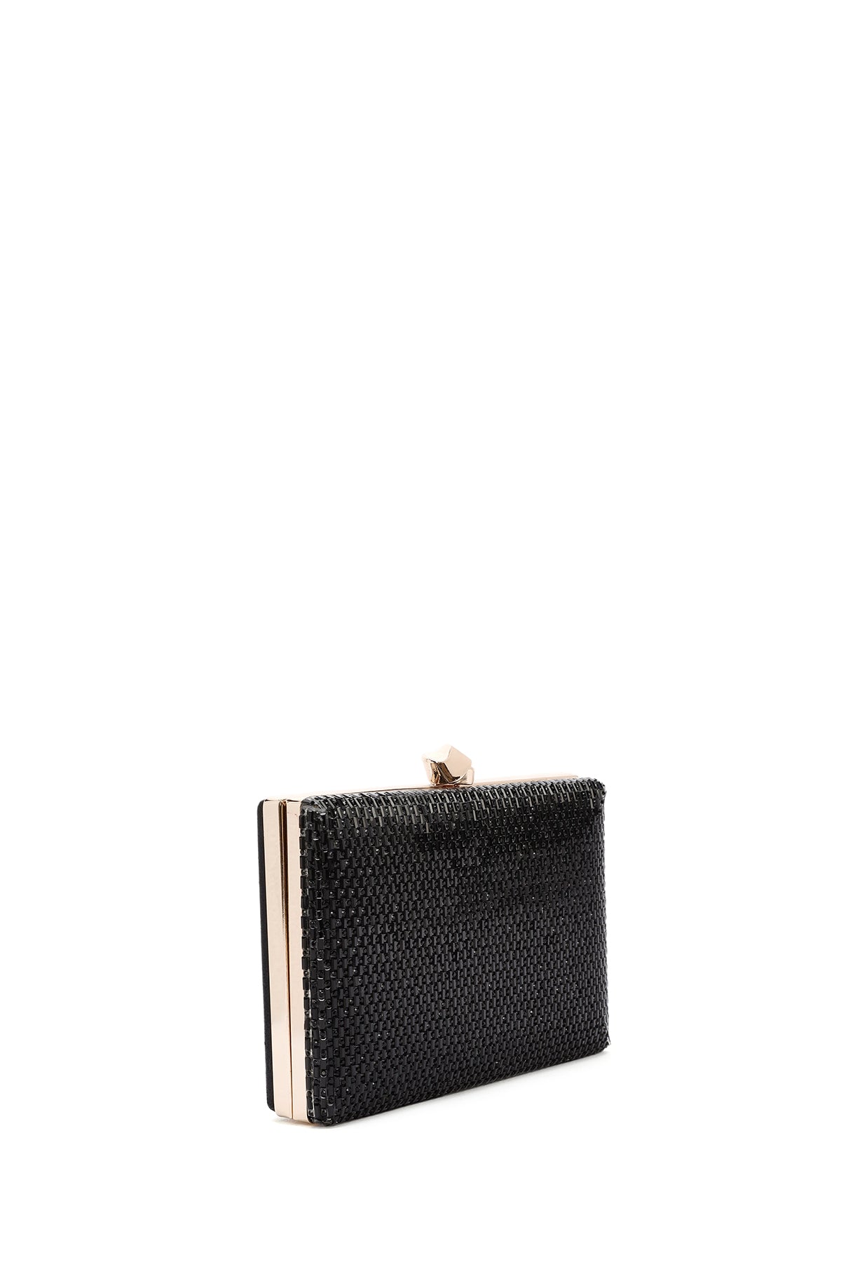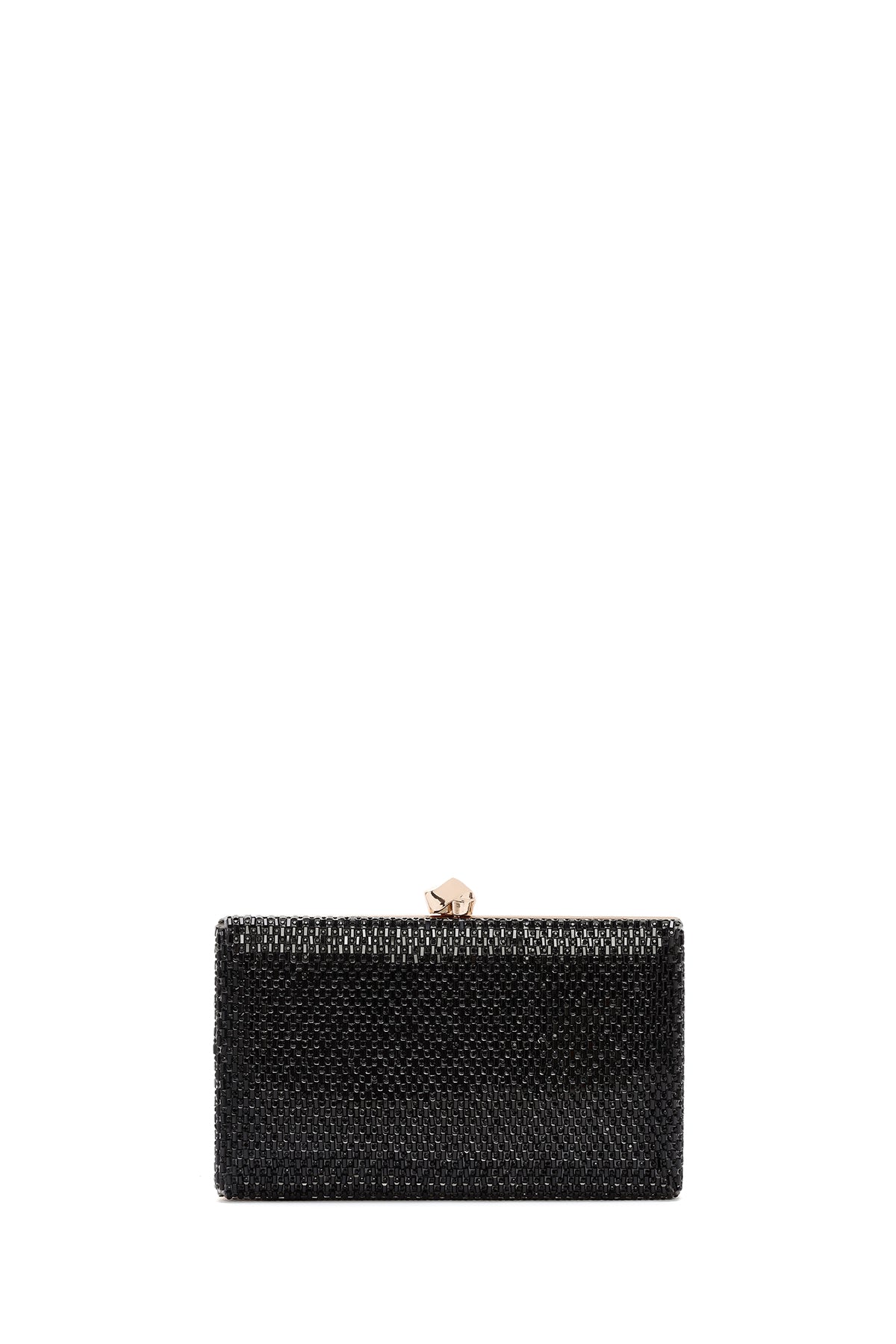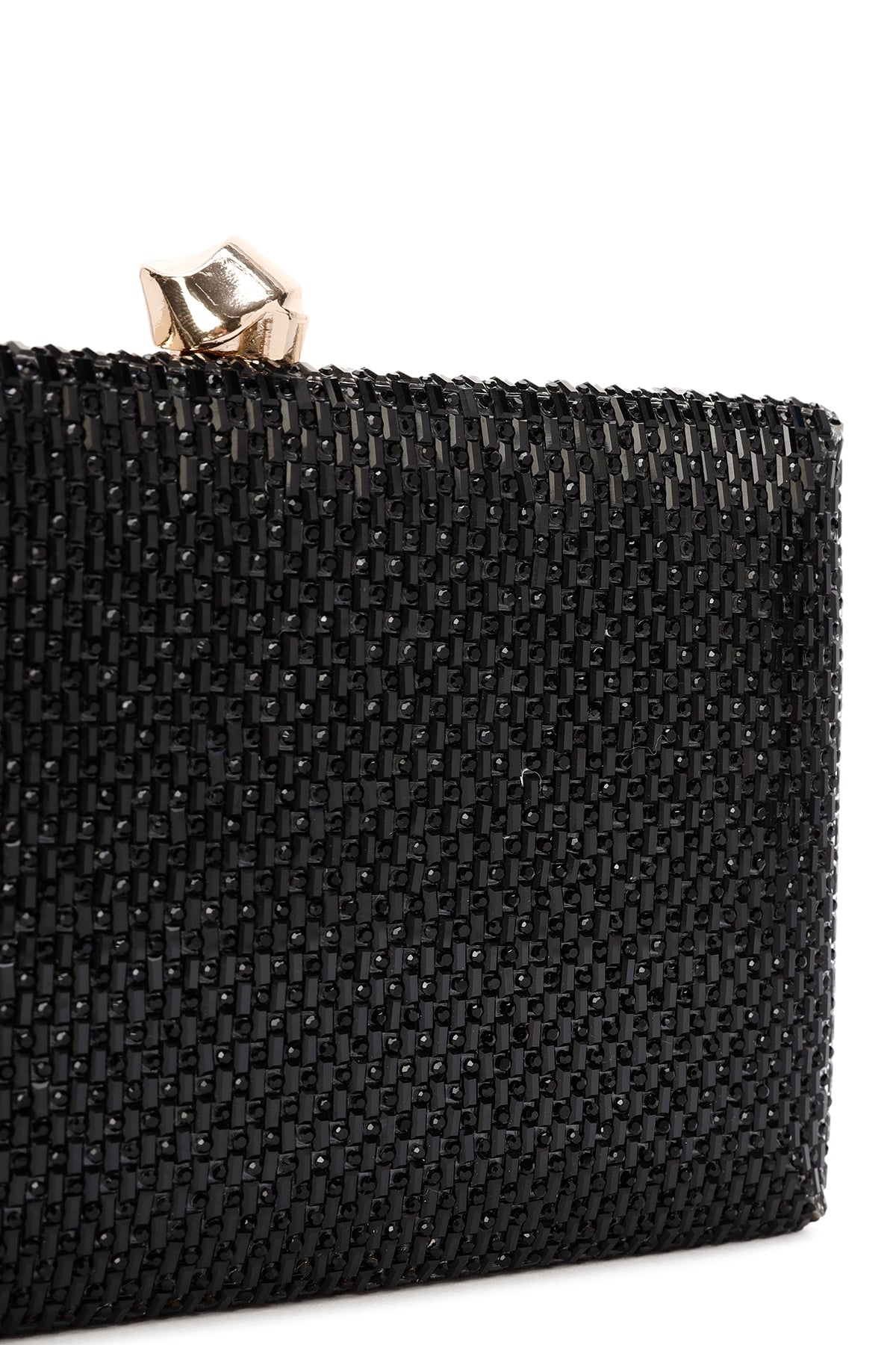 Kadın Siyah Uzun Zincir Askılı Taşlı Portföy Çanta