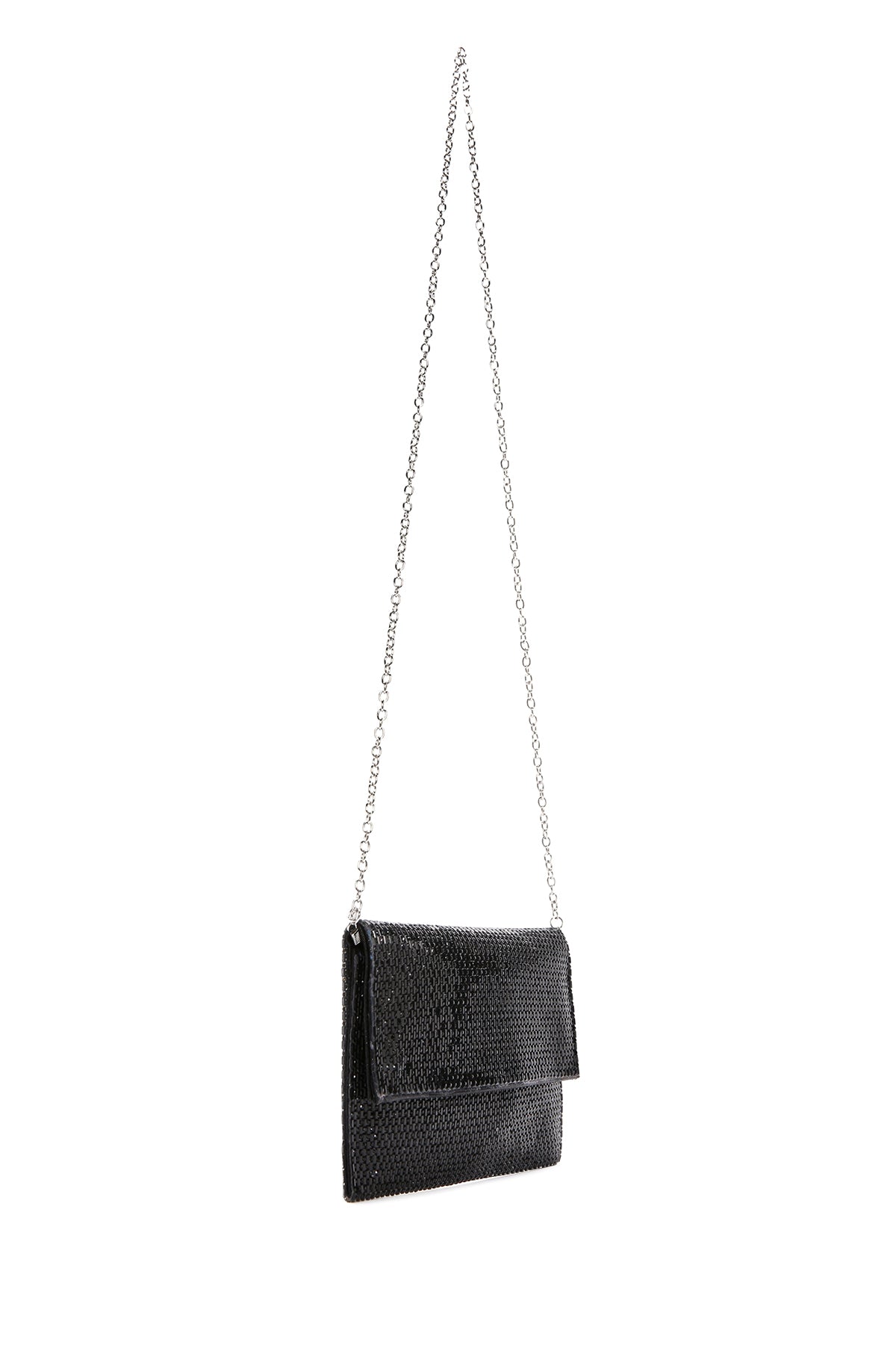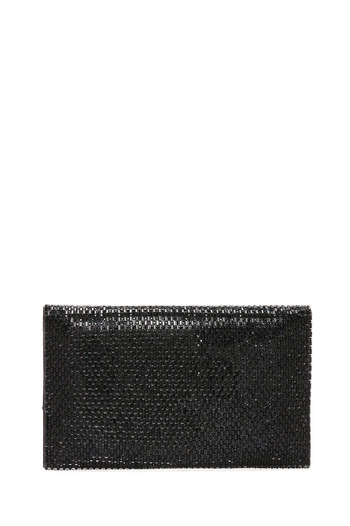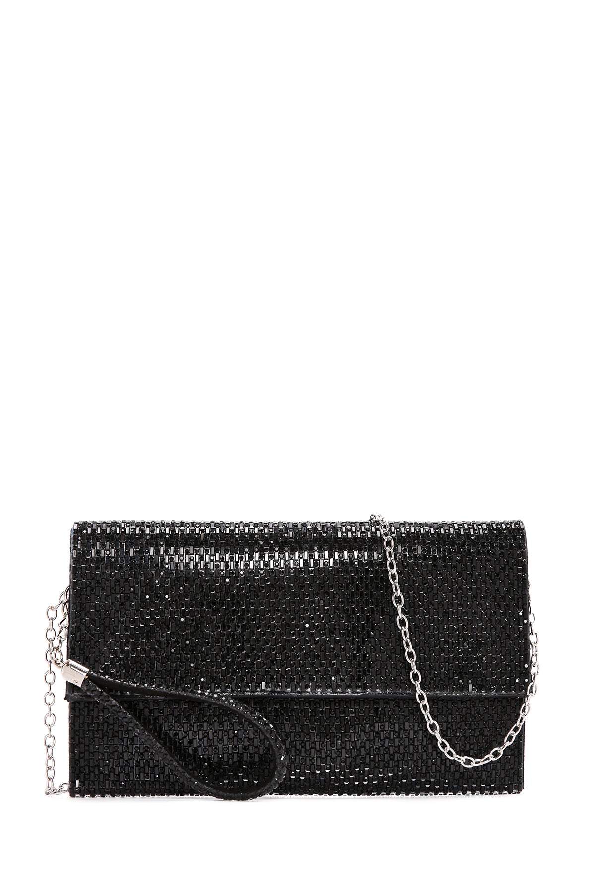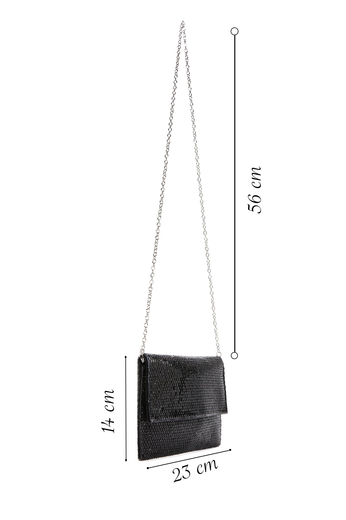 Kadın Siyah Uzun Zincir Askılı Taşlı Portföy Çanta