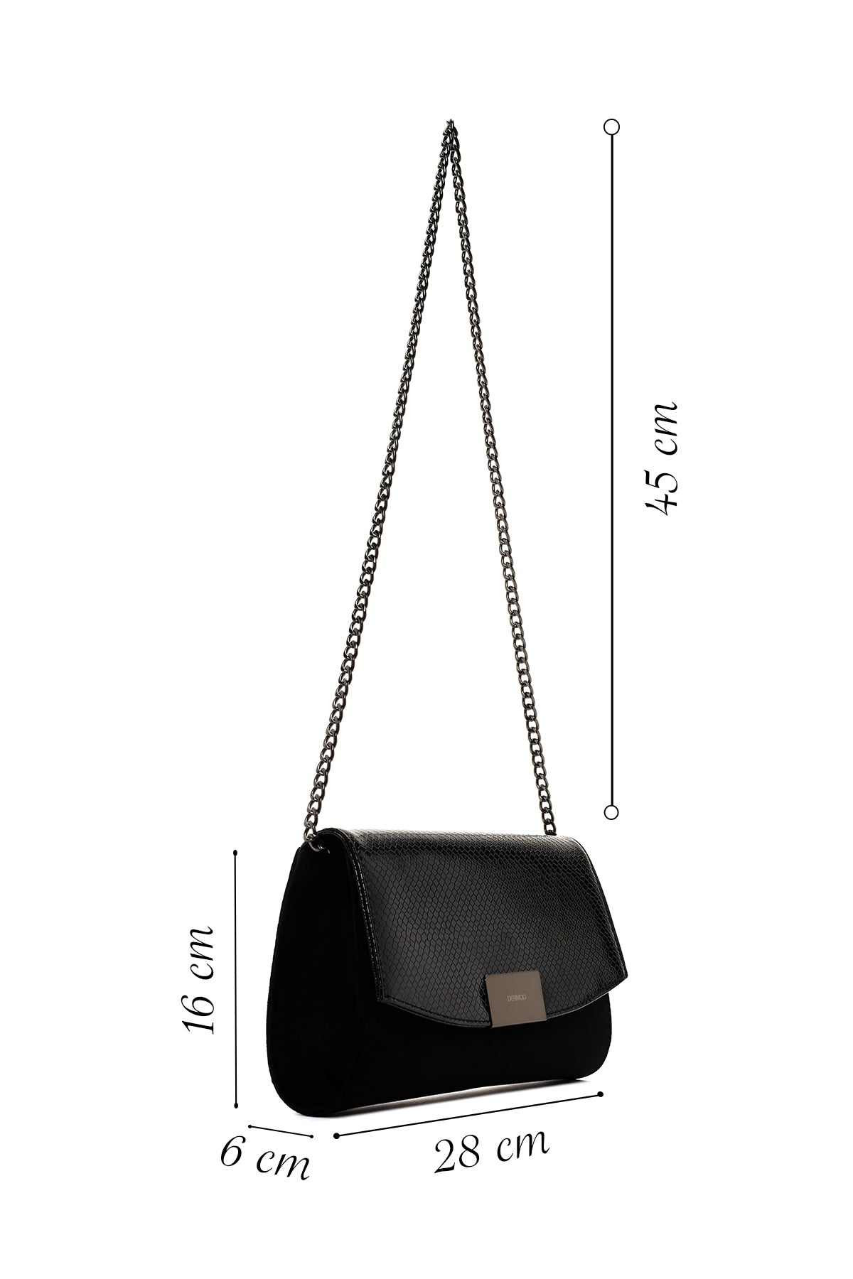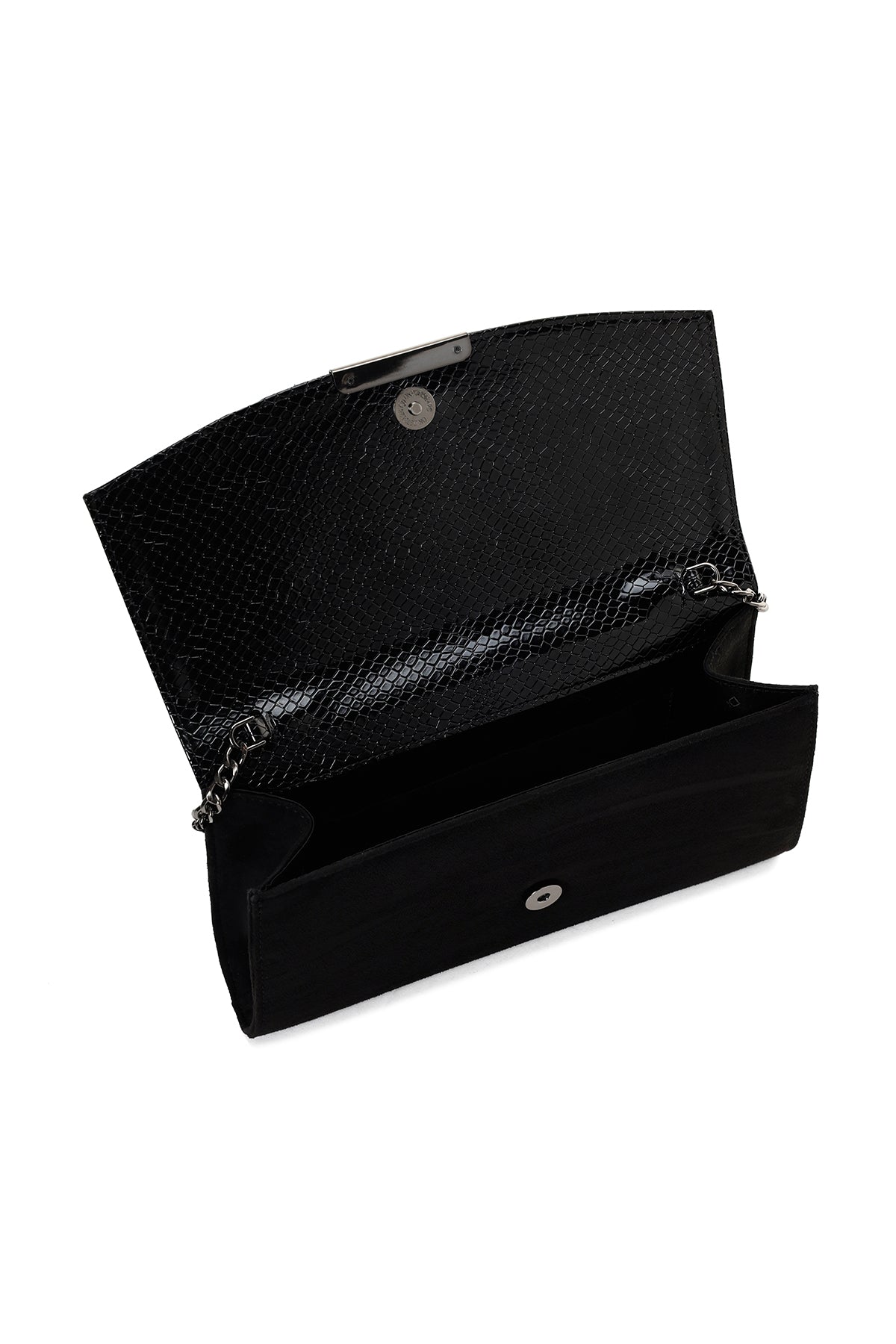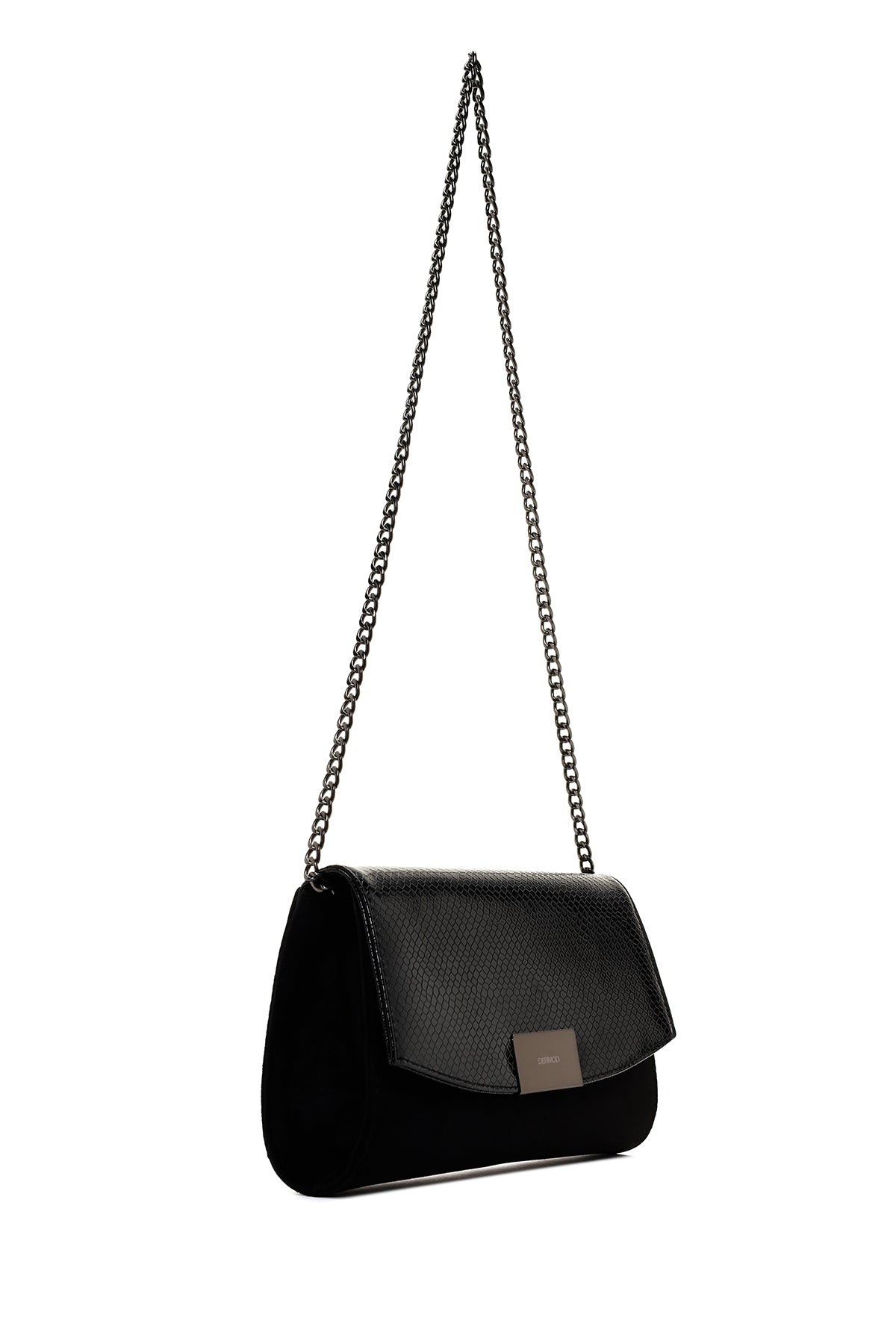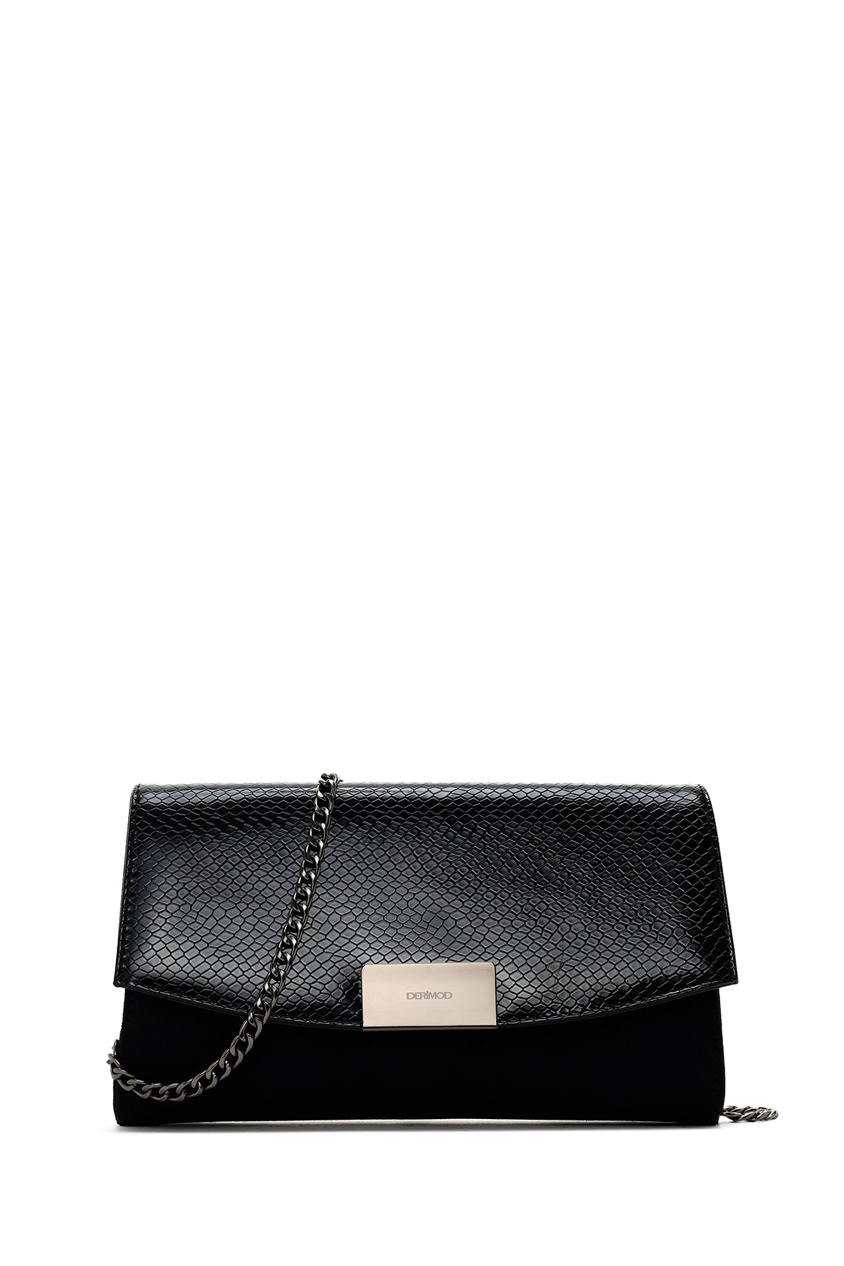 Kadın Siyah Zincir Askılı Desenli Portföy Çanta