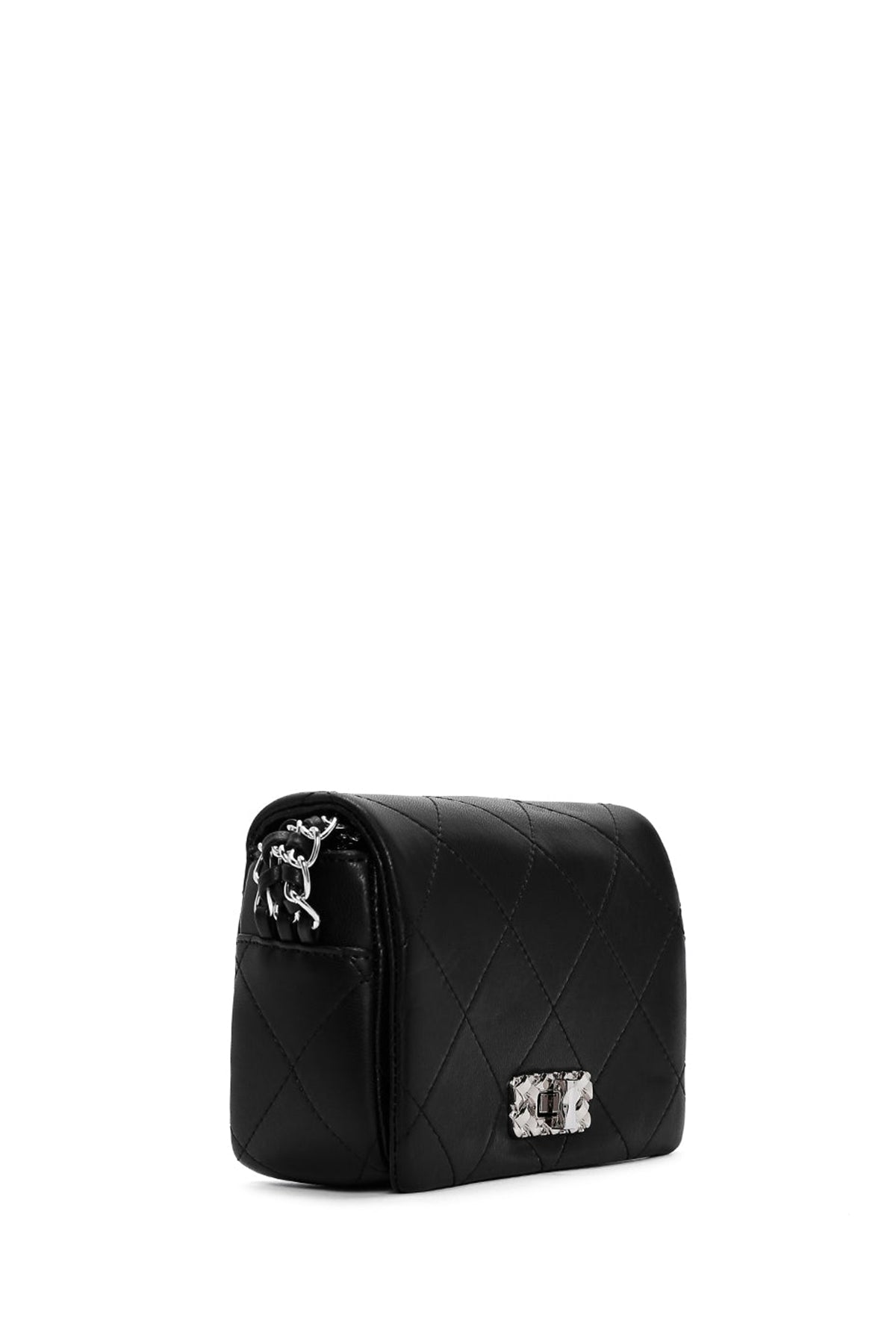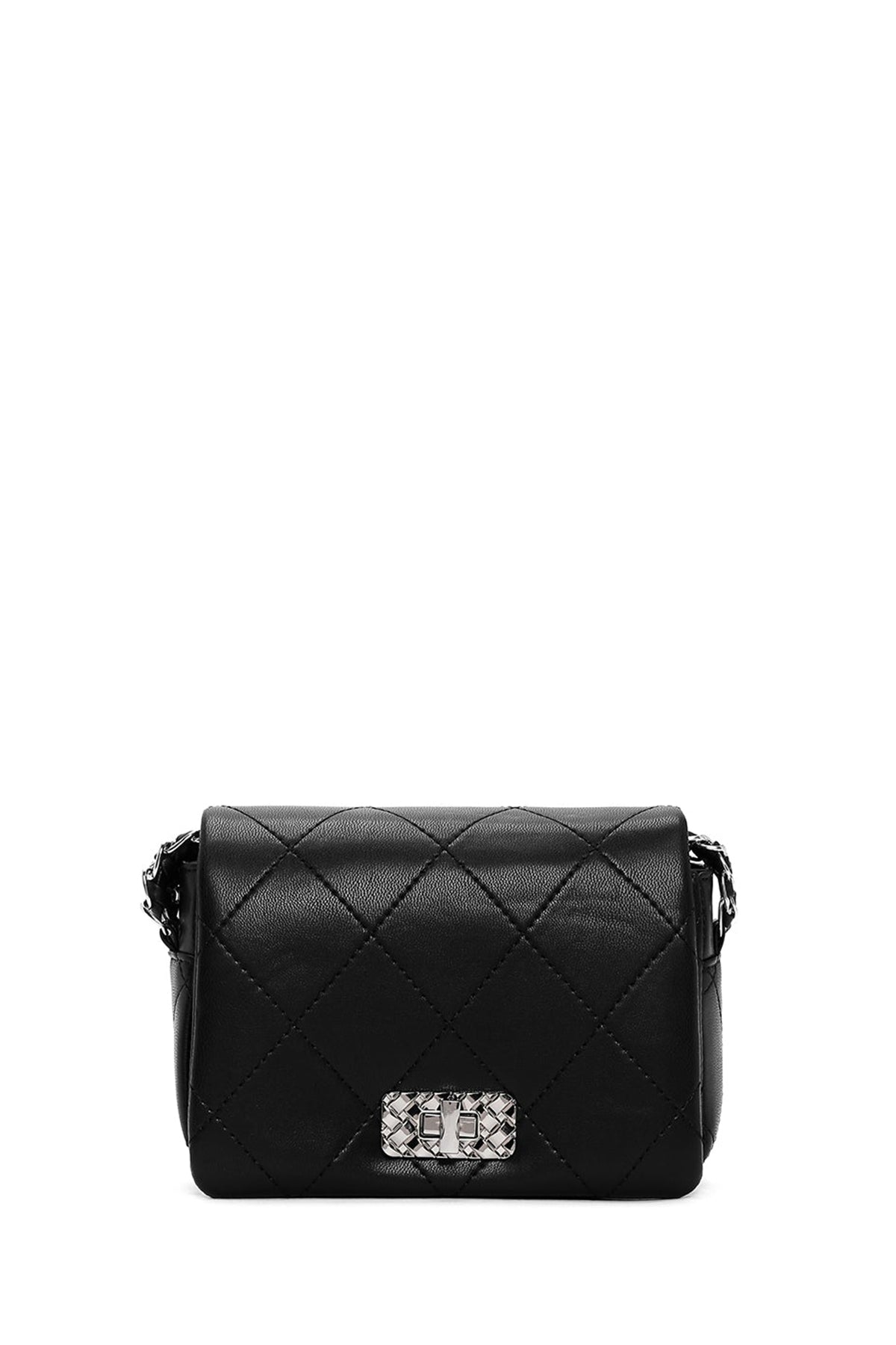 Kadın Siyah Zincir Askılı Kapitone Mini Çapraz Çanta