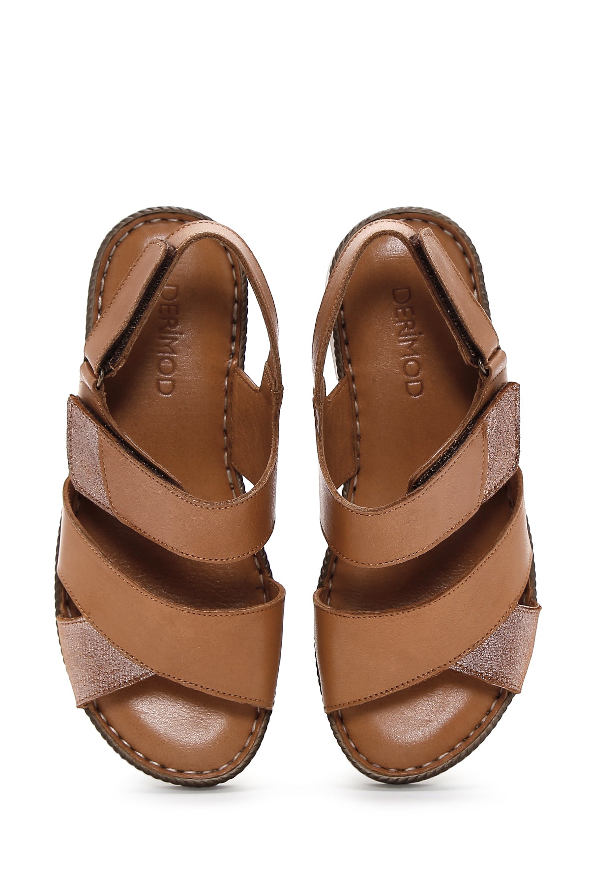 Kadın Taba Bilekten Bantlı Deri Comfort Sandalet