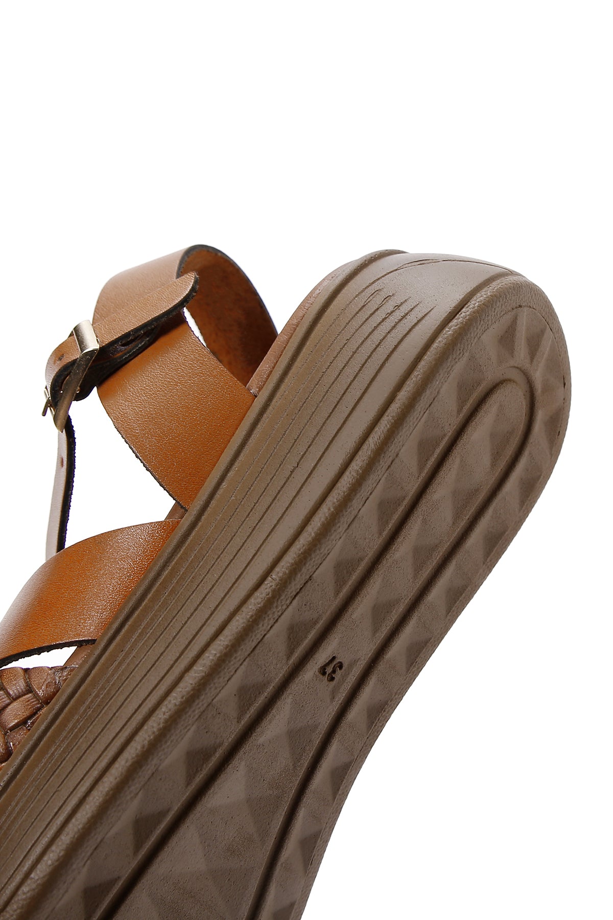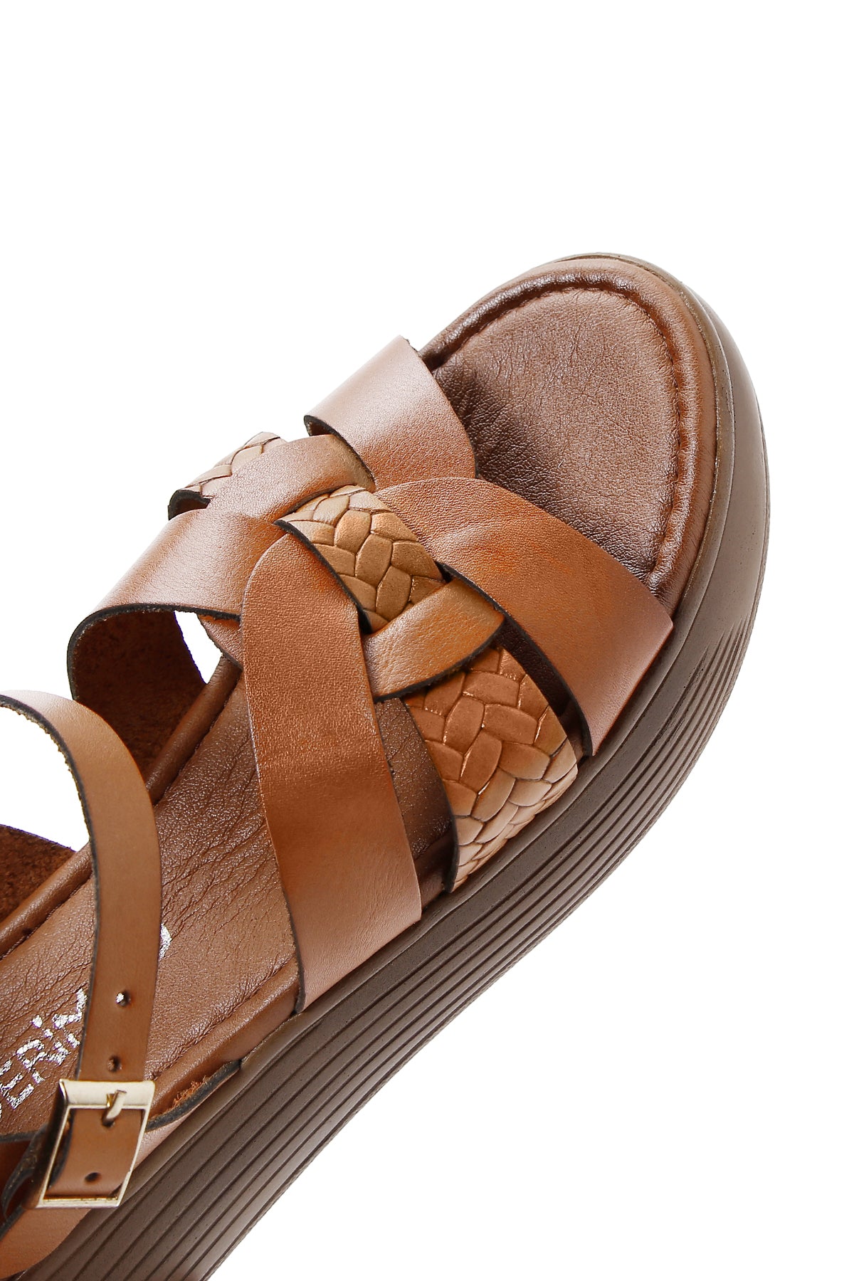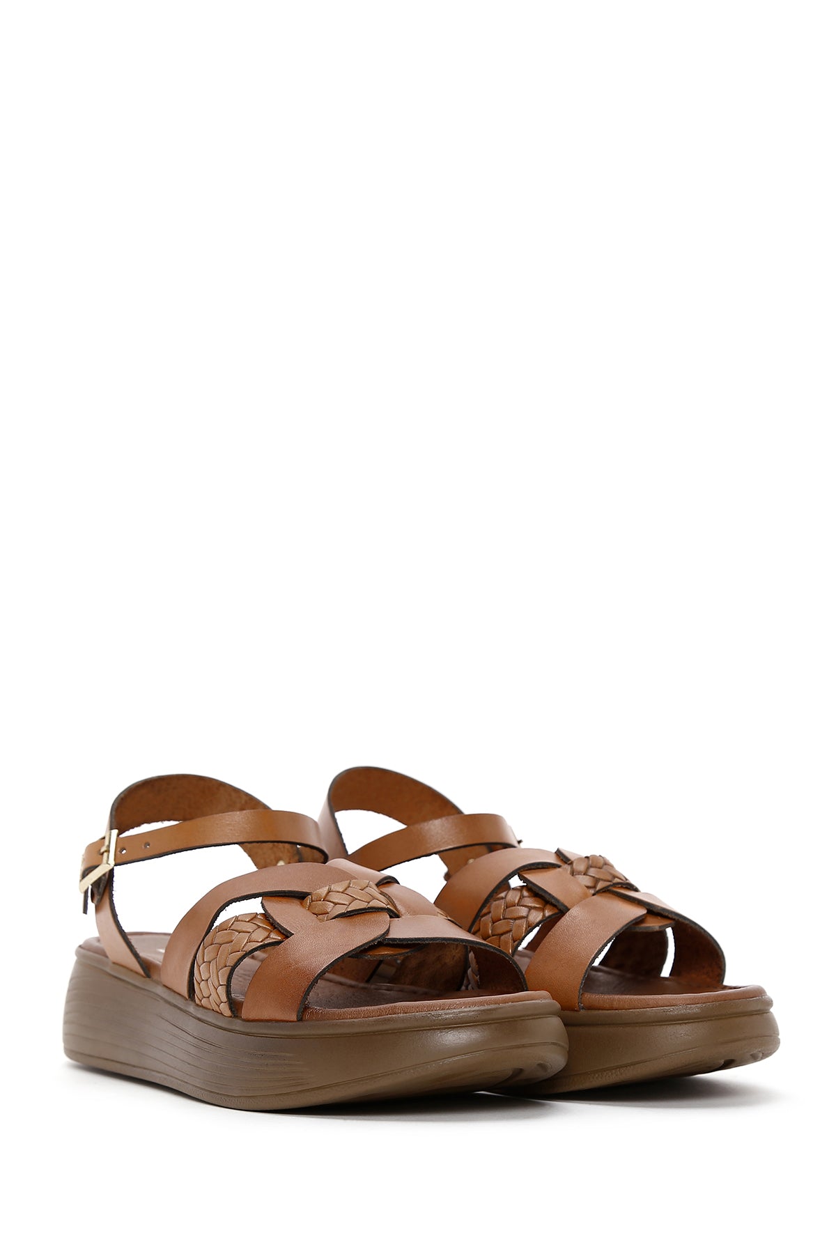 Kadın Taba Bilekten Bantlı Deri Sandalet