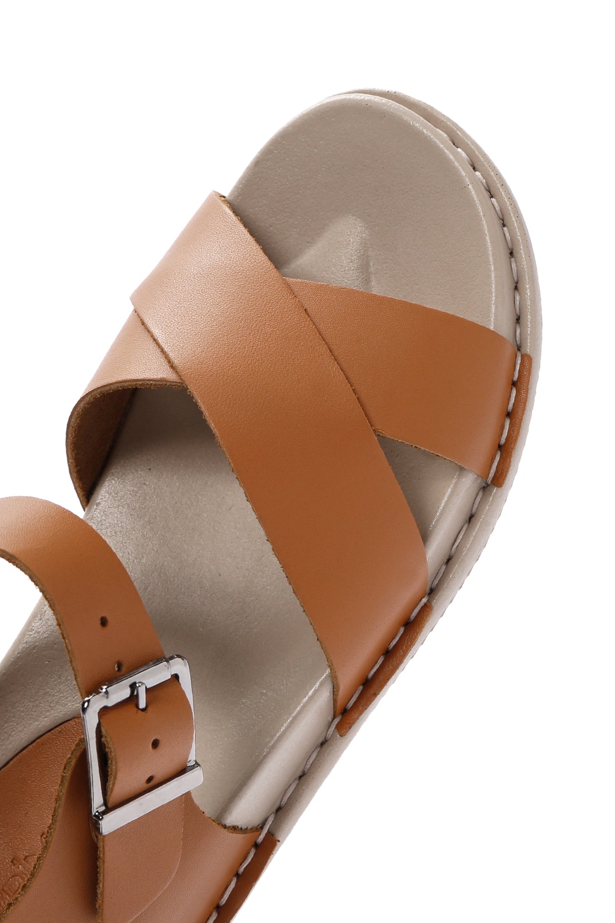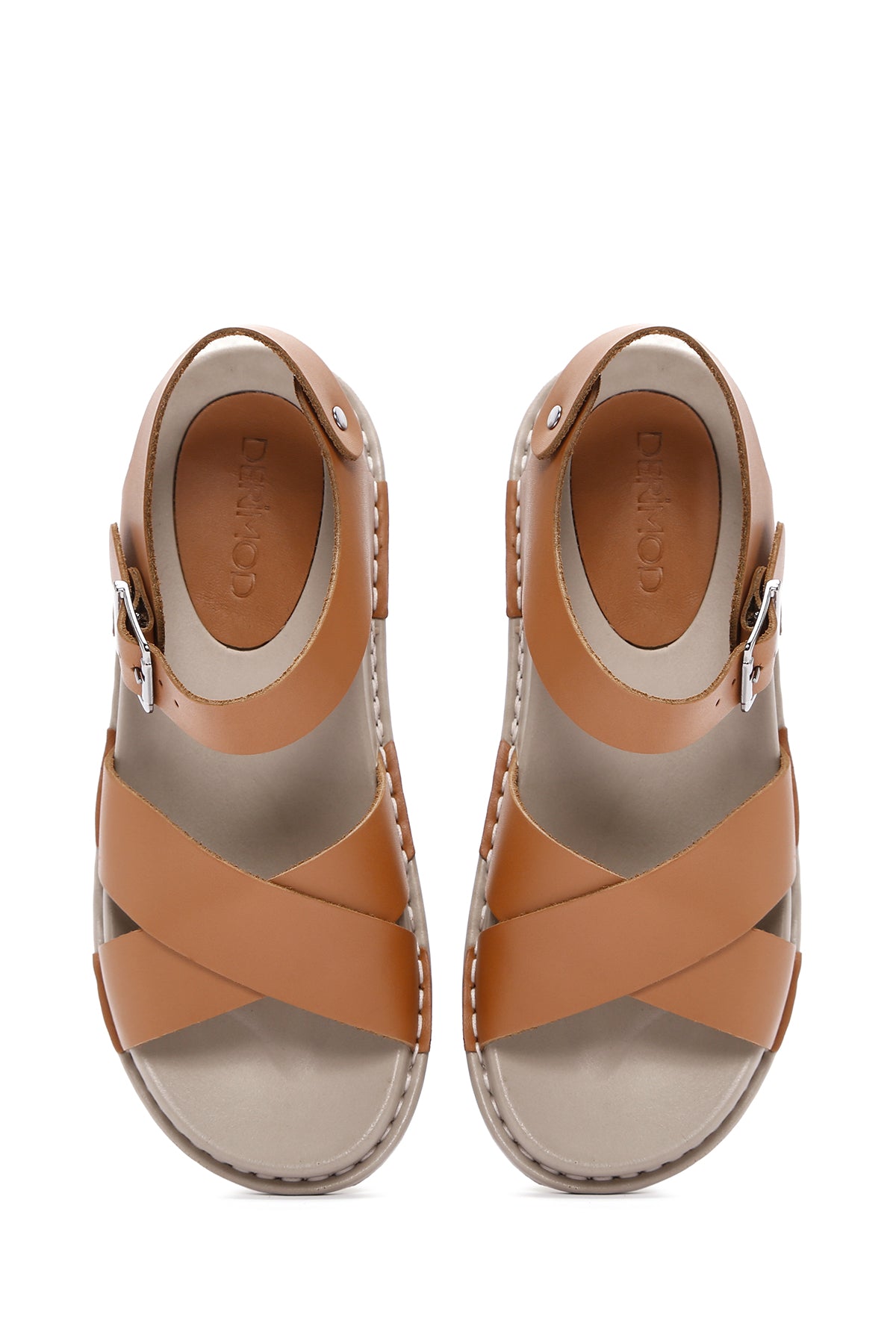 Kadın Taba Bilekten Bantlı Deri Sandalet