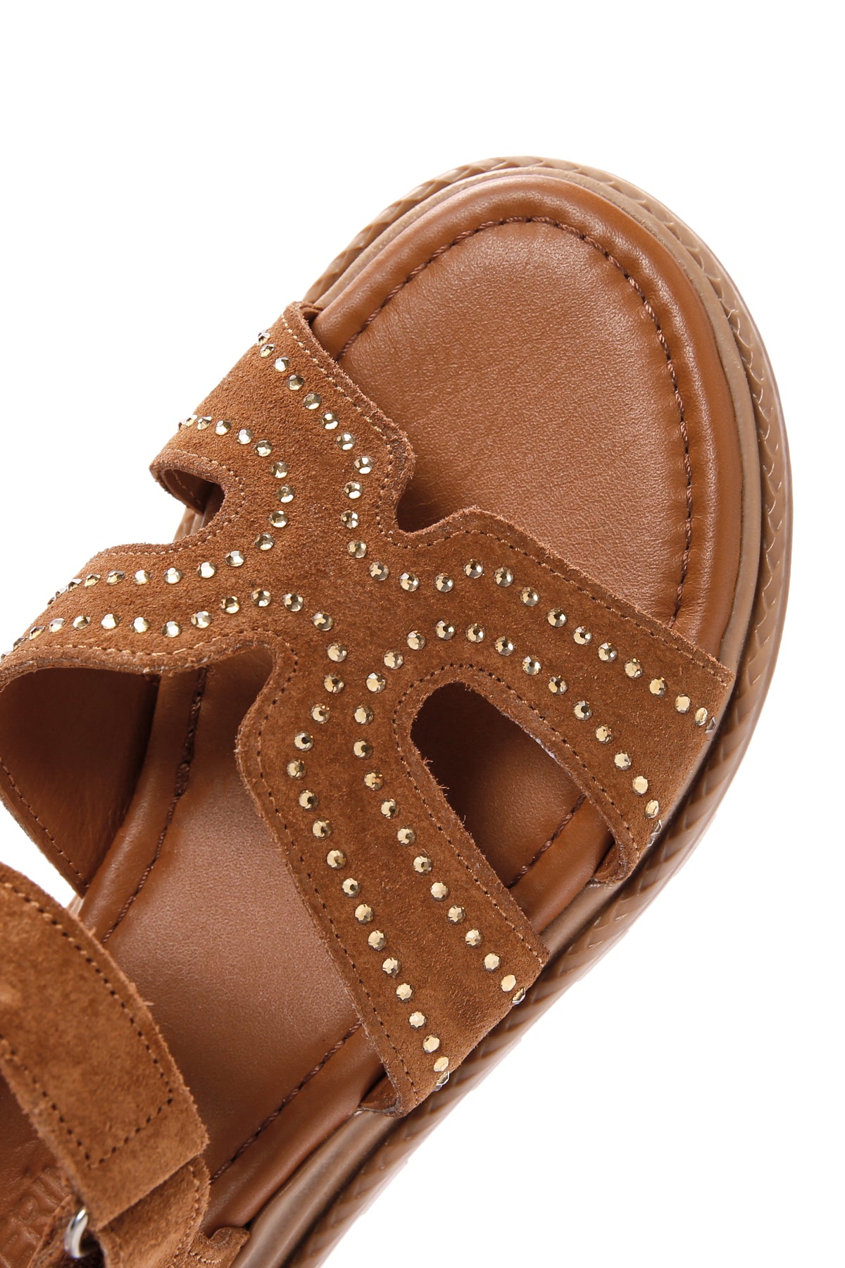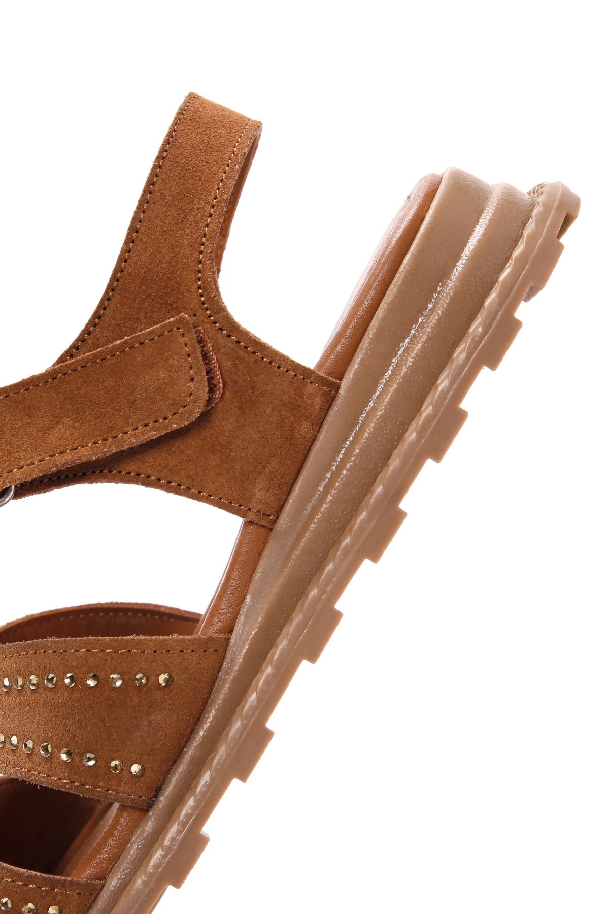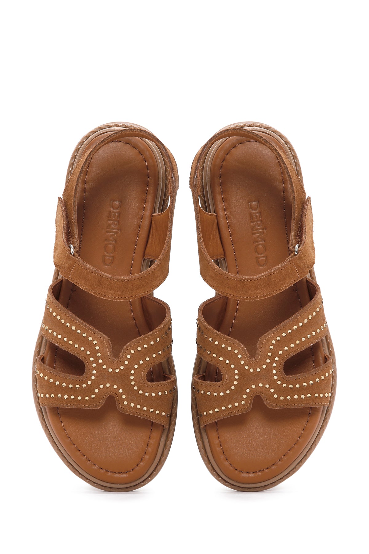 Kadın Taba Bilekten Bantlı Süet Deri Sandalet