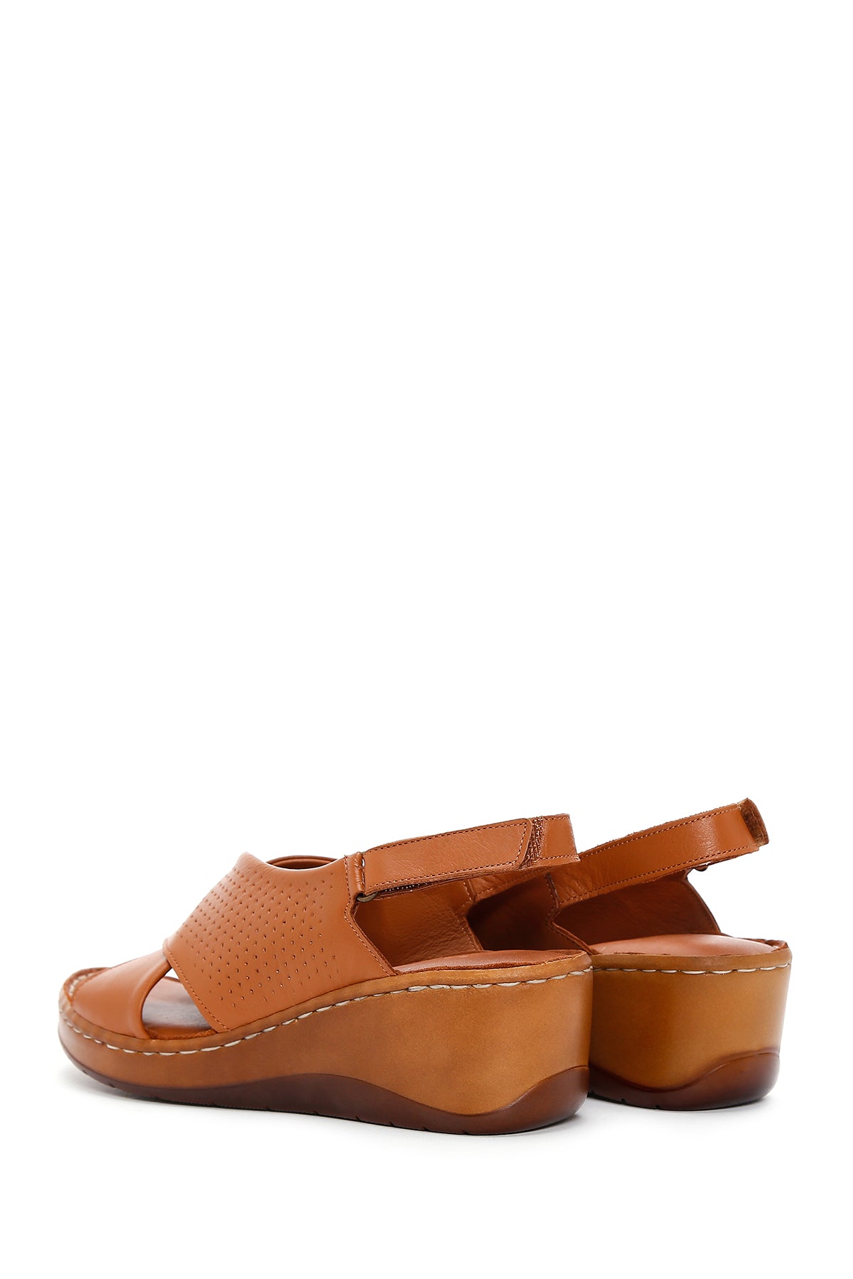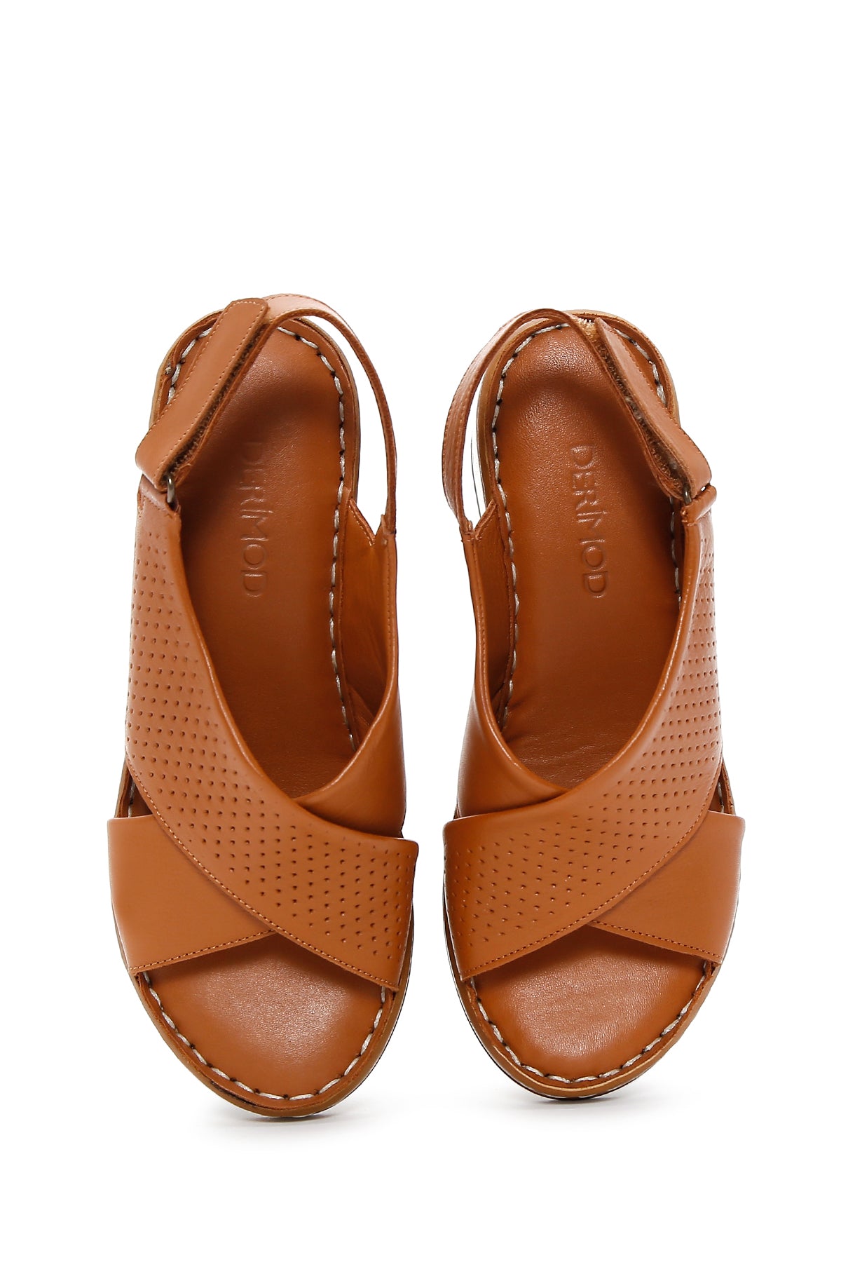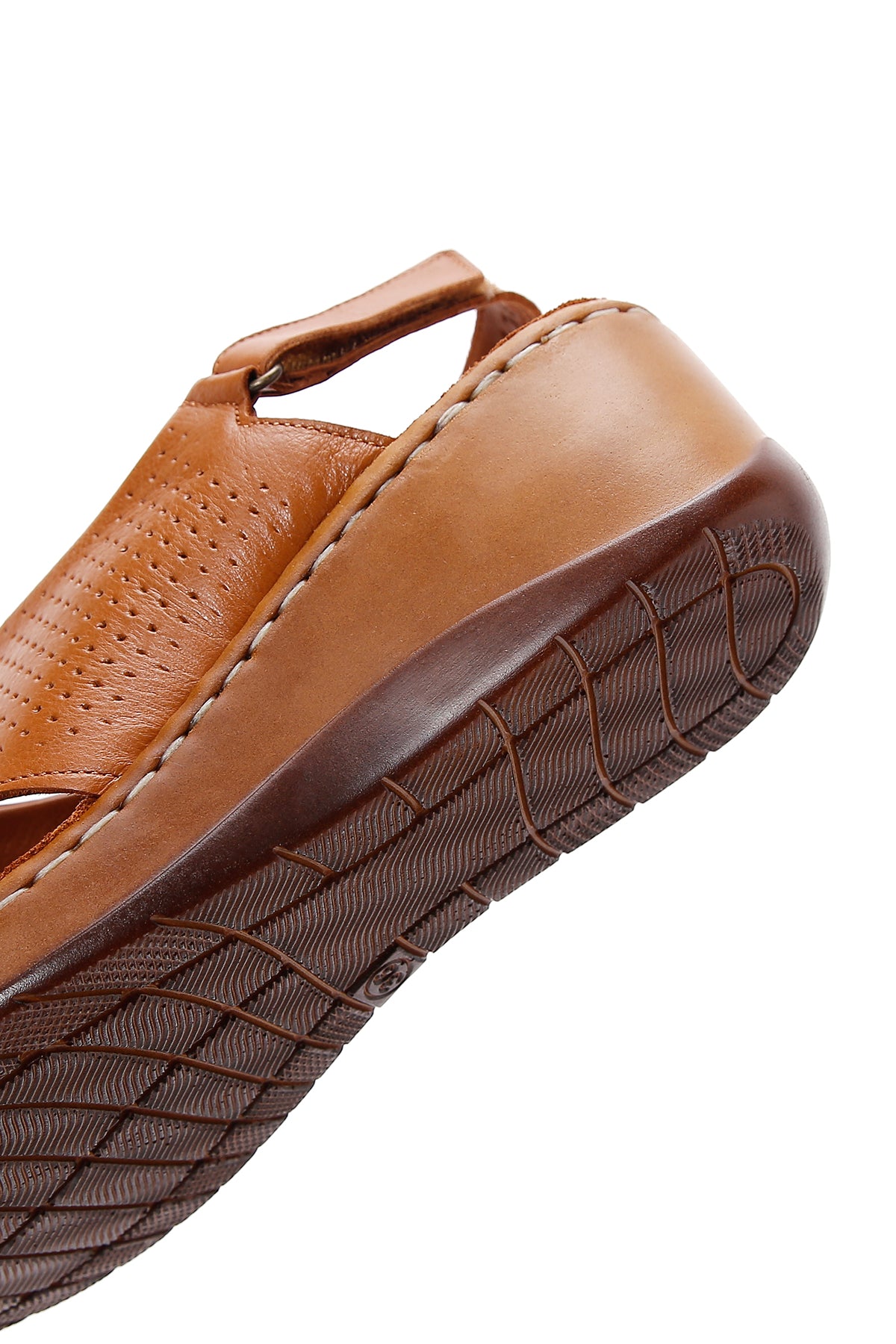 Kadın Taba Dolgu Topuklu Bilekten Bantlı Deri Comfort Sandalet