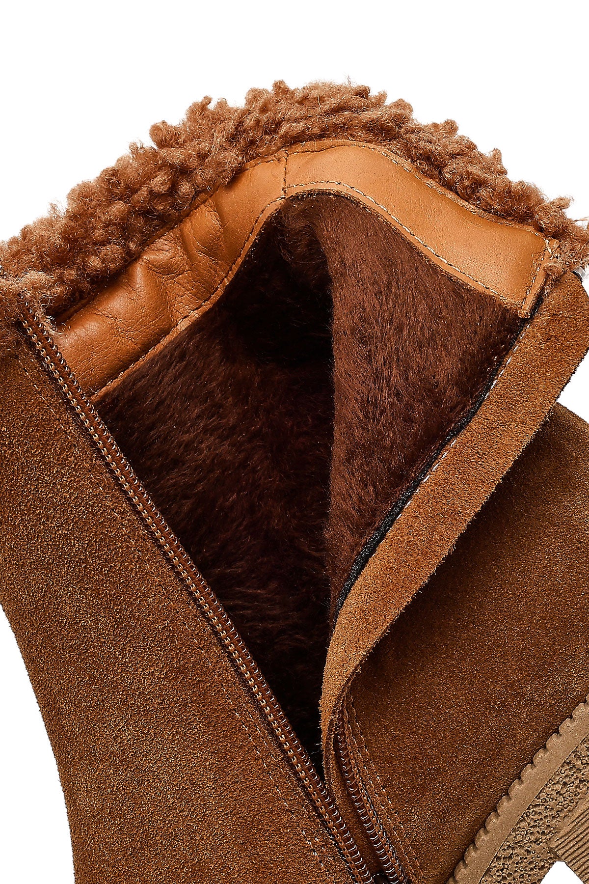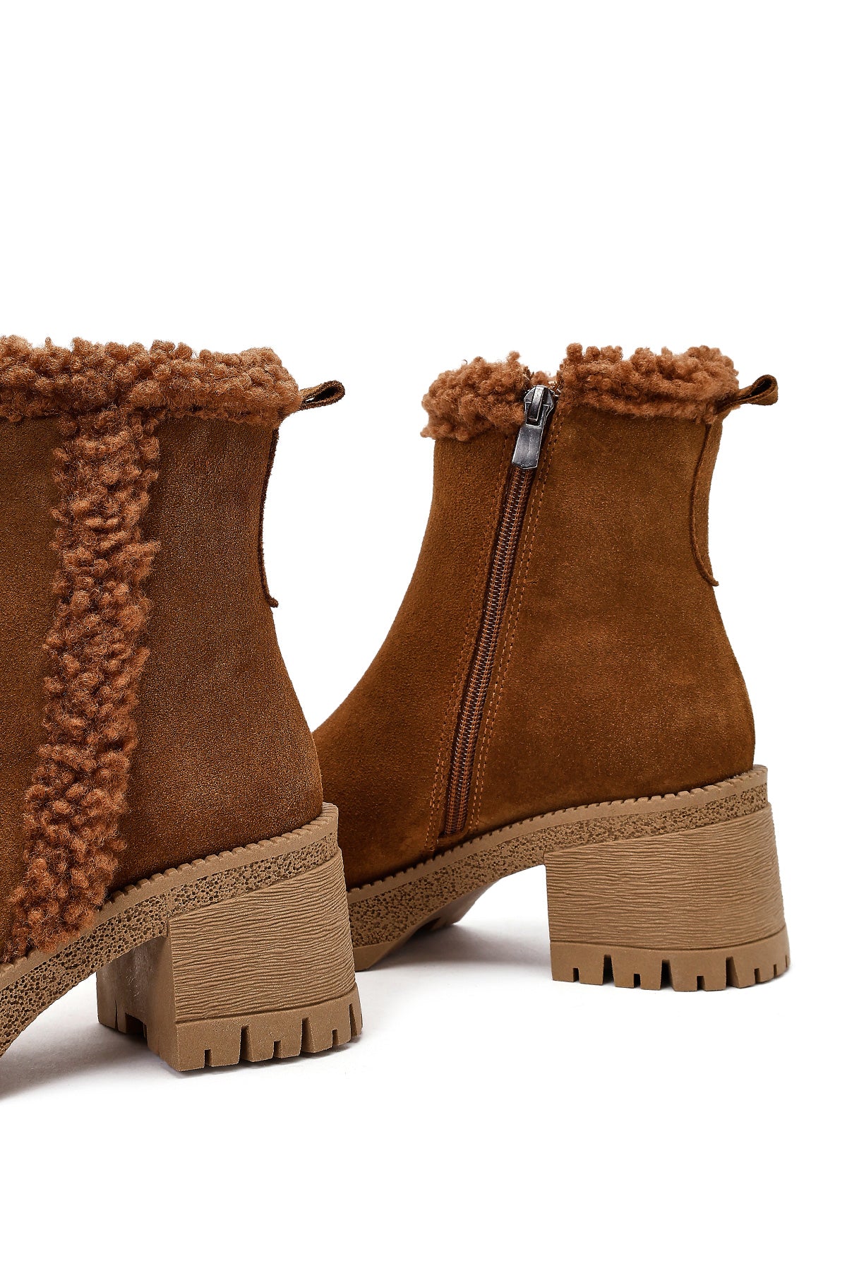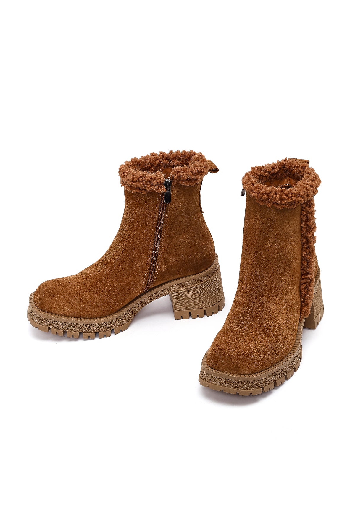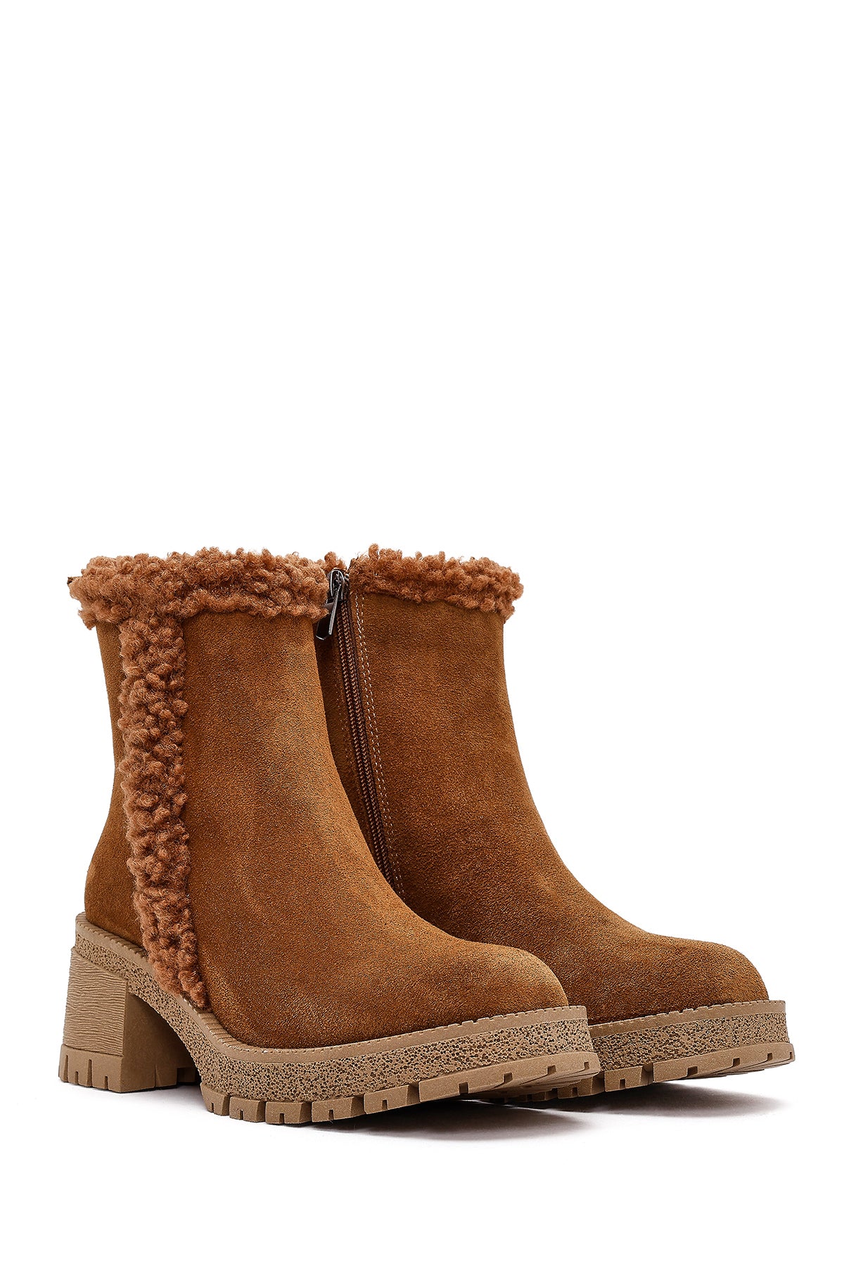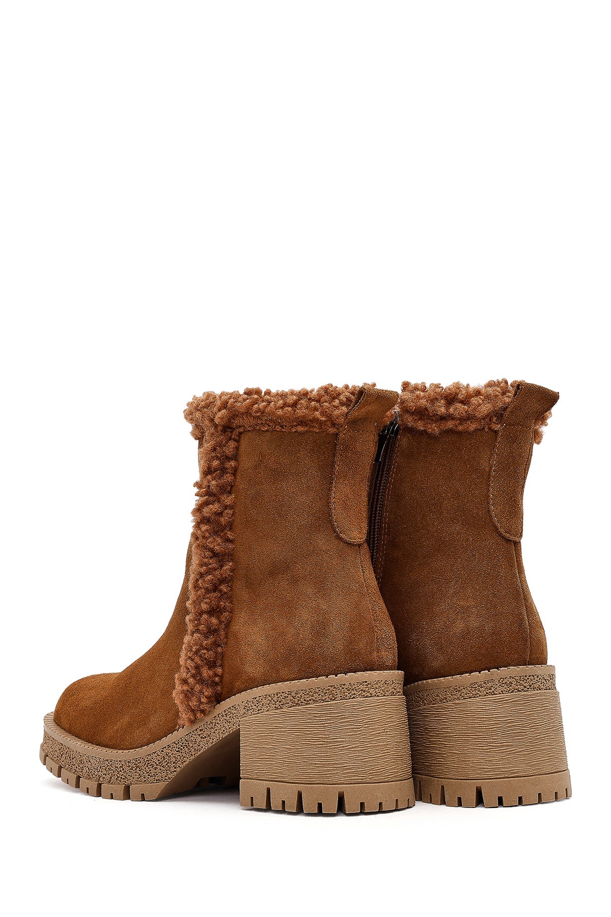 Kadın Taba Fermuarlı Kalın Topuklu Süet Deri Bot