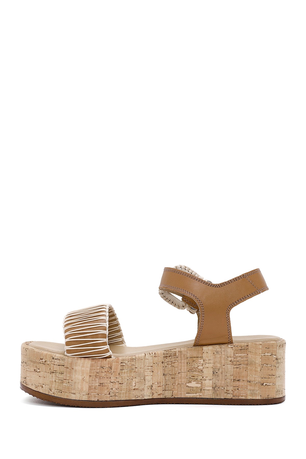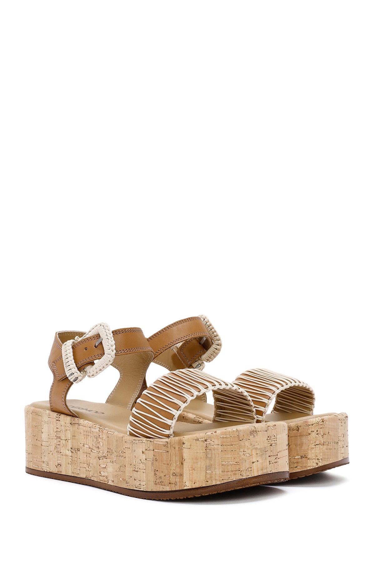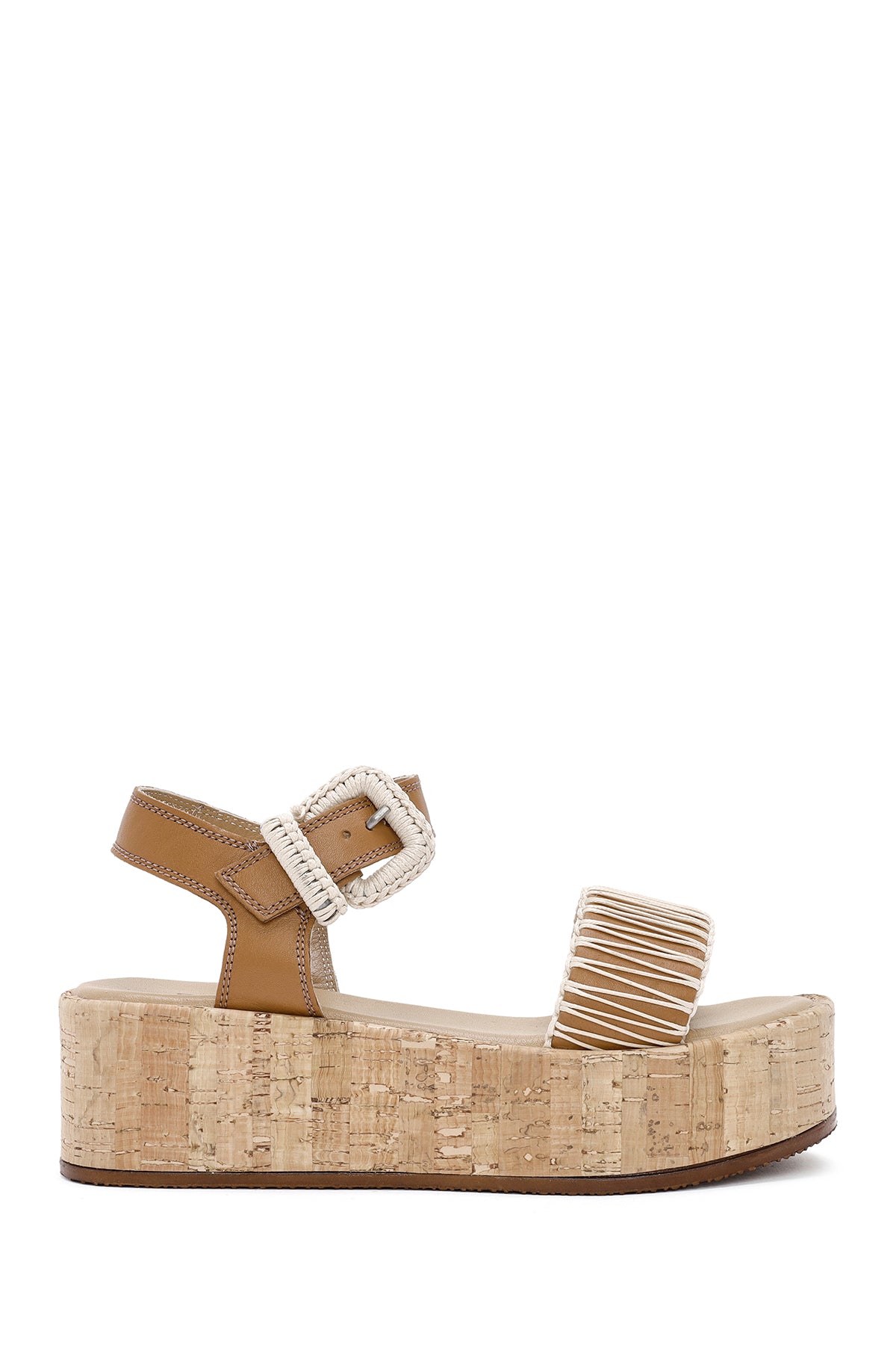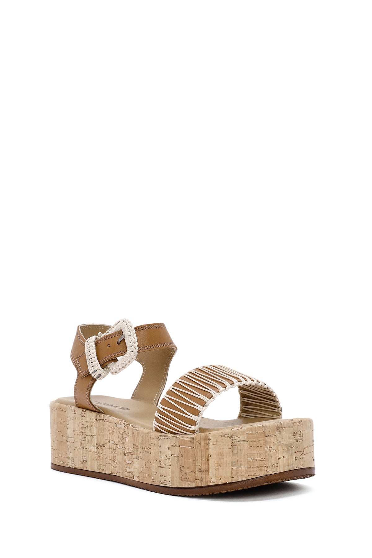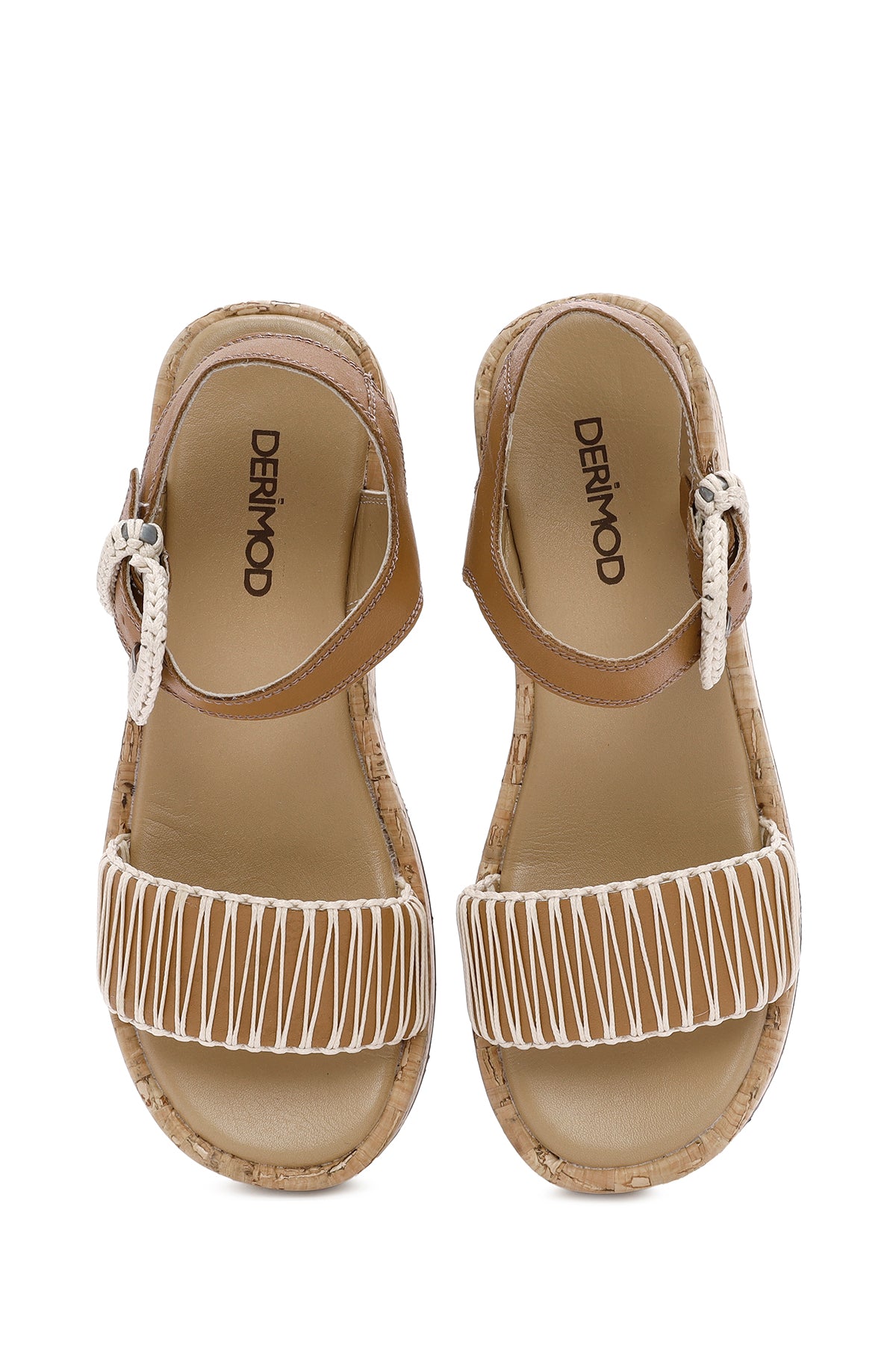 Kadın Taba Kalın Tabanlı Bilekten Bantlı Deri Sandalet