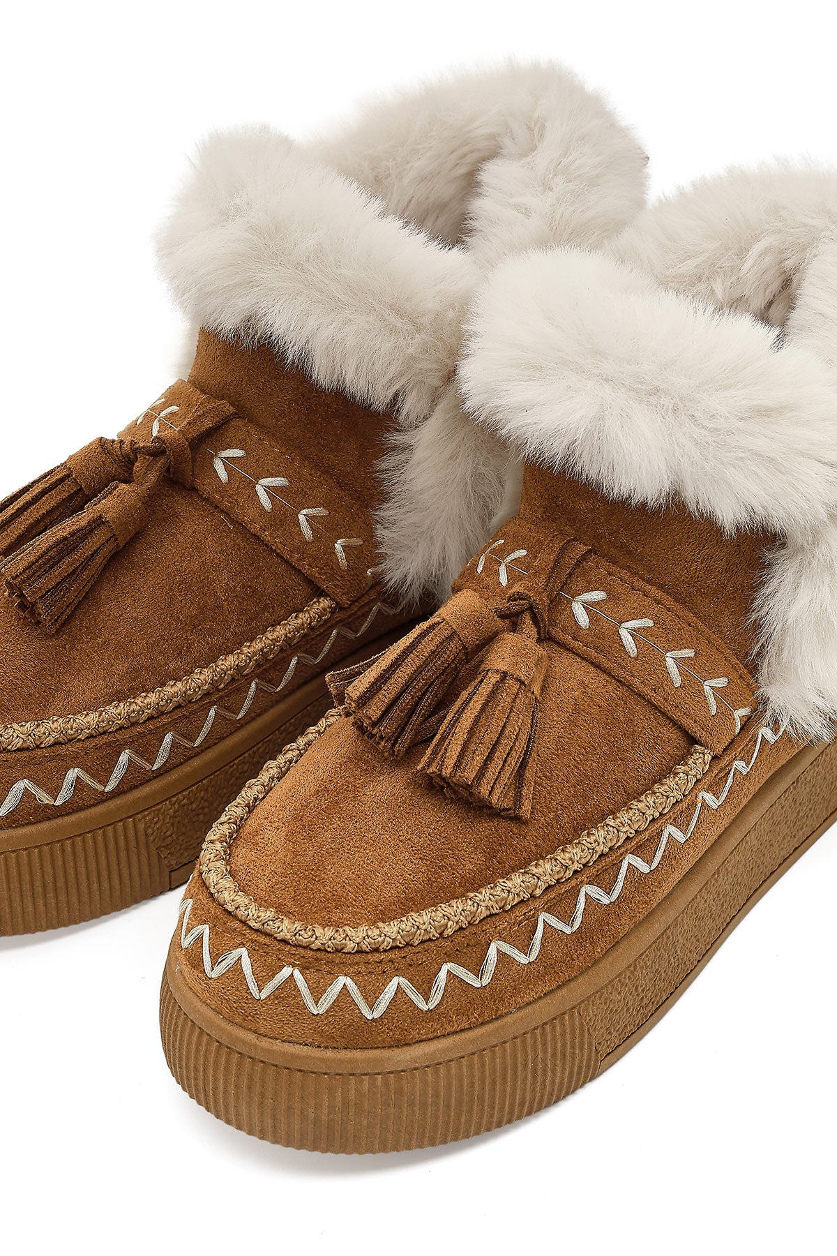 Kadın Taba Kalın Tabanlı Püsküllü Süet Teddy Bot