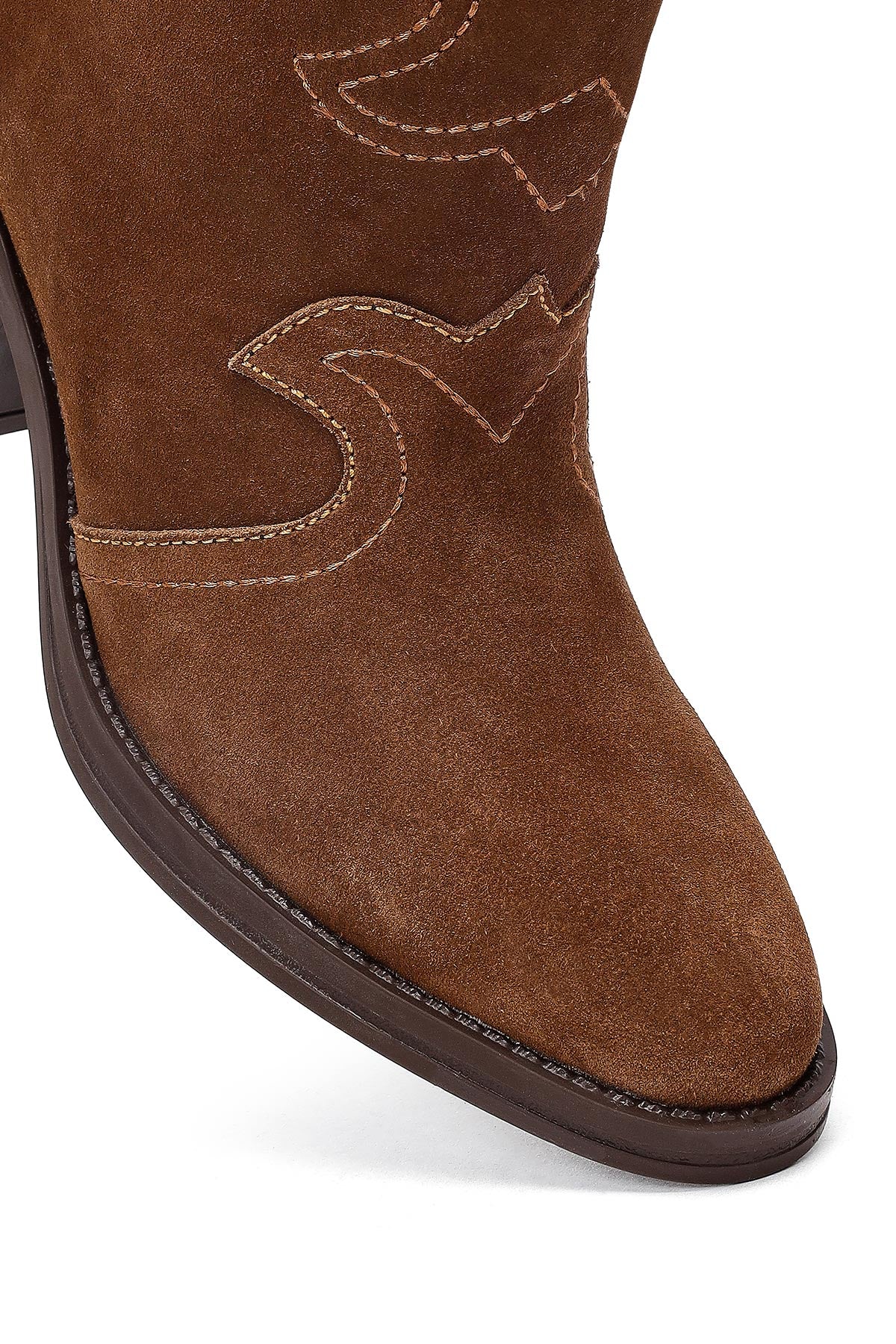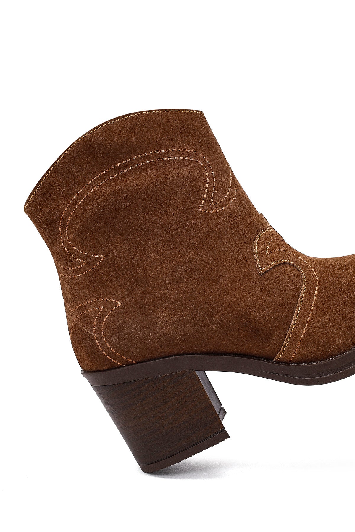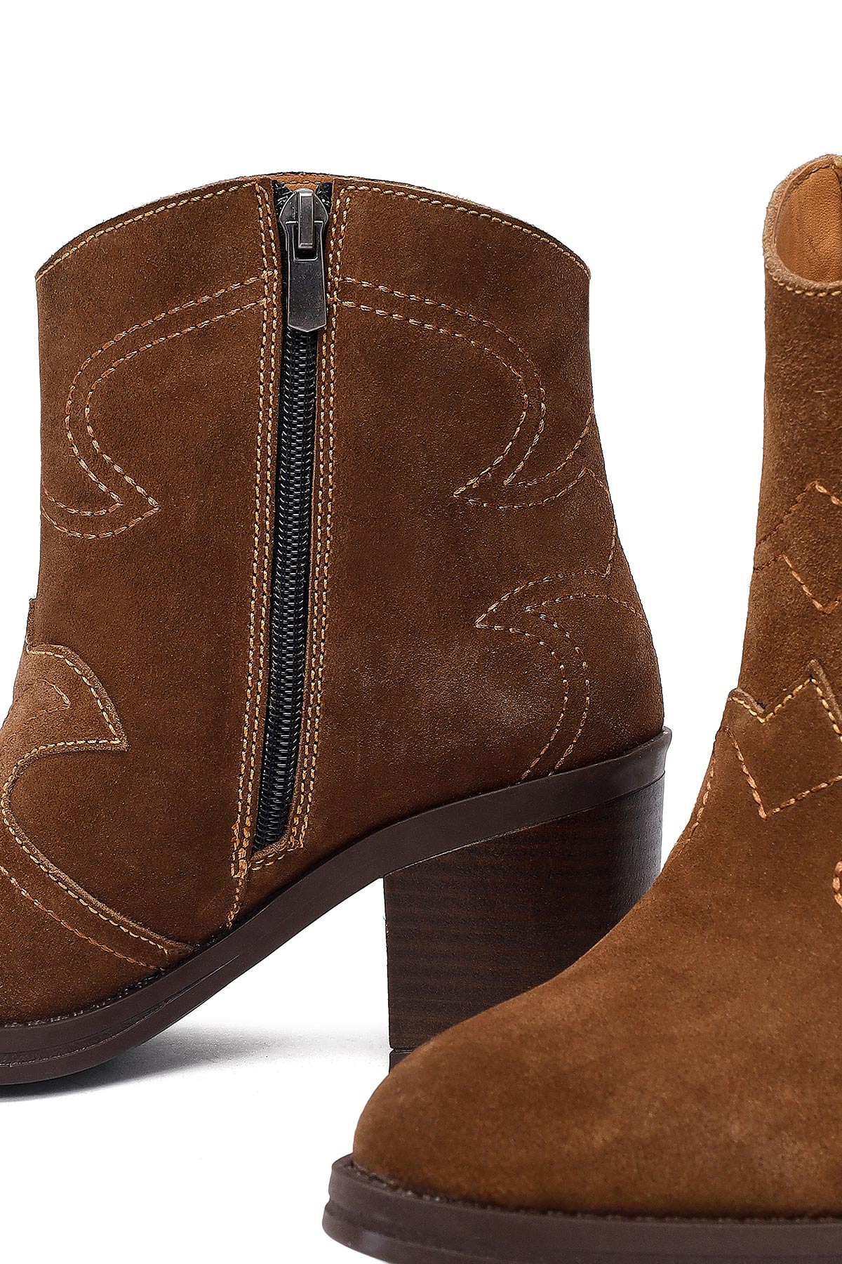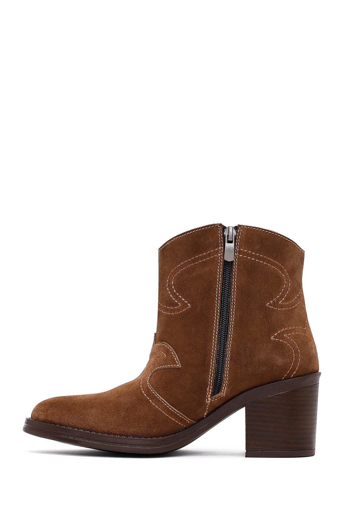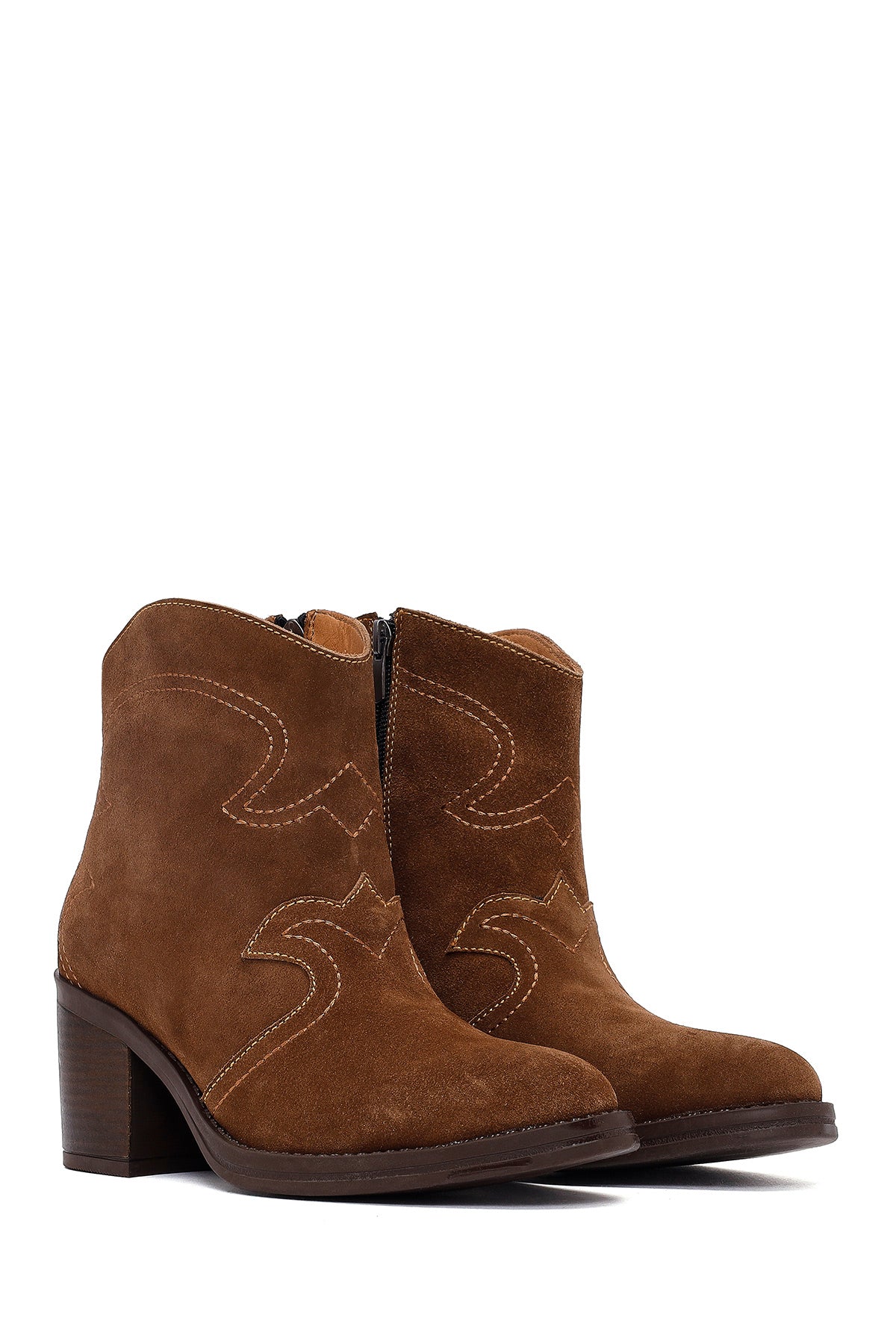 Derimod'un sonbahar koleksiyonundan, taba rengi süet deriden üretilen kovboy bot modeli, 7 cm yüksekliğindeki kalın topuğu ile modern bir siluet sunuyor. Klasik western tarzı dikişleri ve yan fermuarı ile kullanım kolaylığı sağlayan model, tekstil iç astarı ile mevsime uygun bir kullanım sunuyor. Günlük kombinlerden şık davetlere kadar geniş bir kullanım alanına sahip olan bot, jean'lerden elbiselere, eteklerden dar paçalı pantolonlara kadar pek çok kıyafetle uyum sağlıyor. Sonbahar ve kış mevsimlerinde tercih edilebilir. Ürün kodu: 25AFD221210