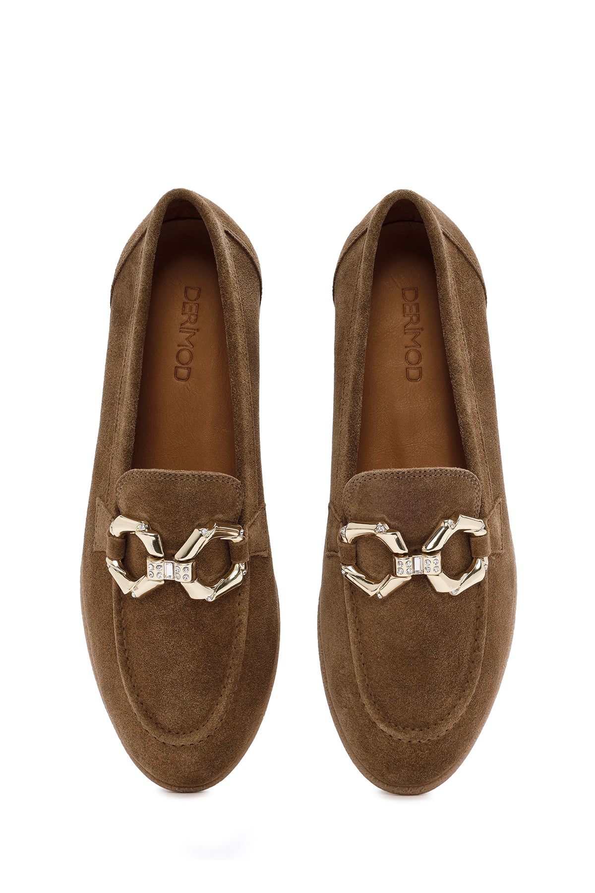 Kadın Taba Süet Deri Maskülen Loafer