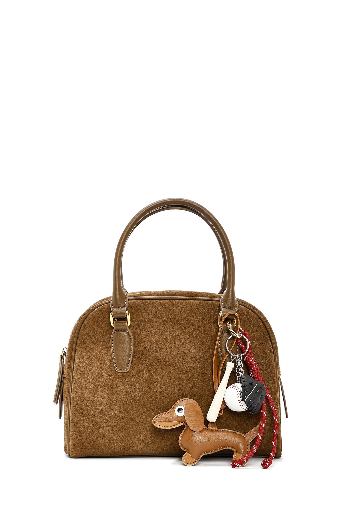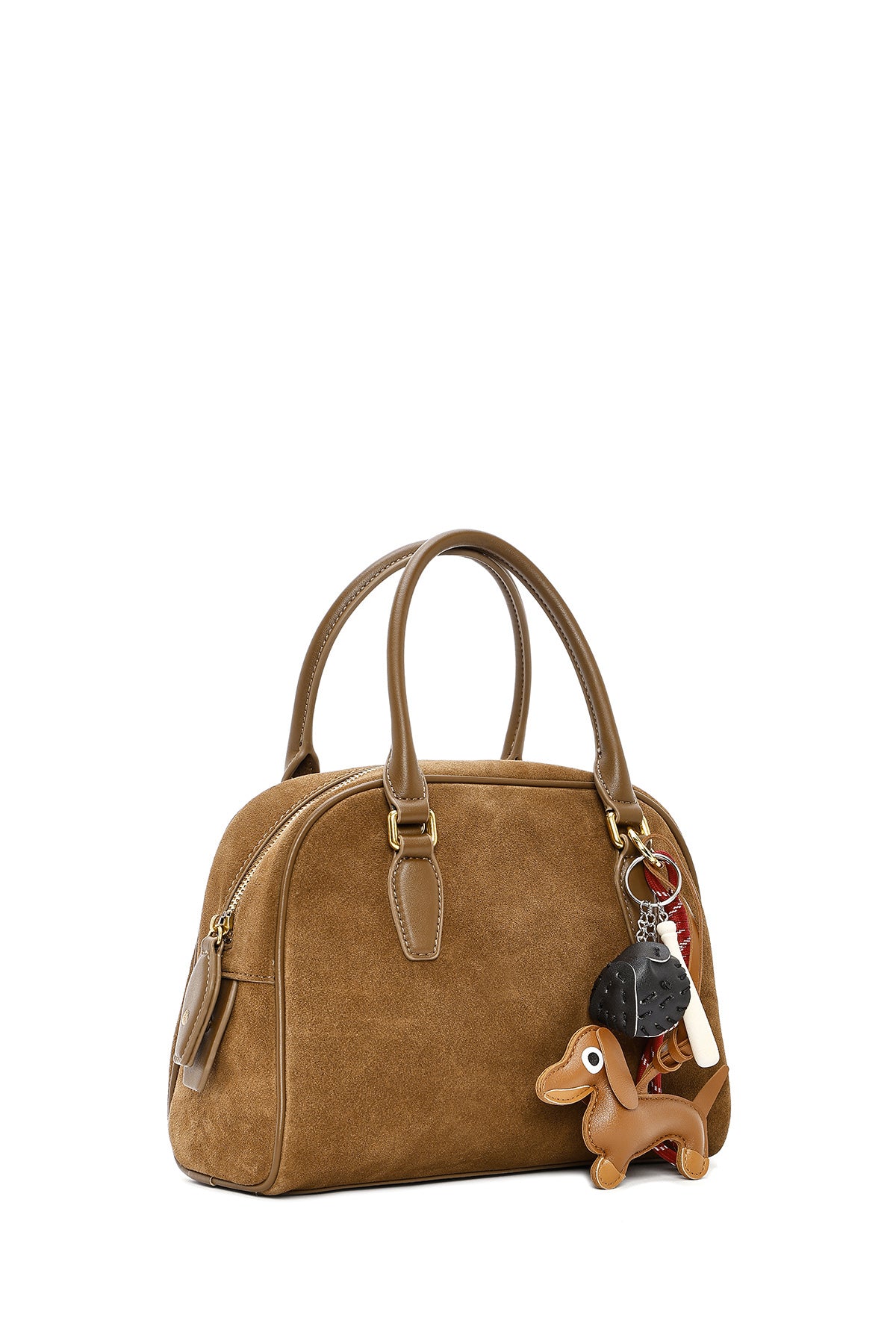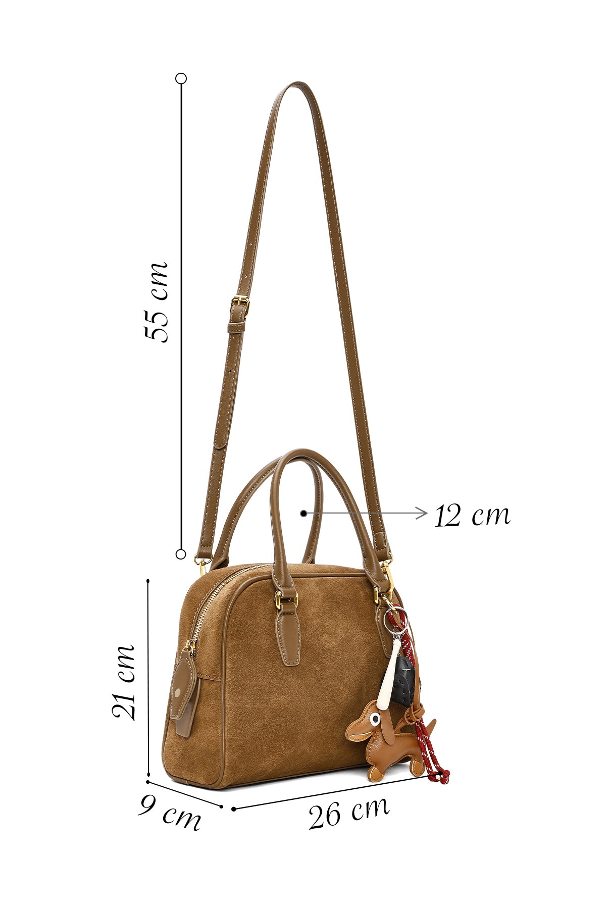 Kadın Taba Uzun Askılı Aksesuarlı Süet Deri Kol Çantası