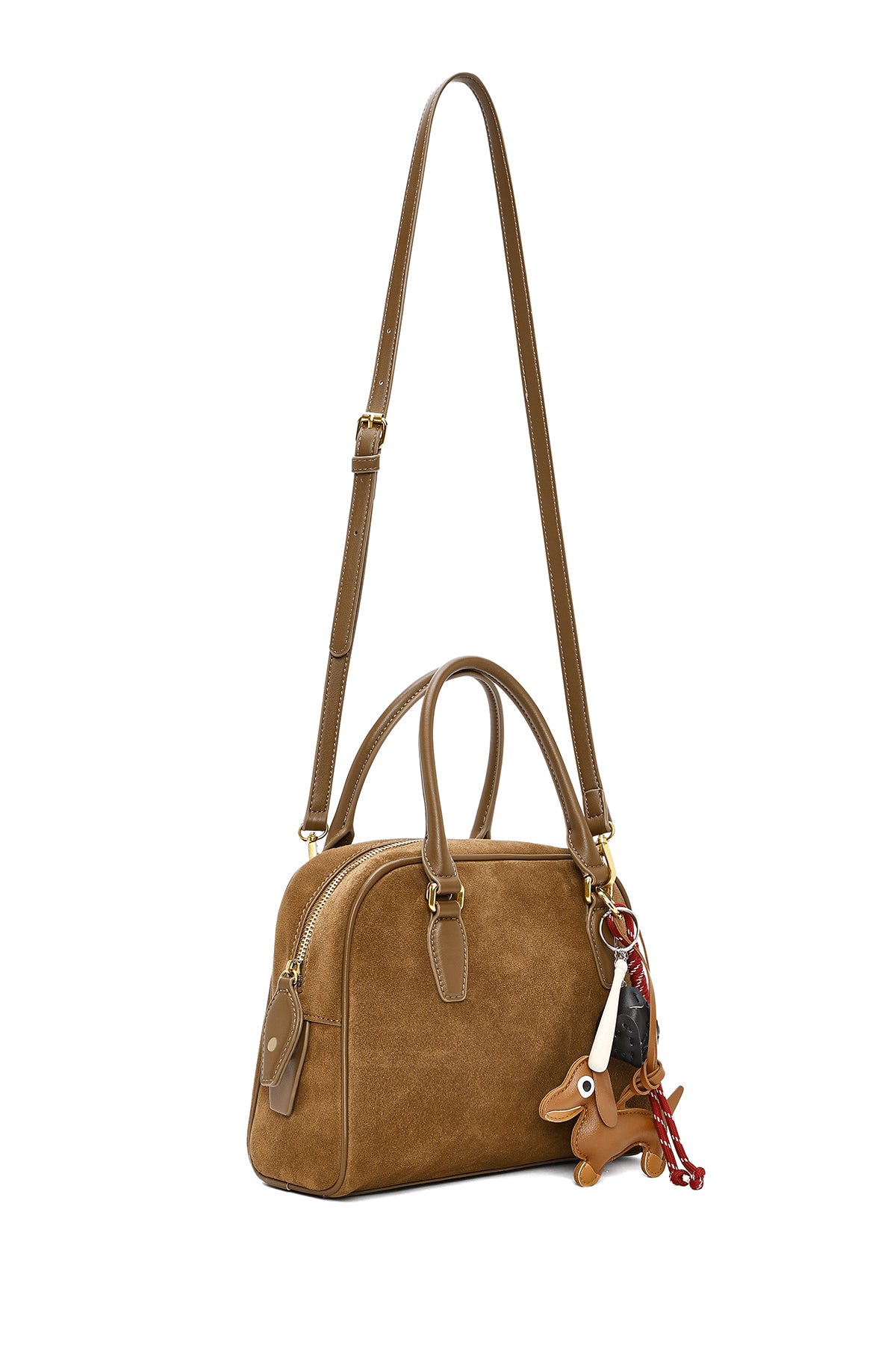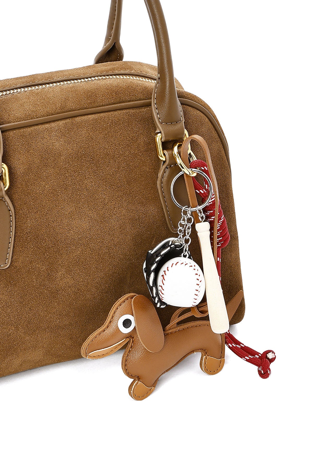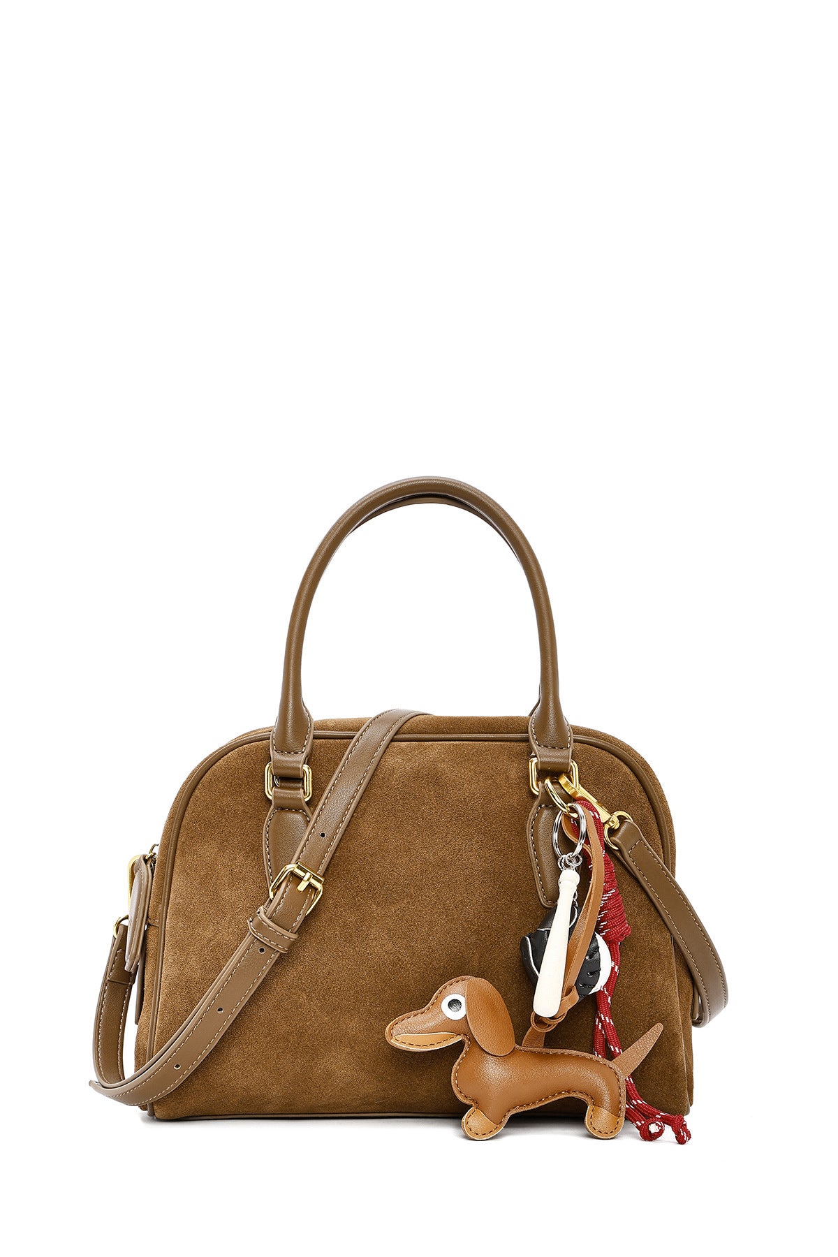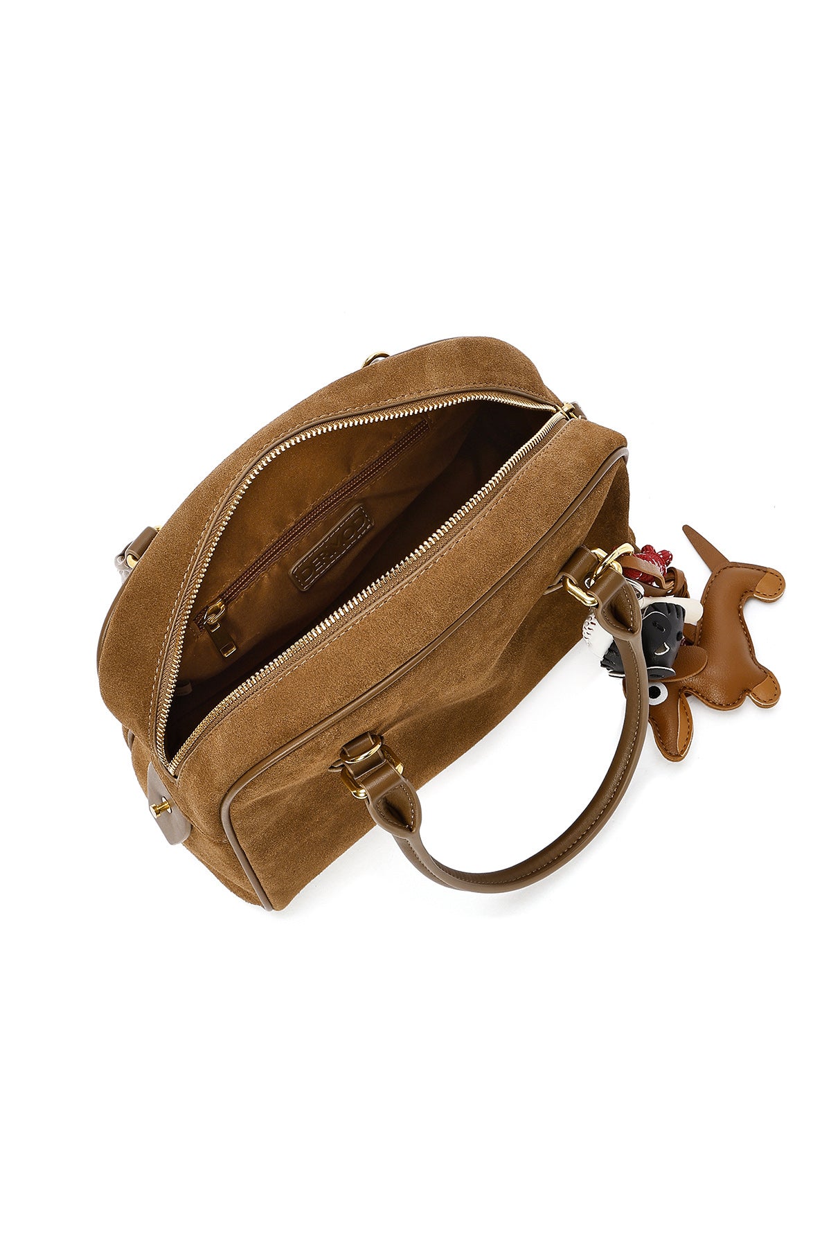 Kadın Taba Uzun Askılı Aksesuarlı Süet Deri Kol Çantası