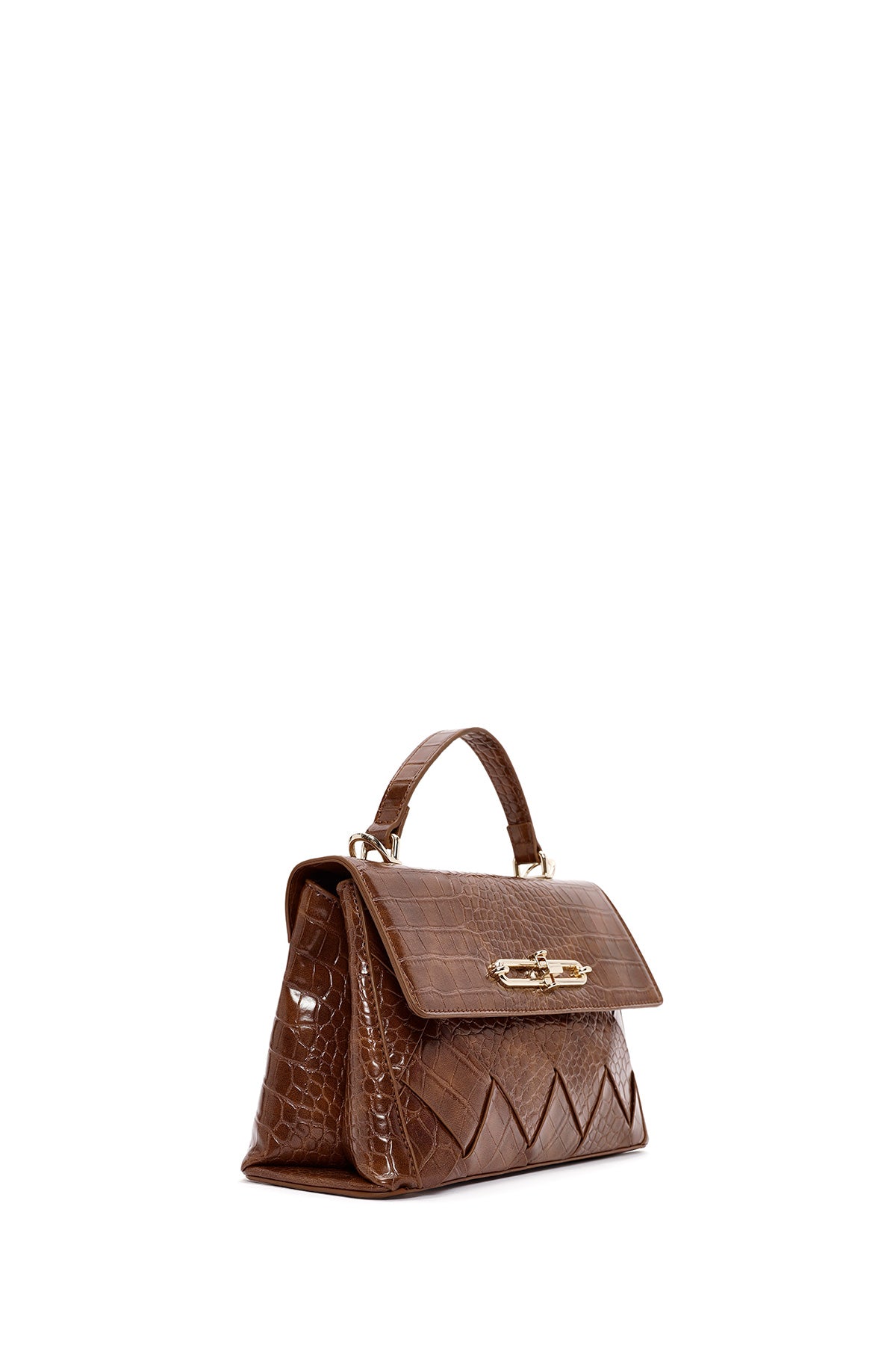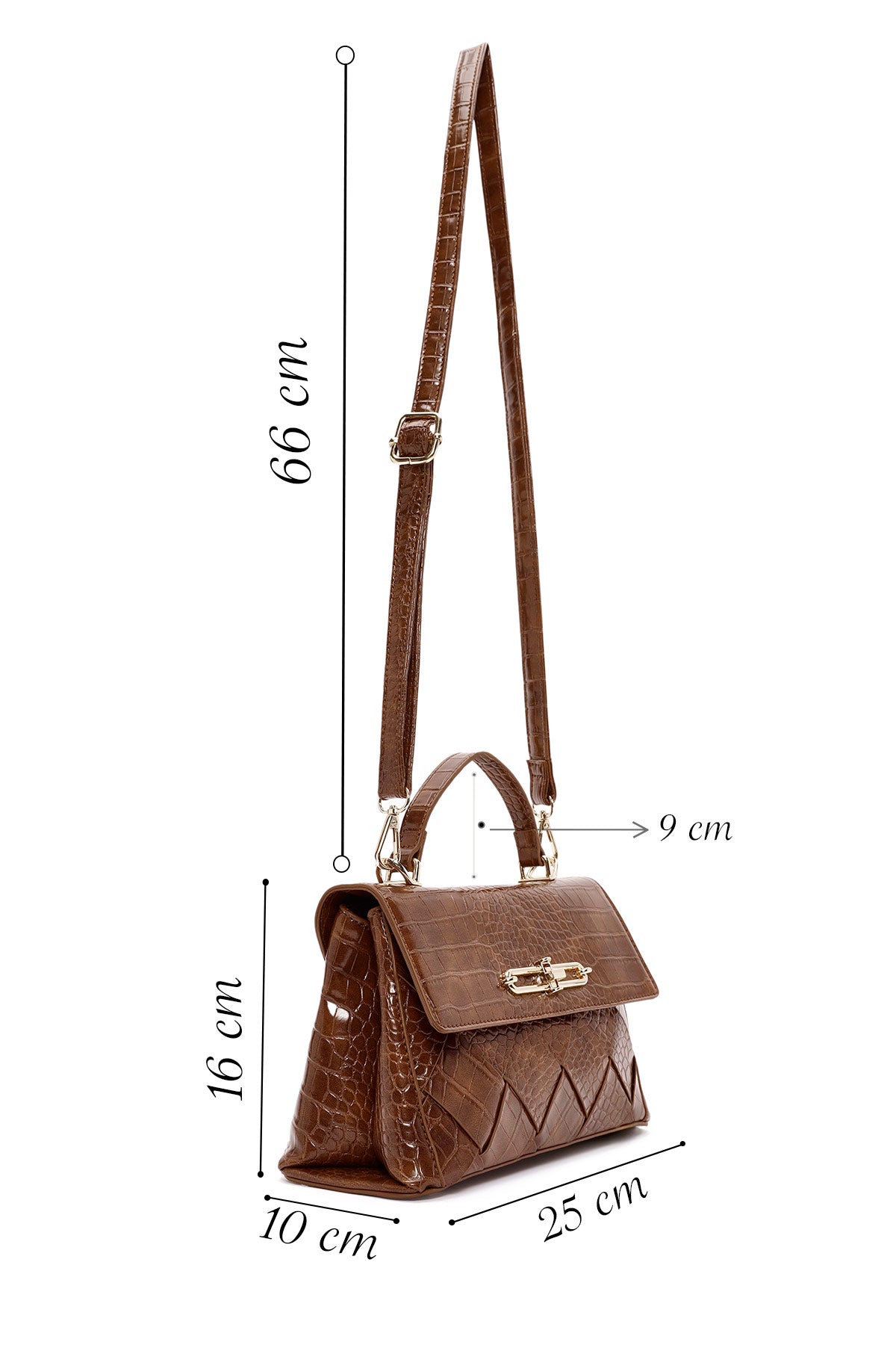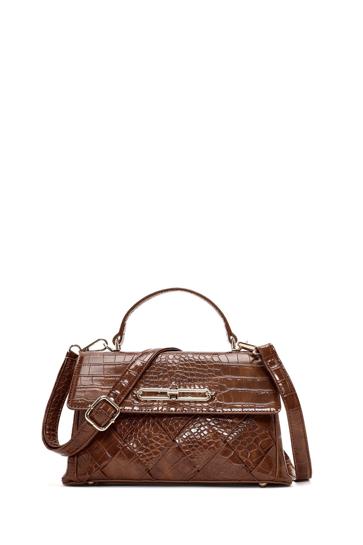 Kadın Taba Uzun Askılı Kroko Desenli Kol Çantası