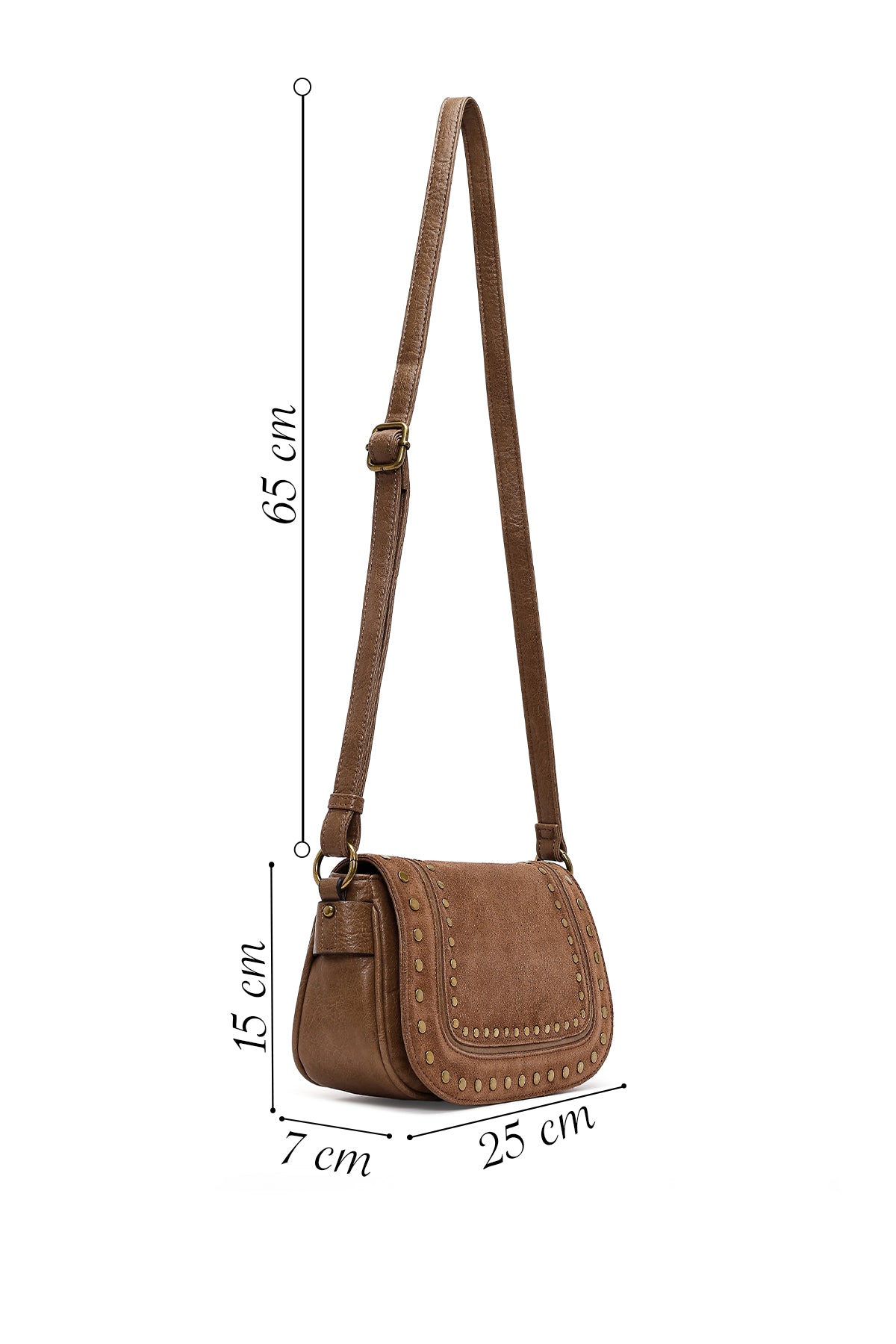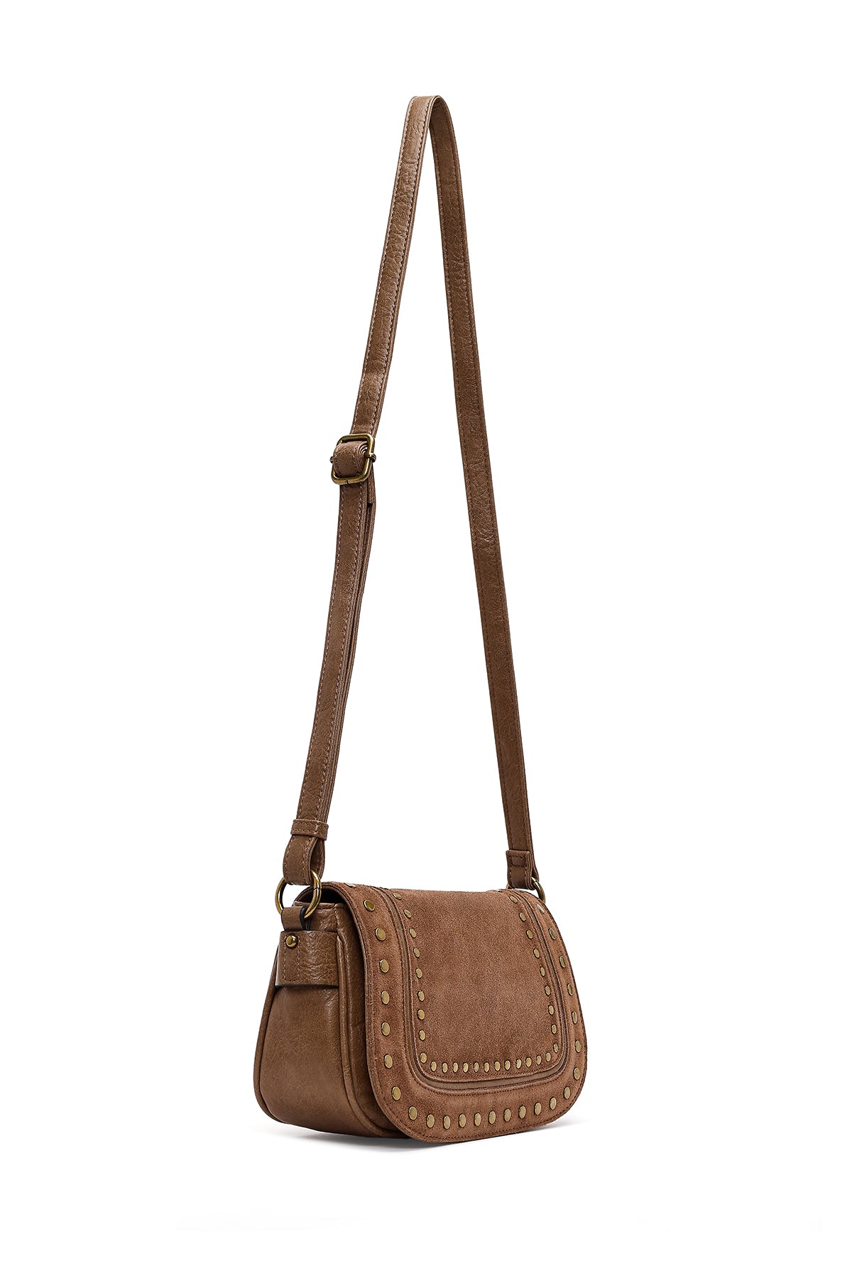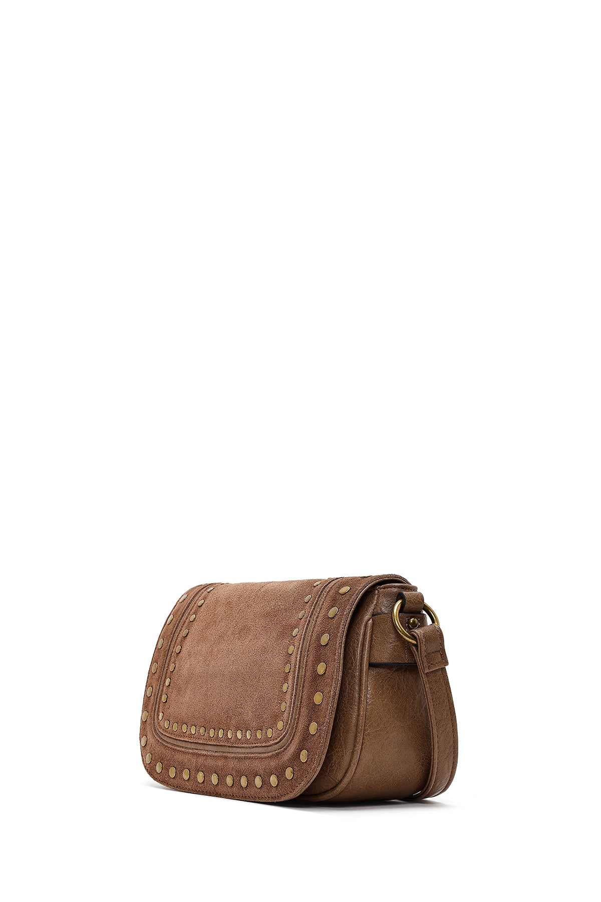 Kadın Taba Uzun Askılı Zımbalı Süet Çapraz Çanta