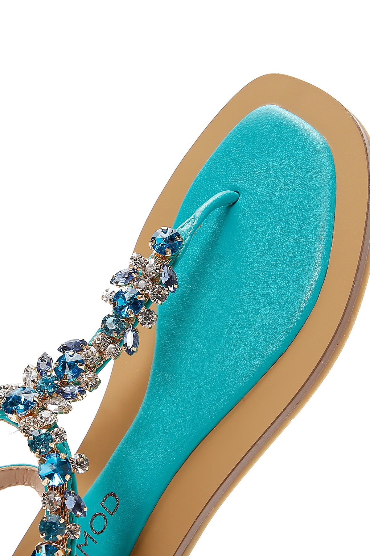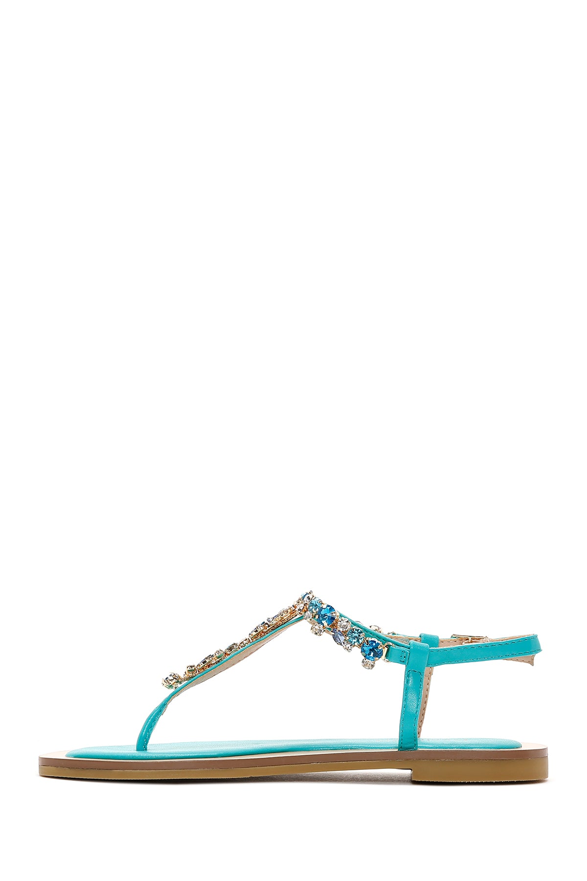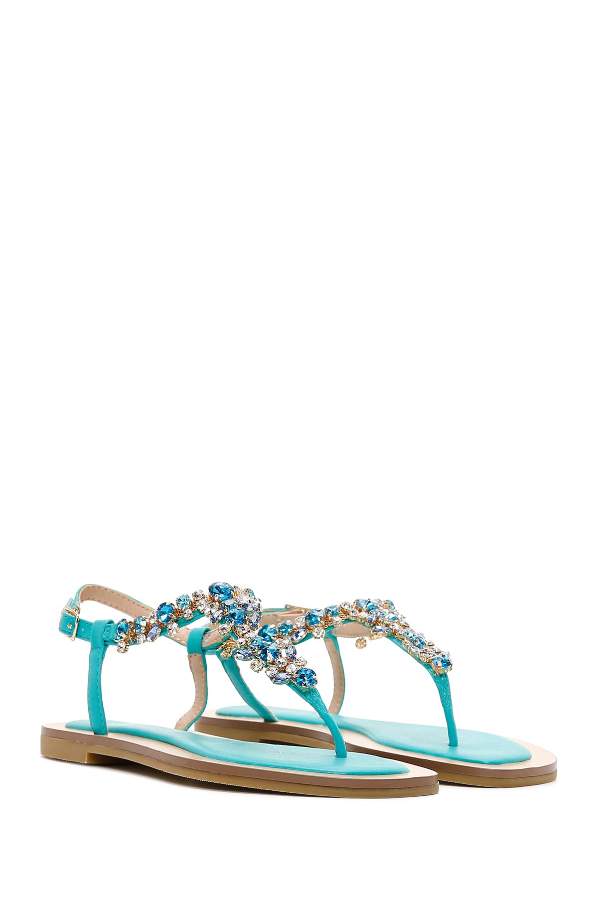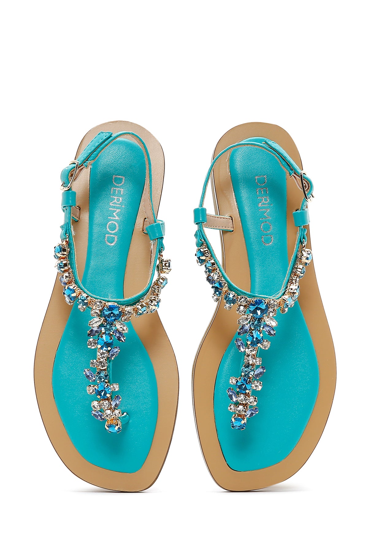Derimod’un Zarif ve Şıklığı bir arada sunan Kadın Turkuaz Taşlı Parmak Arası Sandalet ile tarzınızı konuşturun. Ürünün kodu: 23SFD4435TS 1T