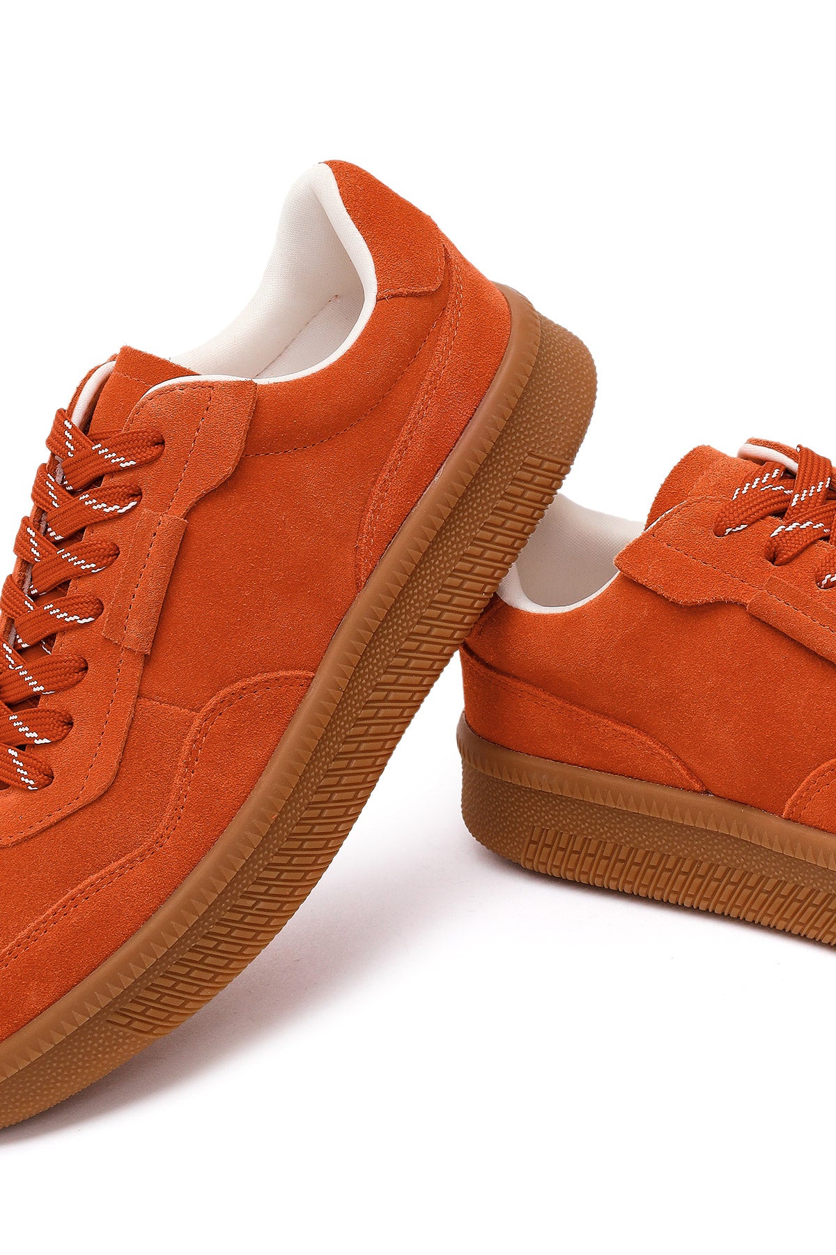 Kadın Turuncu Bağcıklı Kalın Tabanlı Süet Deri Sneaker