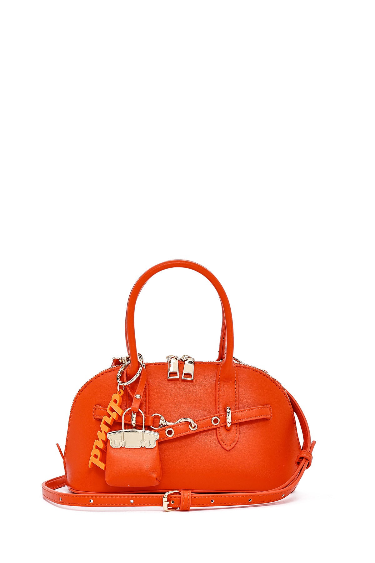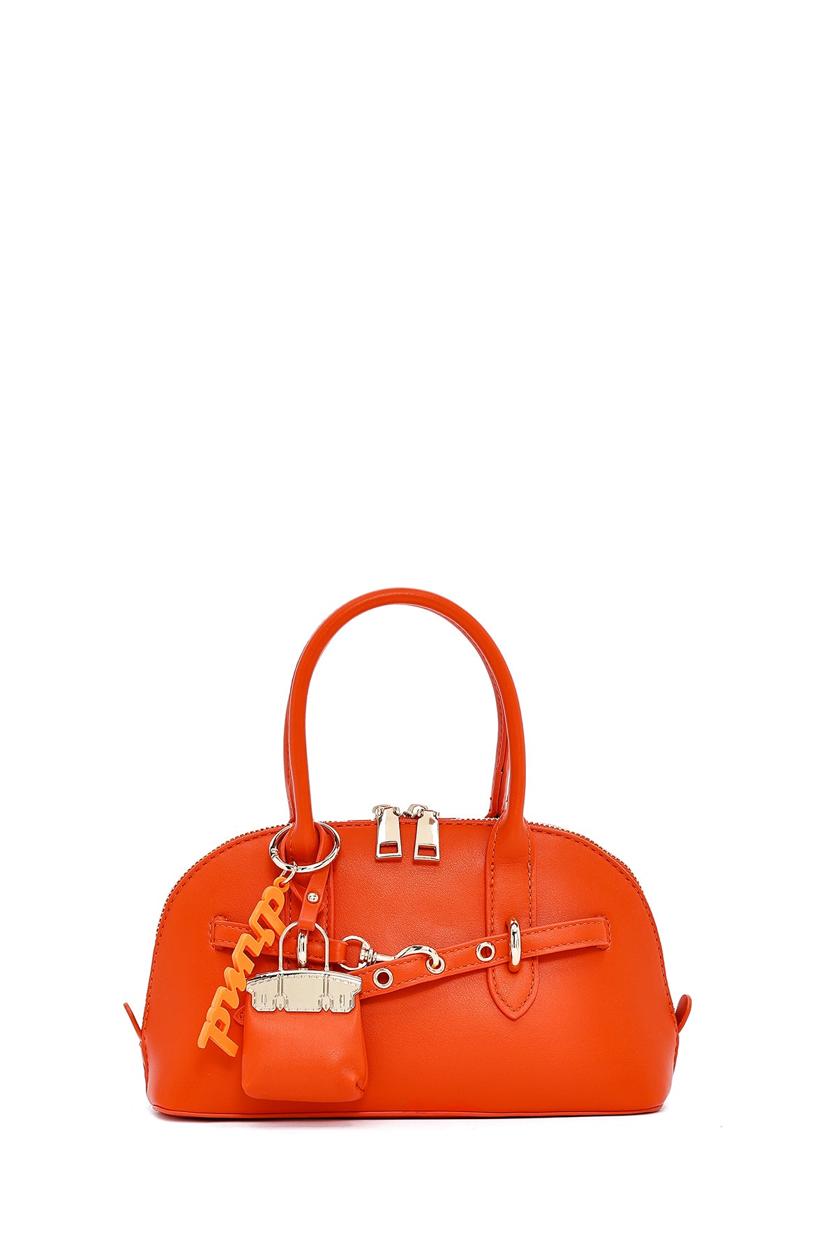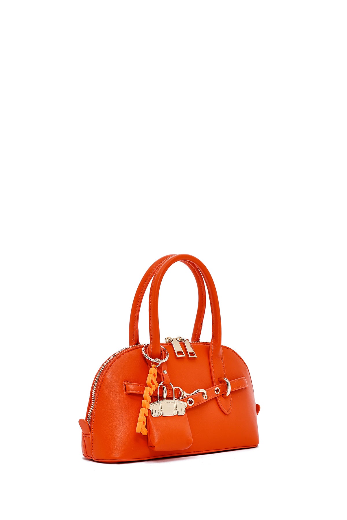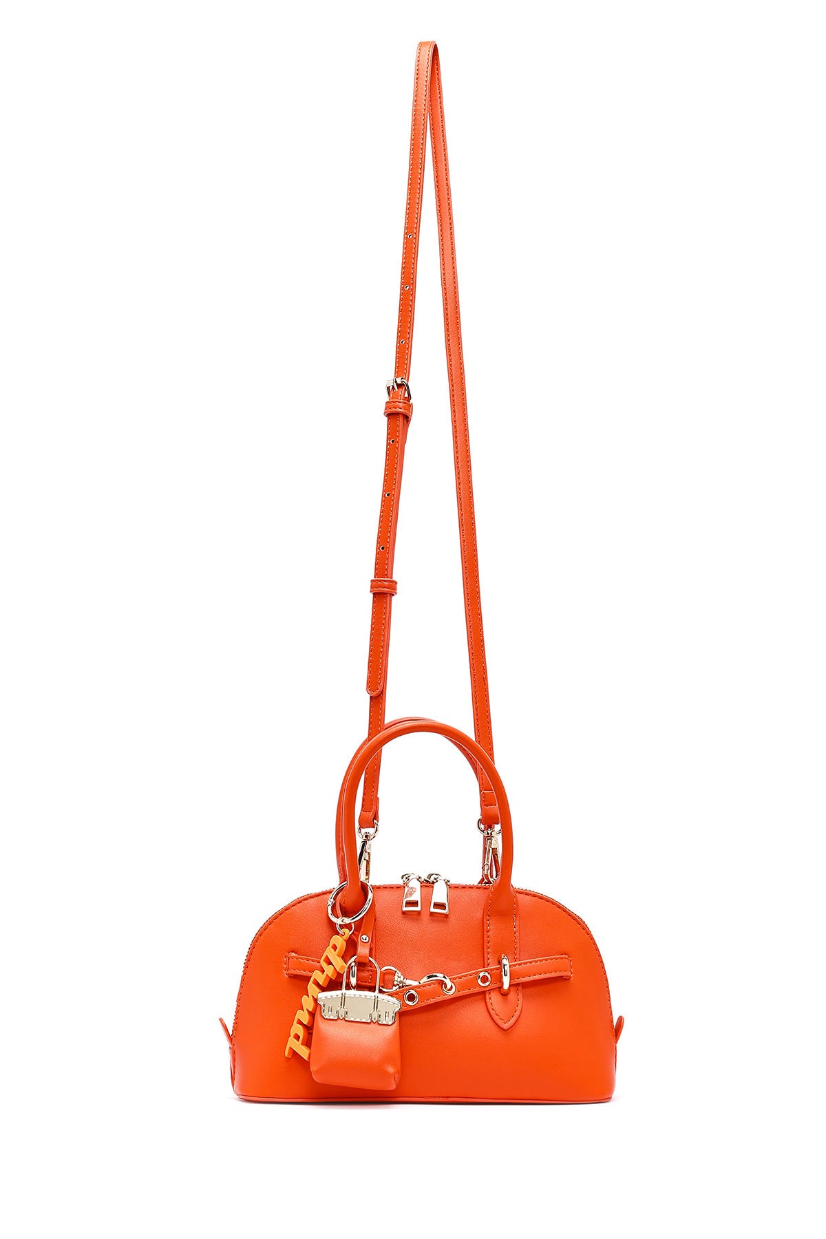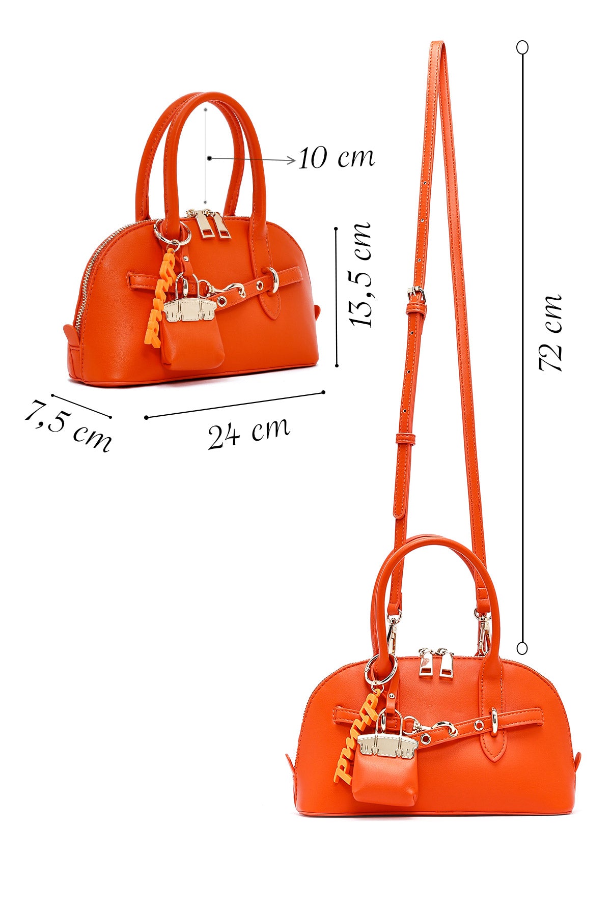 Kadın Turuncu Uzun Askılı Aksesuarlı Mini Kol Çantası