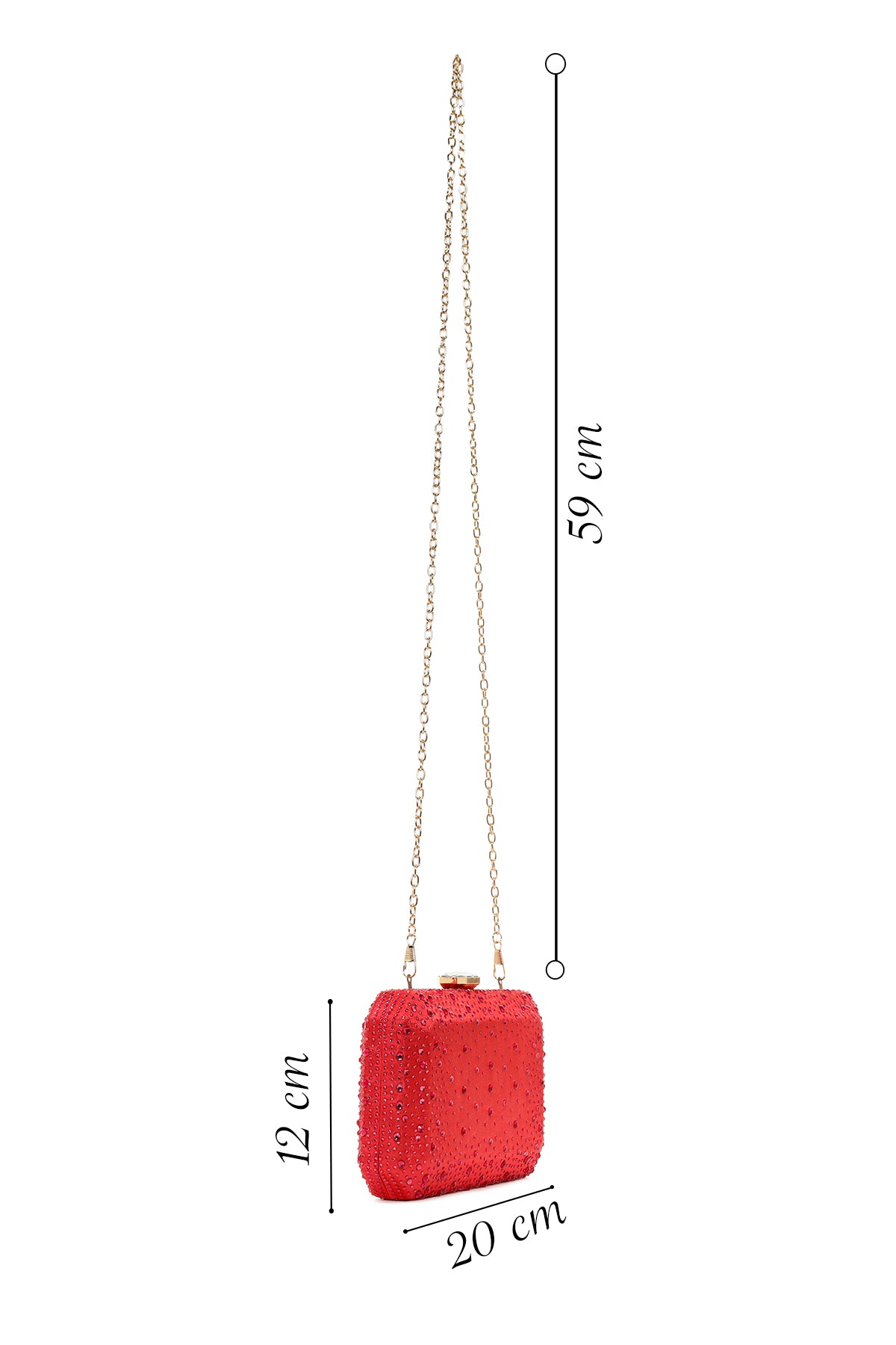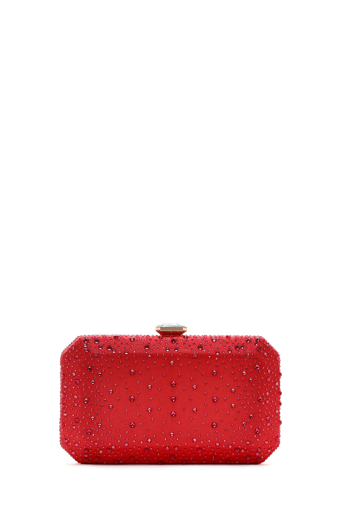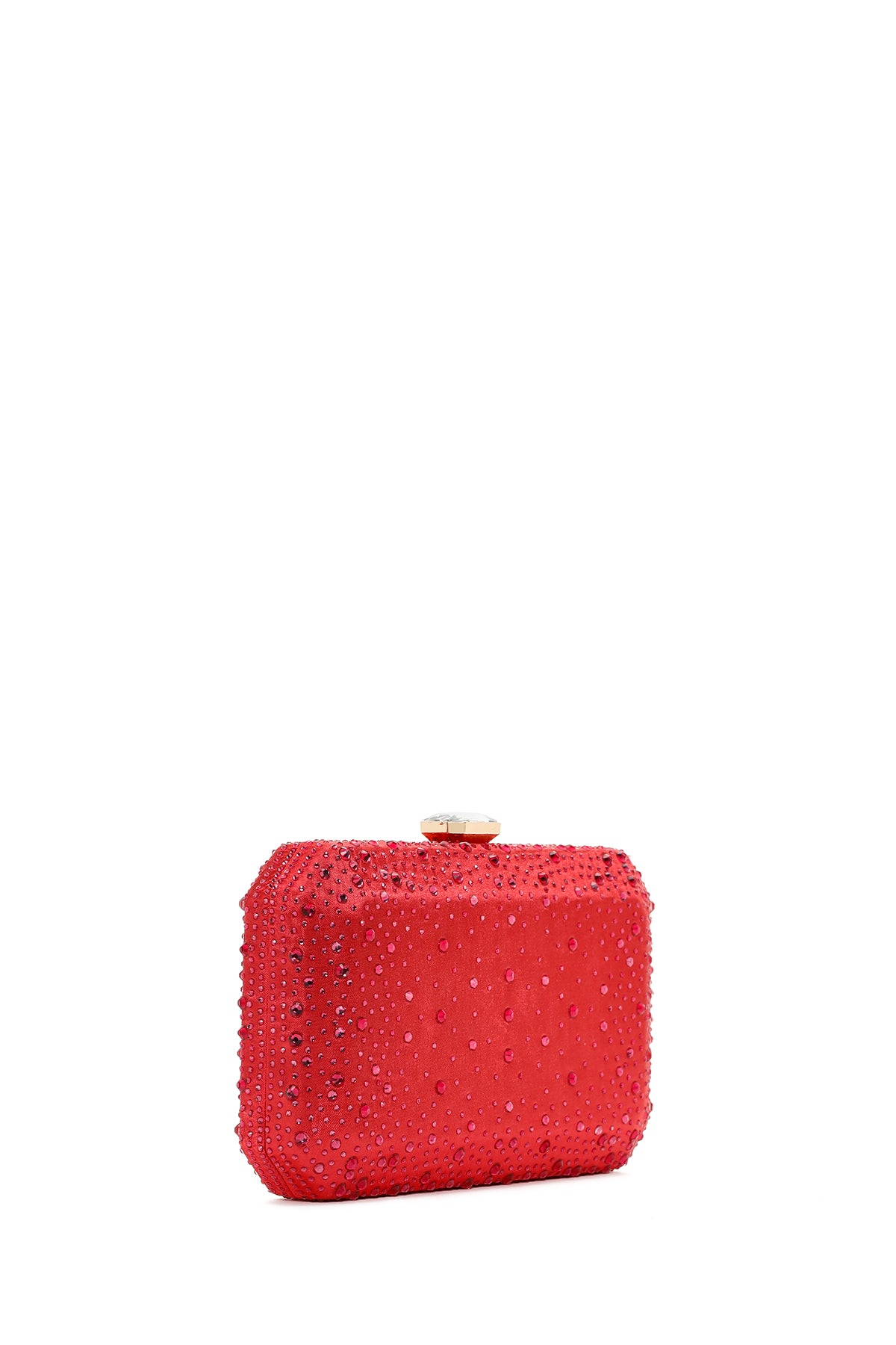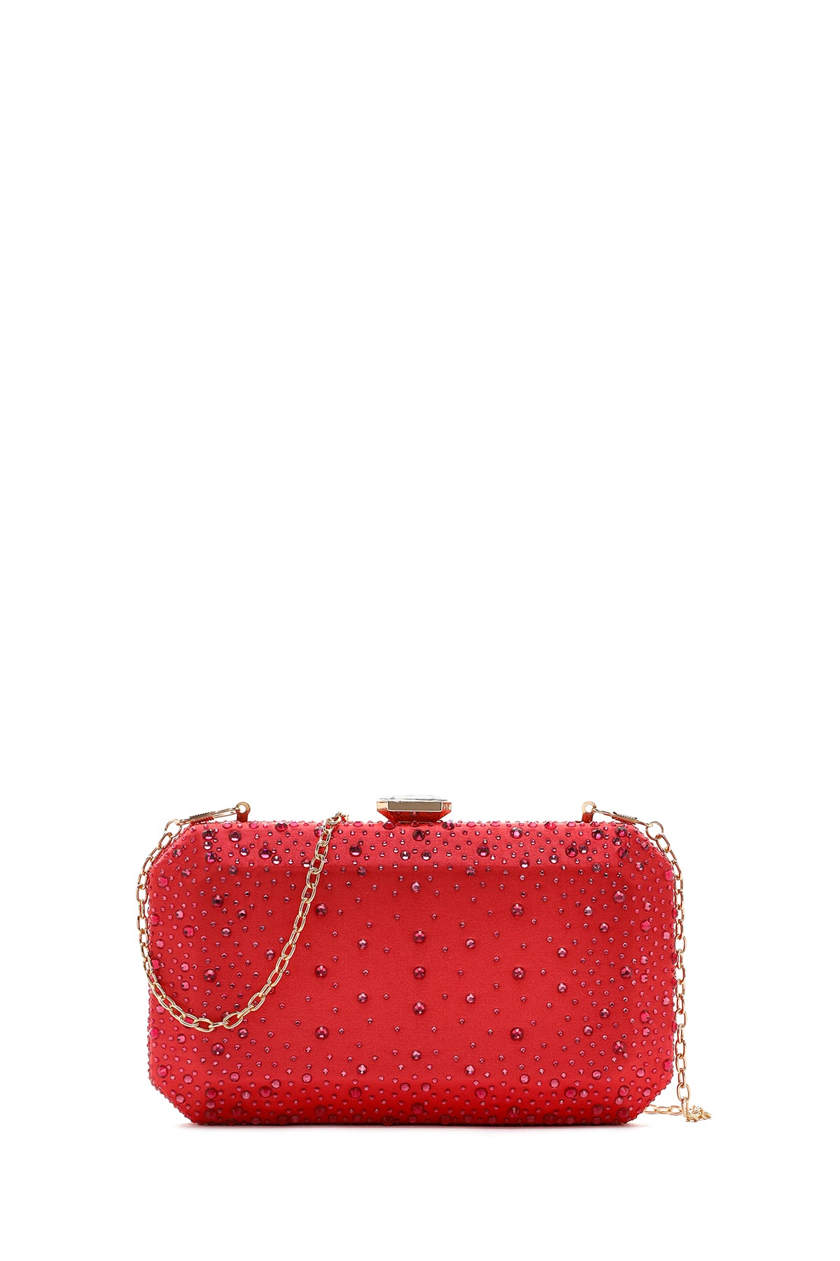 Kadın Turuncu Uzun Zincir Askılı Taşlı Portföy Çanta