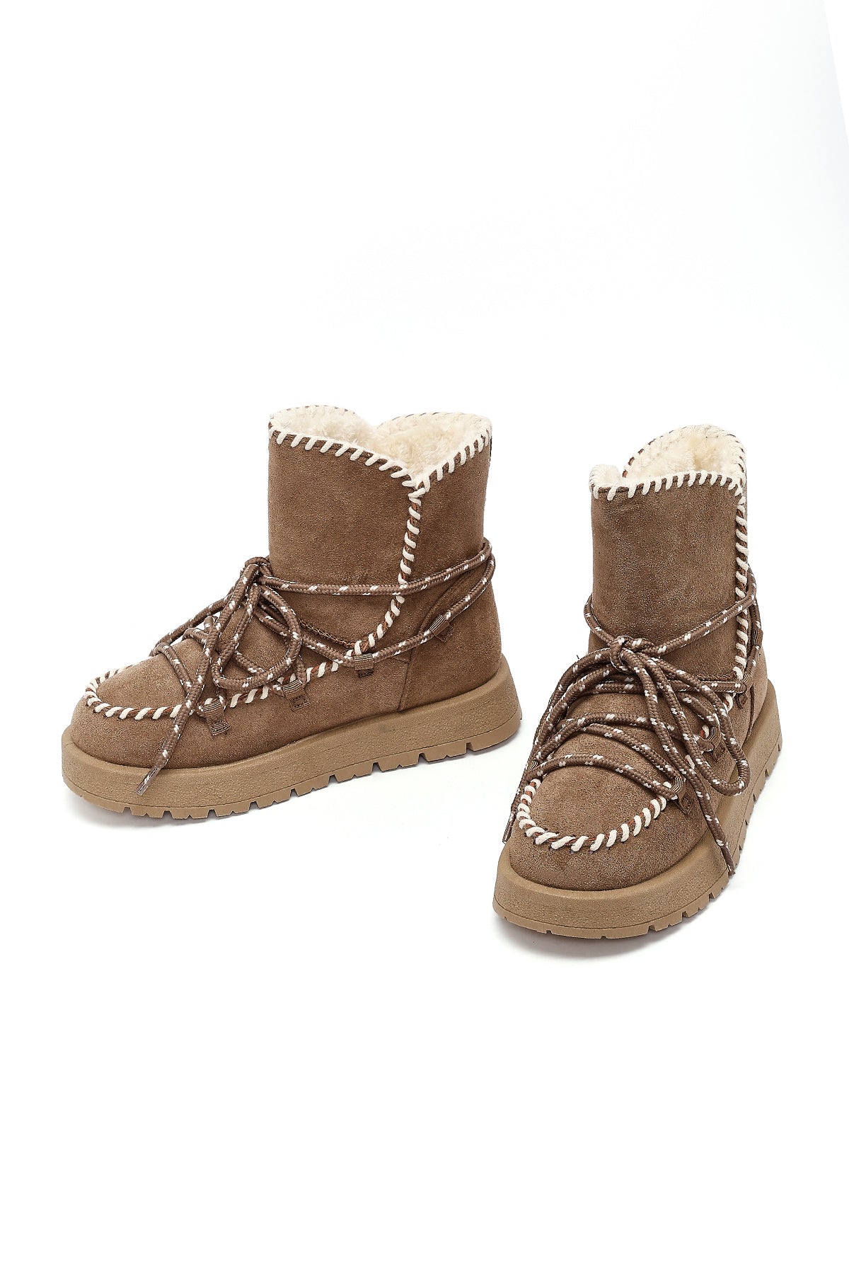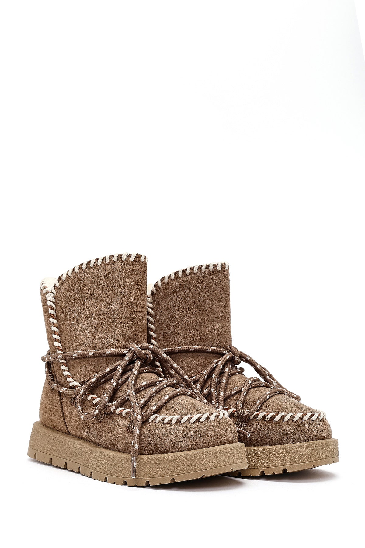 Kadın Vizon Bağcıklı Kalın Tabanlı Süet Teddy Bot