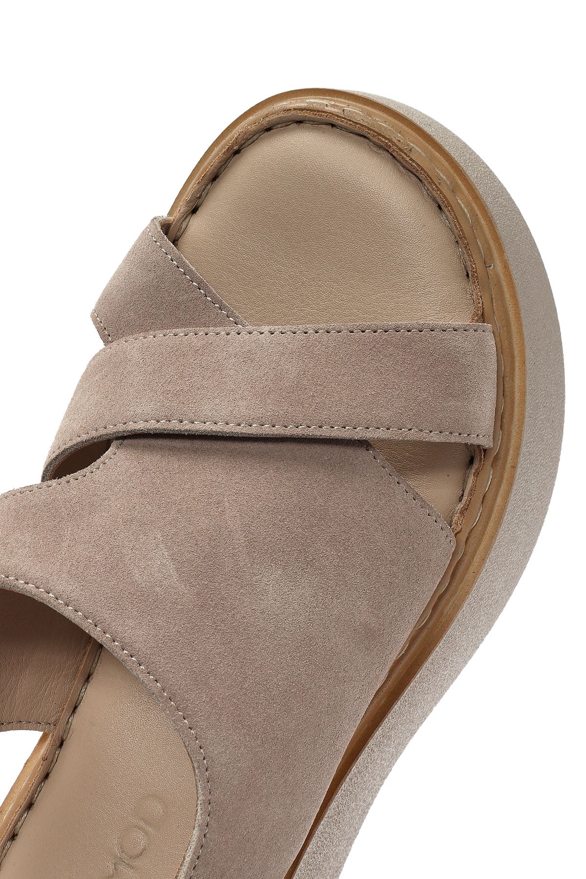 Derimod’un Zarifliği ve Şıklığı bir arada sunan Kadın Vizon Bilekten Tokalı Kalın Tabanlı Süet Deri Comfort Sandalet ile tarzınızı konuşturun. Ürünün kodu: 25SFD342310 S5