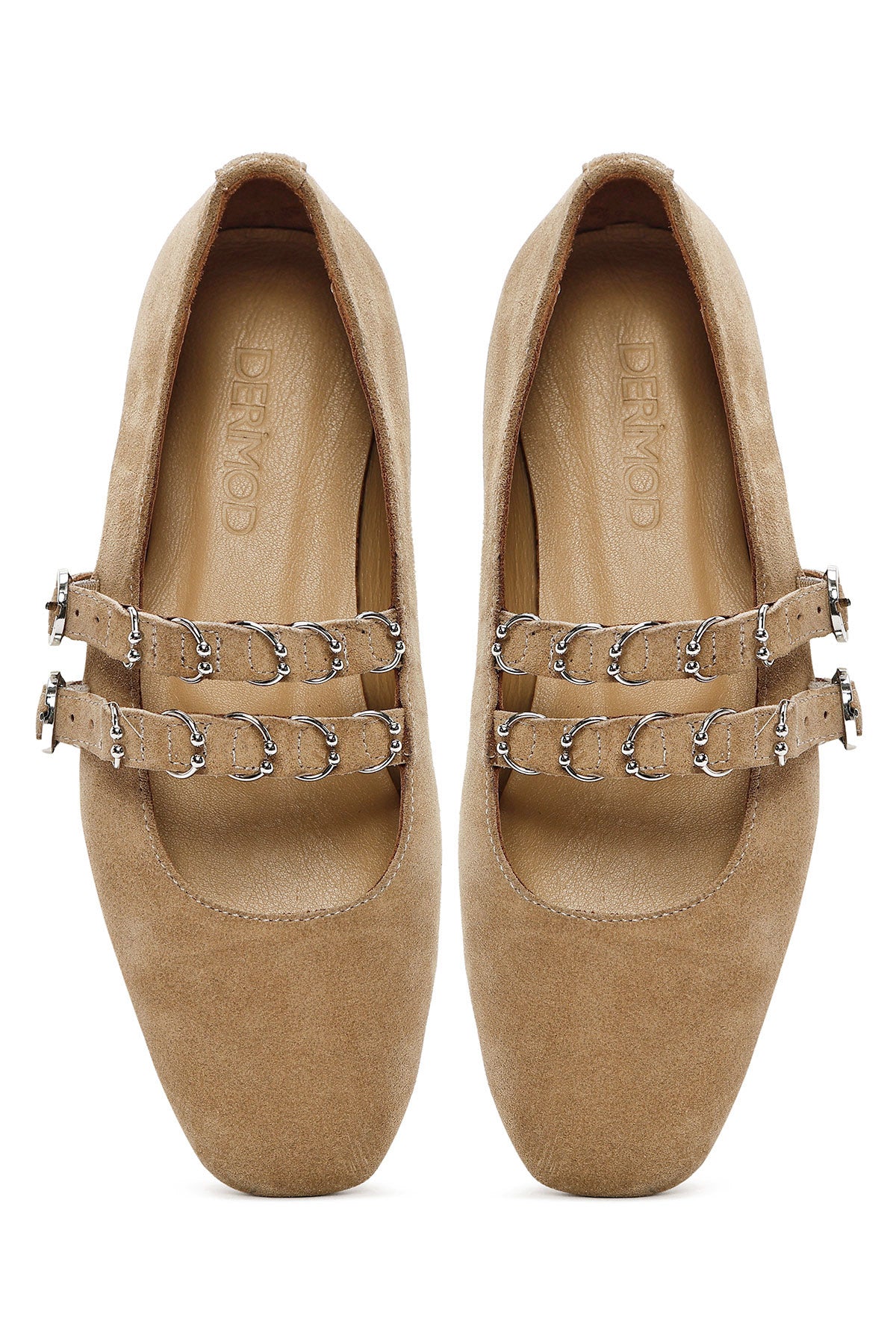 Derimod’un Zarifliği ve Şıklığı bir arada sunan Kadın Vizon Çift Tokalı Süet Deri Babet ile tarzınızı konuşturun. Ürünün kodu: 25SFD270610 X8
