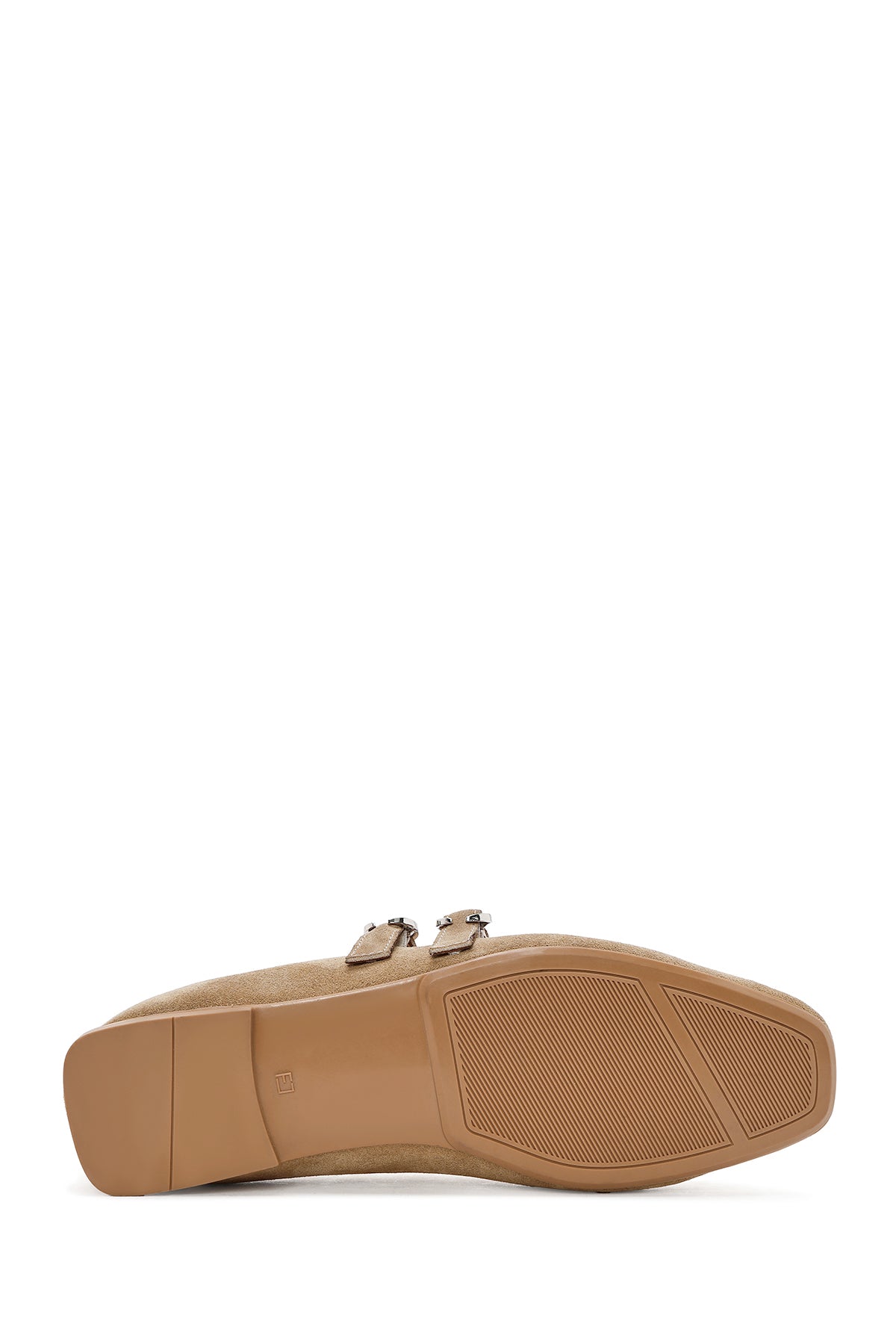 Kadın Vizon Çift Tokalı Süet Deri Babet