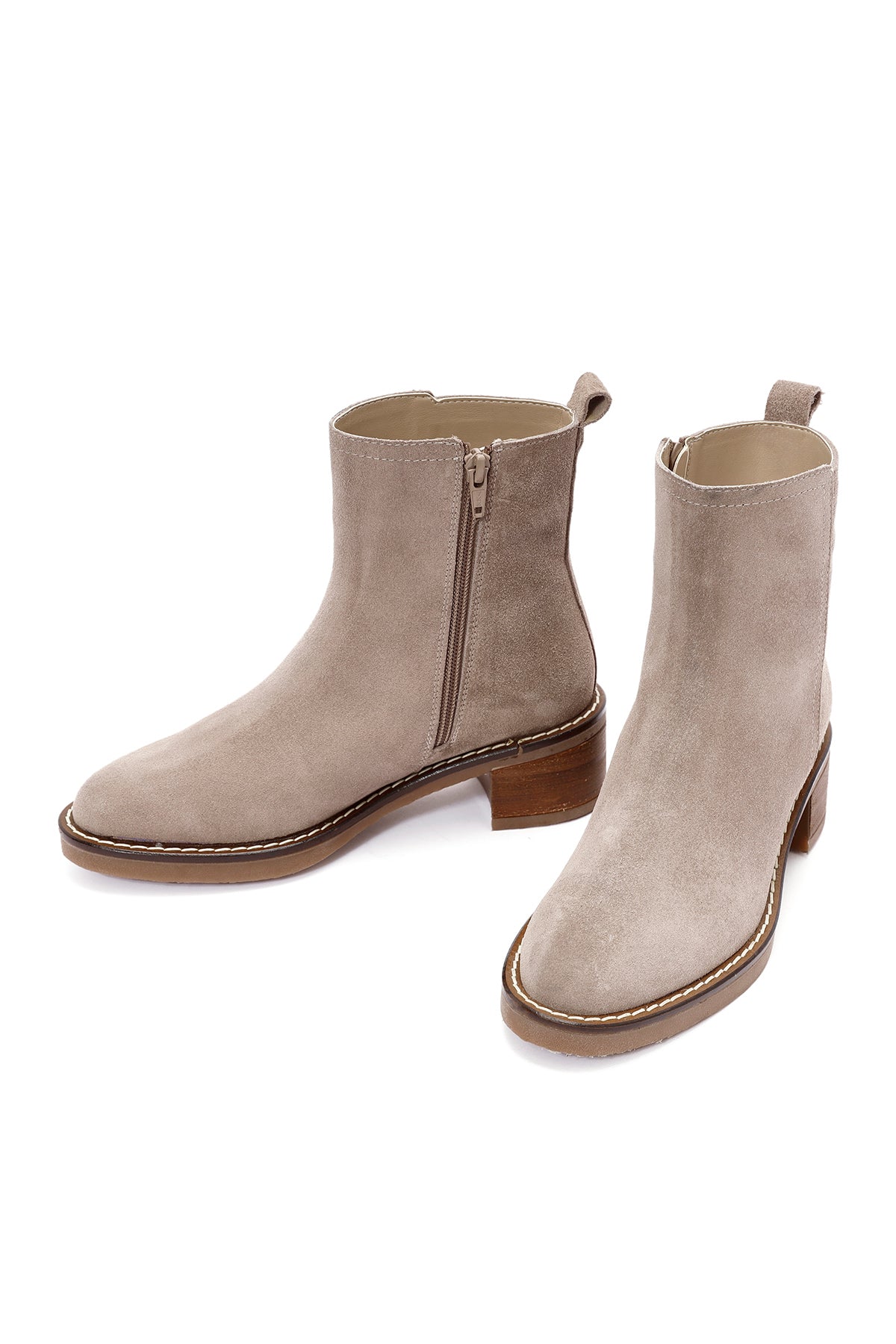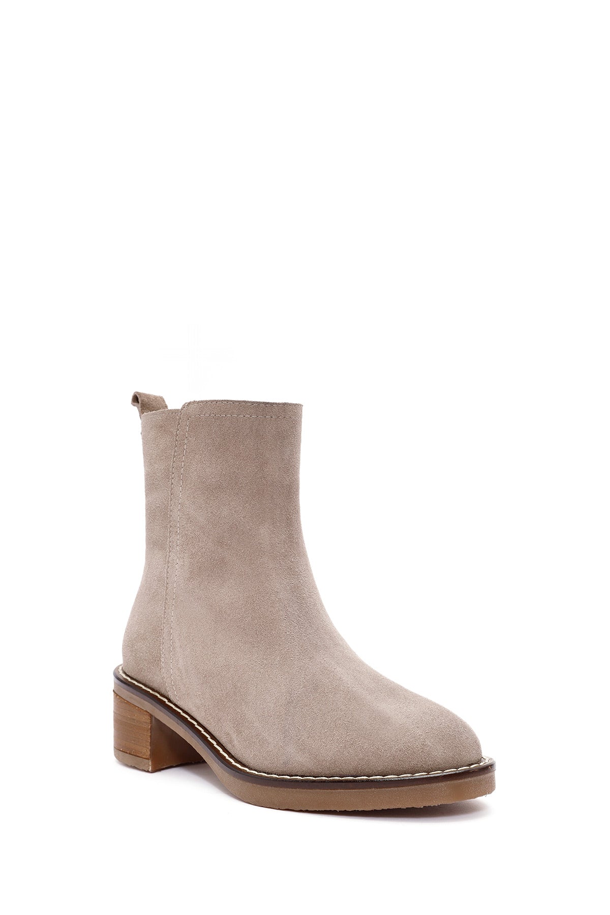 Vizon rengi süet deriden üretilen chelsea bot, modern tasarımı ve şık görünümüyle kış sezonunun vazgeçilmez parçalarından biri olarak öne çıkıyor. 6.5 cm yüksekliğindeki kalın topuğu dengeli bir duruş sağlarken, yan fermuarı kolay giyim imkanı sunuyor. Tekstil iç astarı ile mevsim şartlarına uyum sağlayan model, sonbahar ve kış aylarında hem günlük hem de smart casual kombinlerde tercih edilebilir. Özellikle pantolon ve eteklerle mükemmel uyum sağlayan bot, şehir yaşamının dinamik temposuna eşlik ediyor. Ürün kodu: 24WFD162710