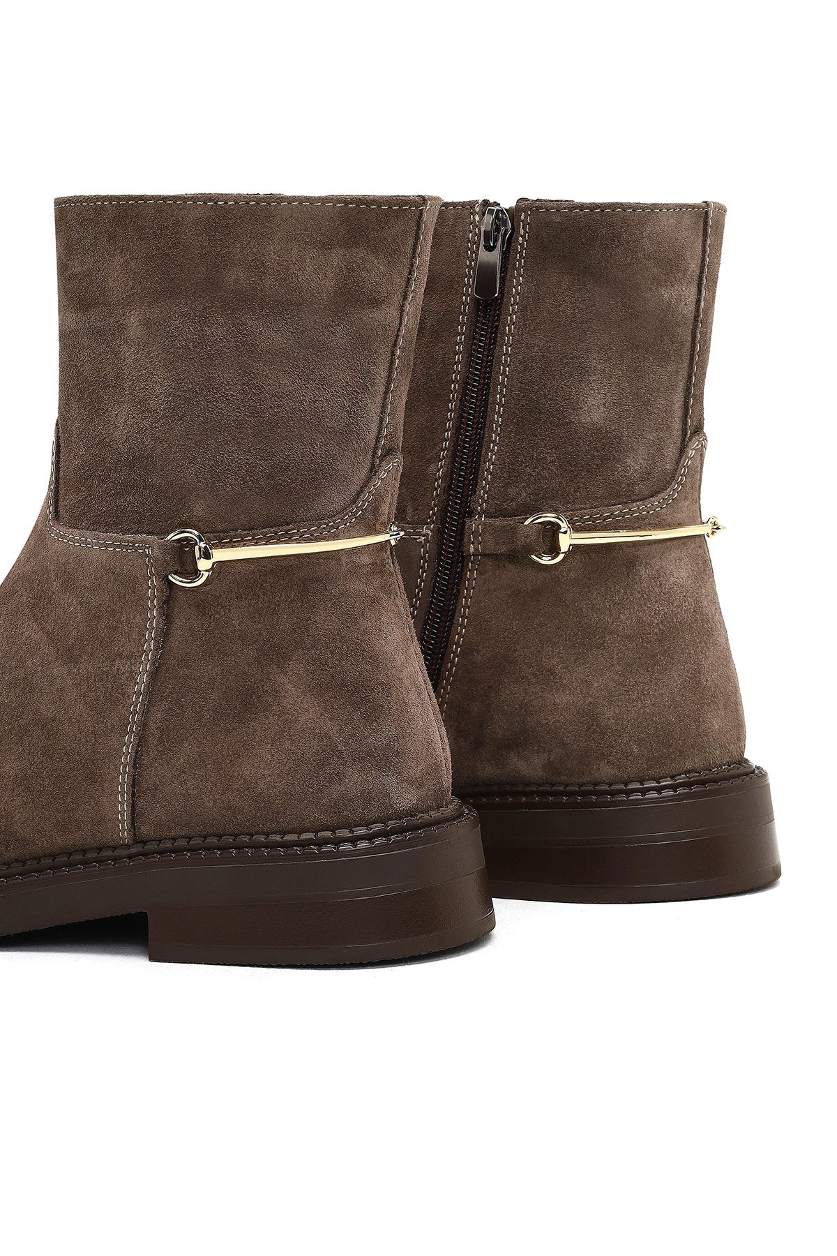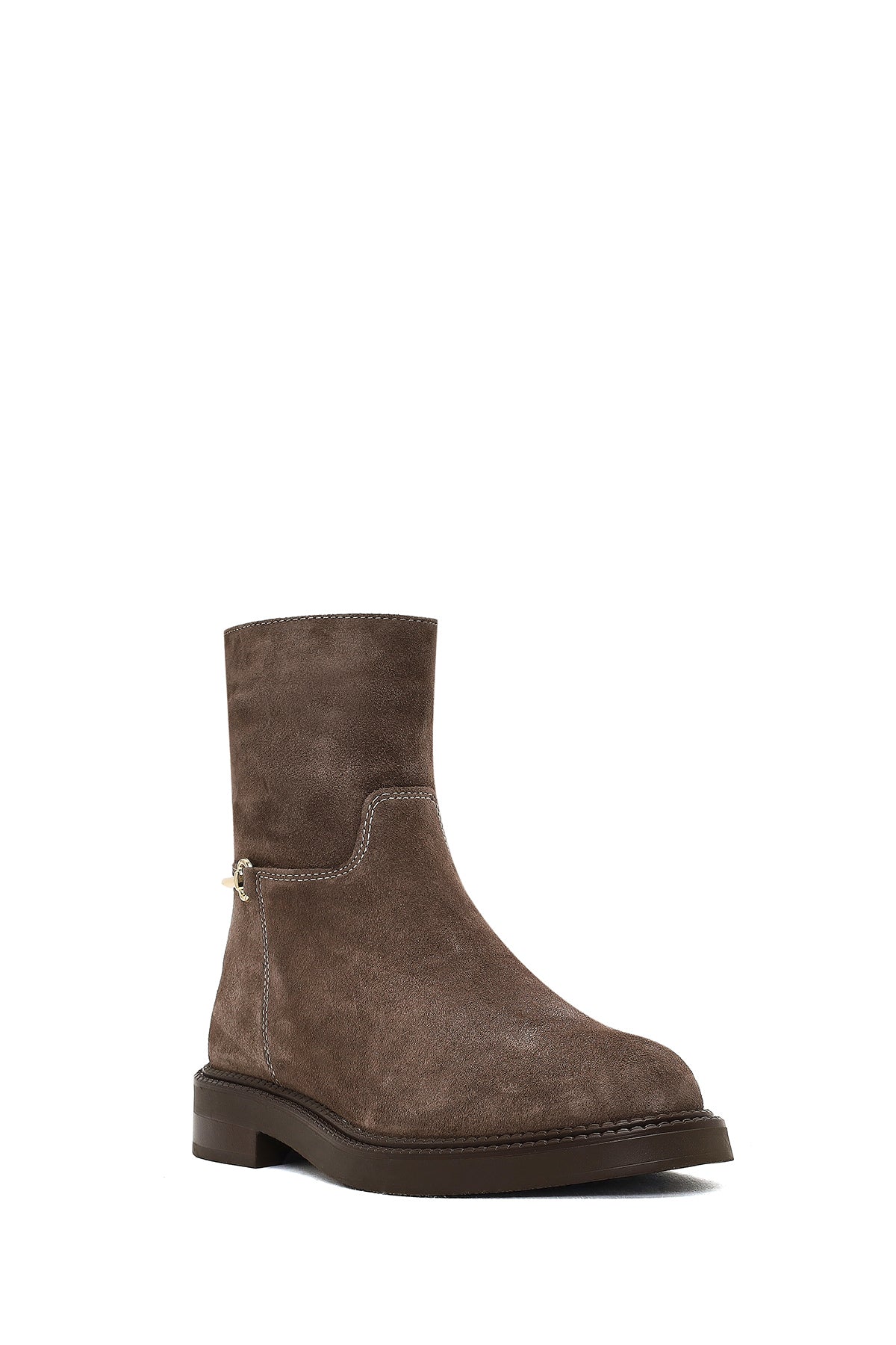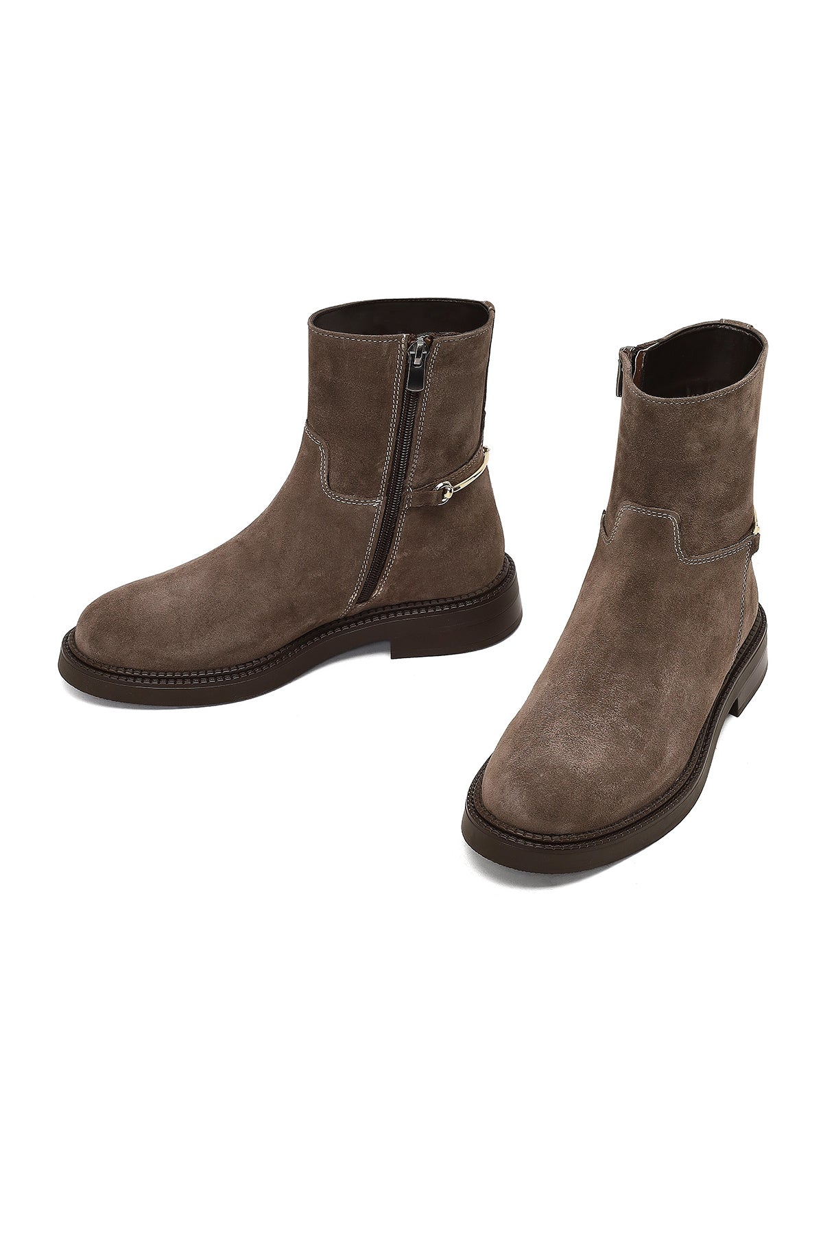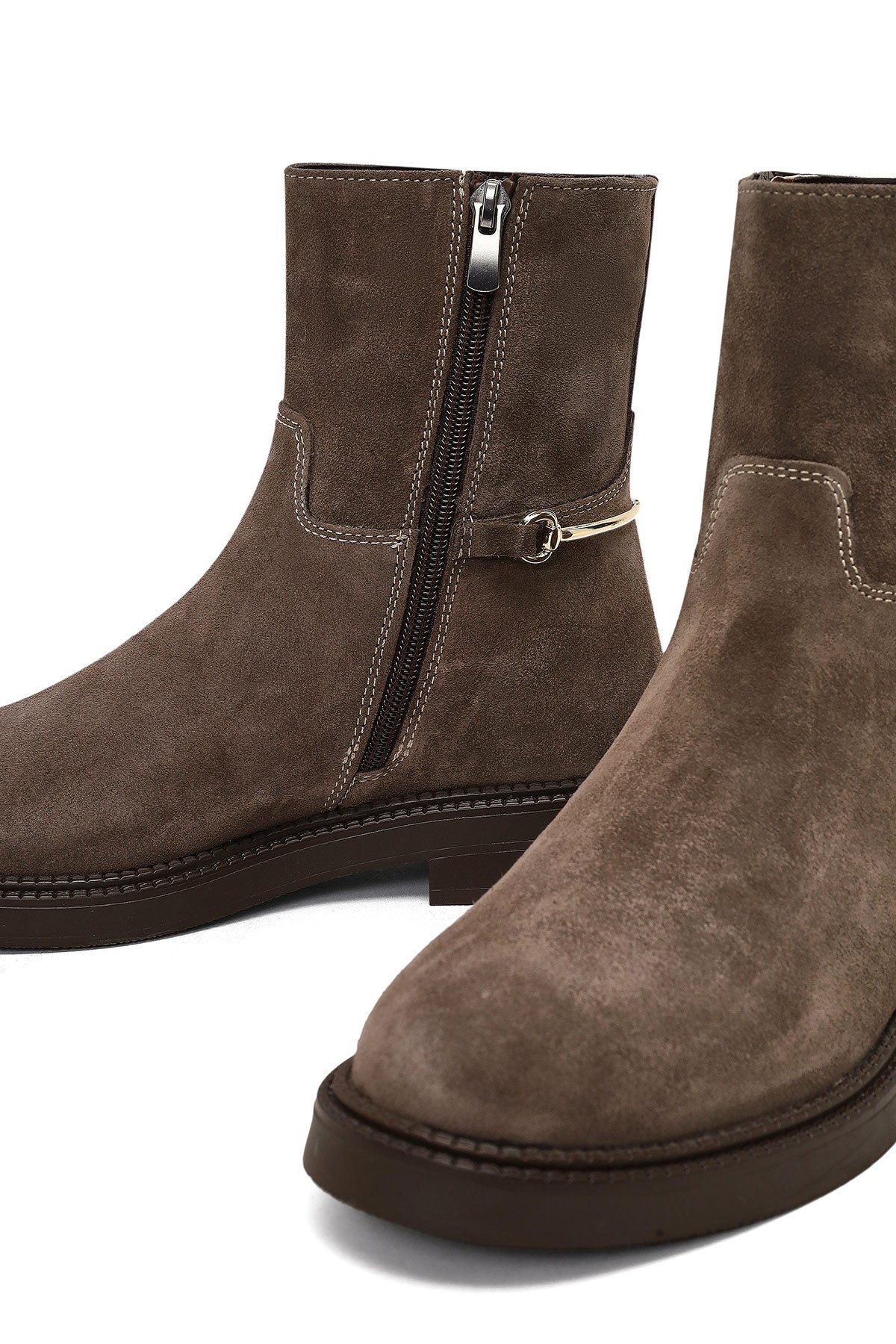 Derimod'un kış koleksiyonundan, vizon rengi süet deri kullanılarak tasarlanan bot modeli, 2,5 cm yüksekliğindeki topuğu ile günlük kullanıma uygun bir tasarım sunuyor. Yan fermuarı ve dekoratif toka detayı ile şık bir görünüm sergileyen model, deri iç astarı sayesinde ayağınızı sıcak tutuyor. Casual tarzı ile jean'lerden eteklere, pantolonlardan günlük elbiselere kadar geniş bir kullanım alanı sunuyor. Sonbahar ve kış mevsimlerinde günün her saatinde kullanılabilir. Ürün kodu: 25WFD512710