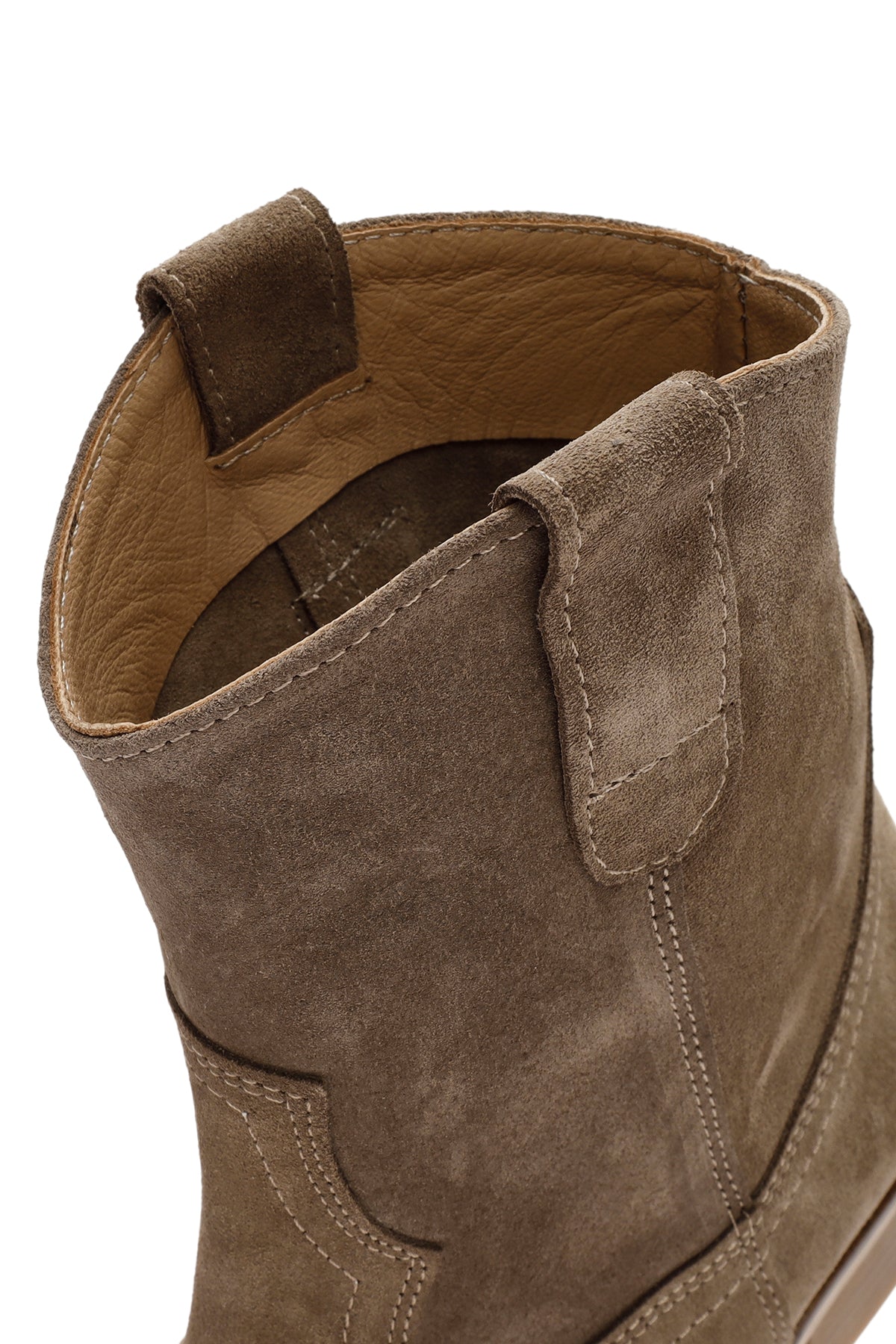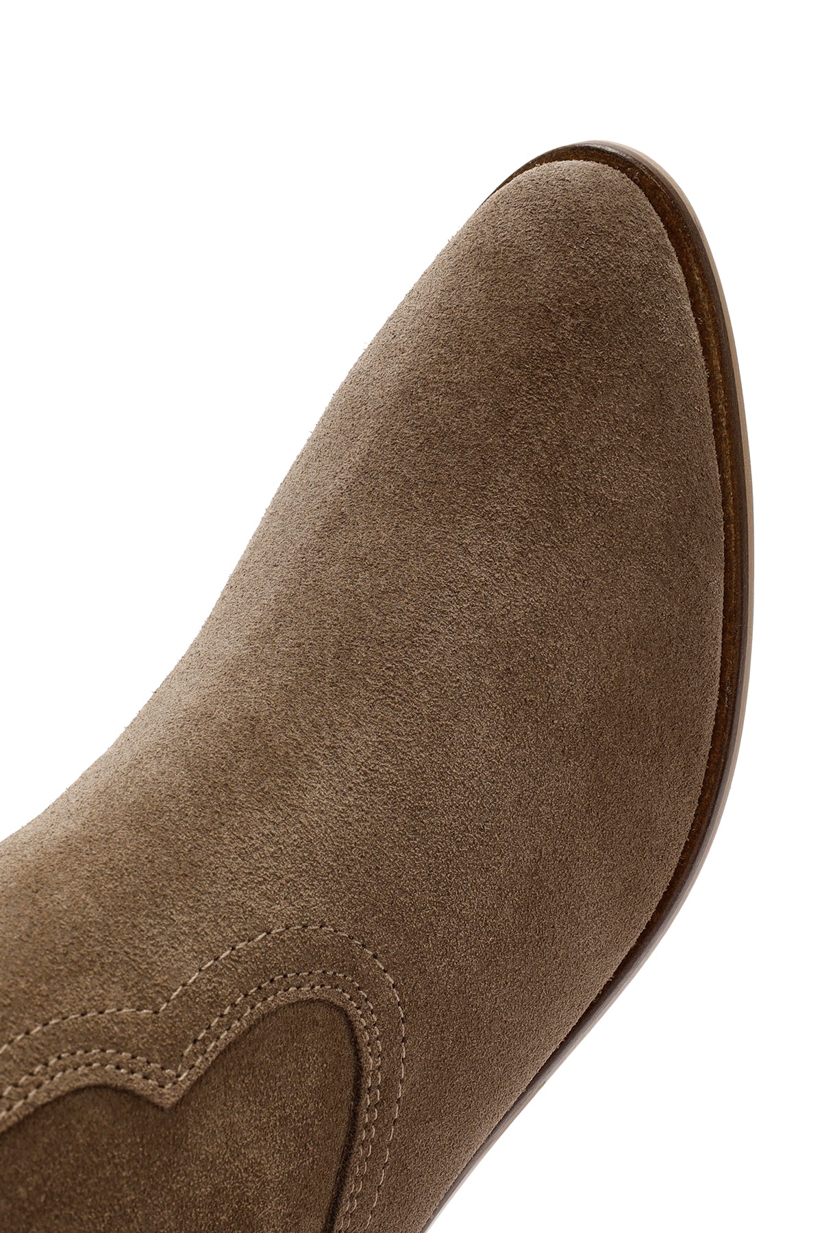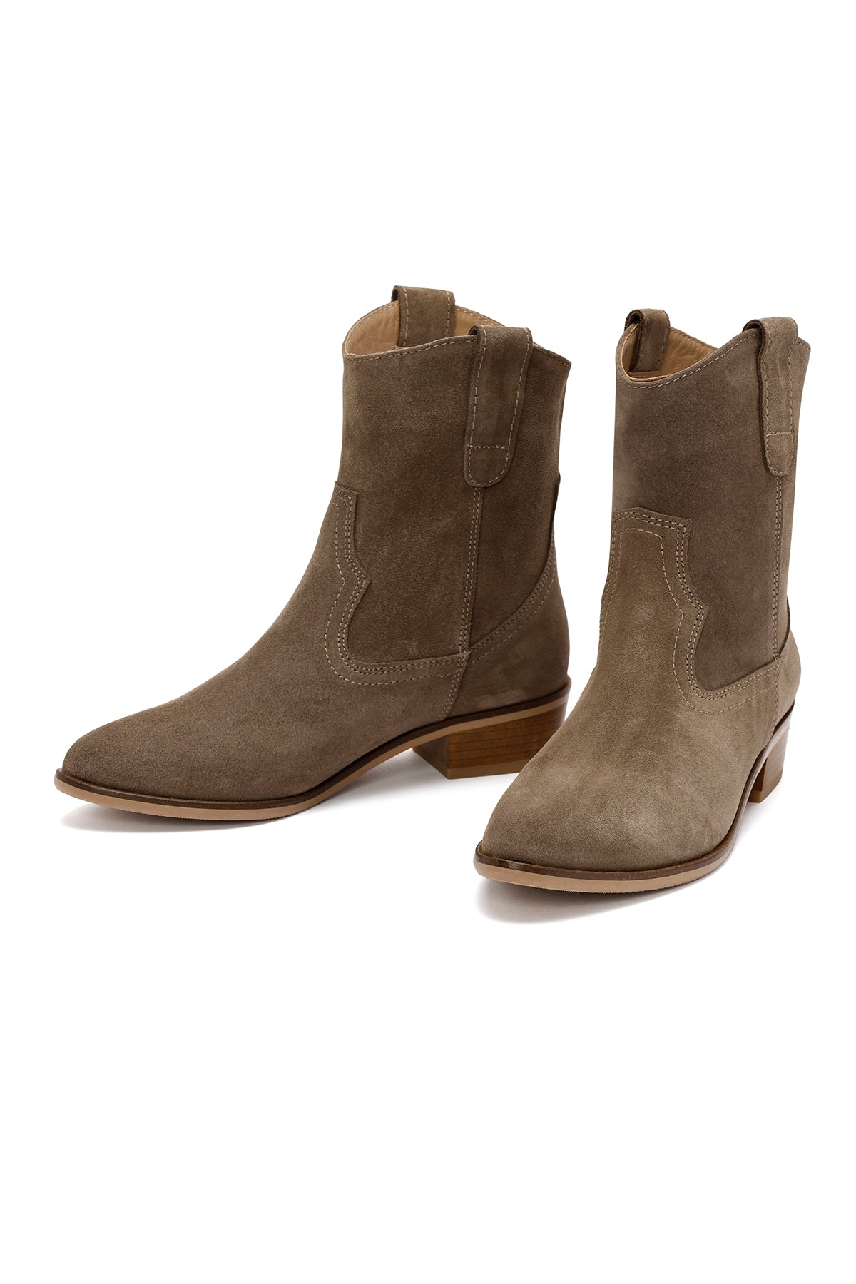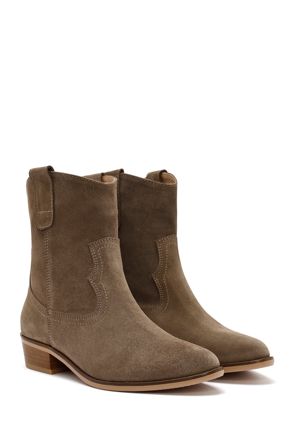 Sonbahar koleksiyonunun modern kovboy botu, vizon rengi süet deri üst yüzeyi ve klasik western tasarımıyla dikkat çekiyor. Deri-tekstil karma astar kullanımı ayağın nefes almasını sağlarken, 4 cm yüksekliğindeki topuk şık bir görünüm sunuyor. Yan kısımlardaki elastik detaylar giyip çıkarmayı kolaylaştırıyor. Özellikle sonbahar ve kış aylarında, hem casual hem şık giyim kombinleriyle mükemmel uyum sağlıyor. Kullanım alanları: Günlük aktiviteler, şehir gezmeleri ve özel davetler için ideal. Ürün kodu: 25AFD150610