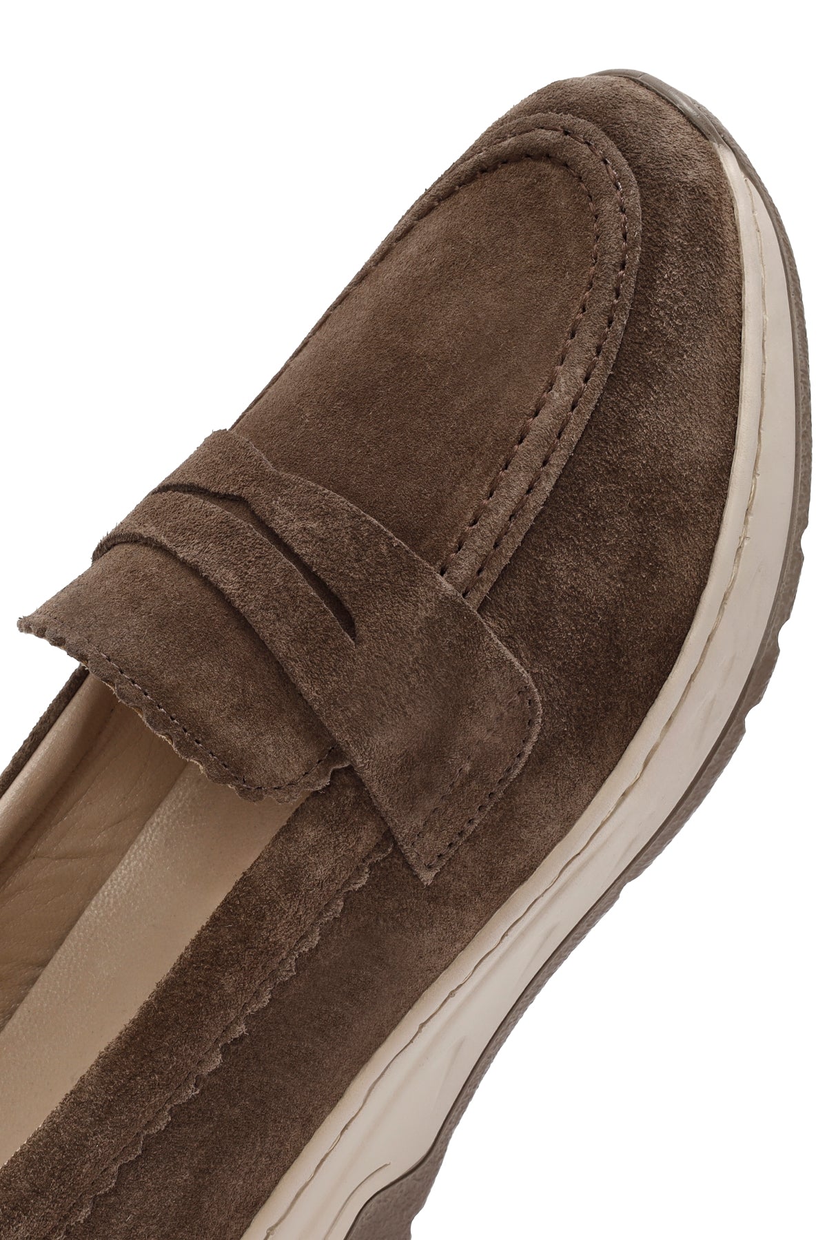 Vizon rengi süet deriden üretilen zarif loafer, modern tasarımı ve konforlu yapısıyla günlük kullanım için ideal bir seçenek sunuyor. 3,5 cm yüksekliğindeki topuğu ile dengeli bir duruş sağlarken, yumuşak süet deri yüzeyi ve deri iç astarı sayesinde maksimum konfor vadediyor. Nötr vizon tonu sayesinde her türlü kıyafetle uyum sağlayan model, sonbahar ve kış aylarında ofis kombinlerinden hafta sonu görünümlerine kadar geniş bir kullanım alanı sunuyor. Özellikle pantolon ve eteklerle kusursuz bir uyum yakalayan bu şık parça, günlük hayatın her anında size eşlik ediyor. Ürün kodu: 24WFD500710