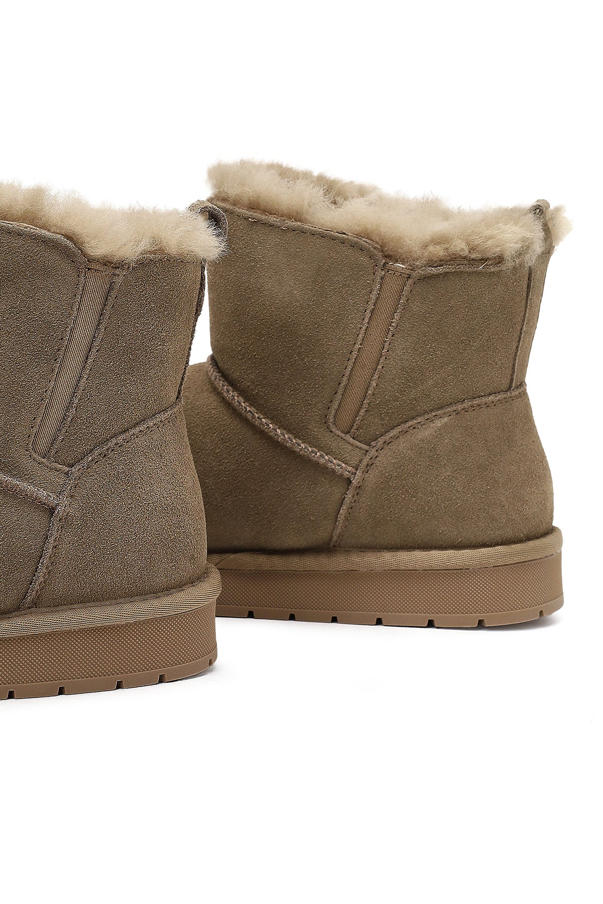 Derimod'un kış koleksiyonundan, vizon rengi süet deri ile tasarlanan Teddy bot modeli, 2,5 cm yüksekliğindeki tabanı ile günlük kullanıma uygun bir tasarım sunuyor. Kürklü iç astarı sayesinde soğuk kış günlerinde ayaklarınızı sıcak tutan model, bilek boyundaki teddy kürk detayı ile şık bir görünüm sergiliyor. Casual giyim tarzını benimseyenler için ideal olan bot, jean'lerden kaşe pantolonlara, örme elbiselerden günlük kombinlere kadar geniş bir kullanım alanı sunuyor. Sonbahar ve kış mevsimlerinde günün her saatinde kullanılabilir. Ürün kodu: 25WFD478110