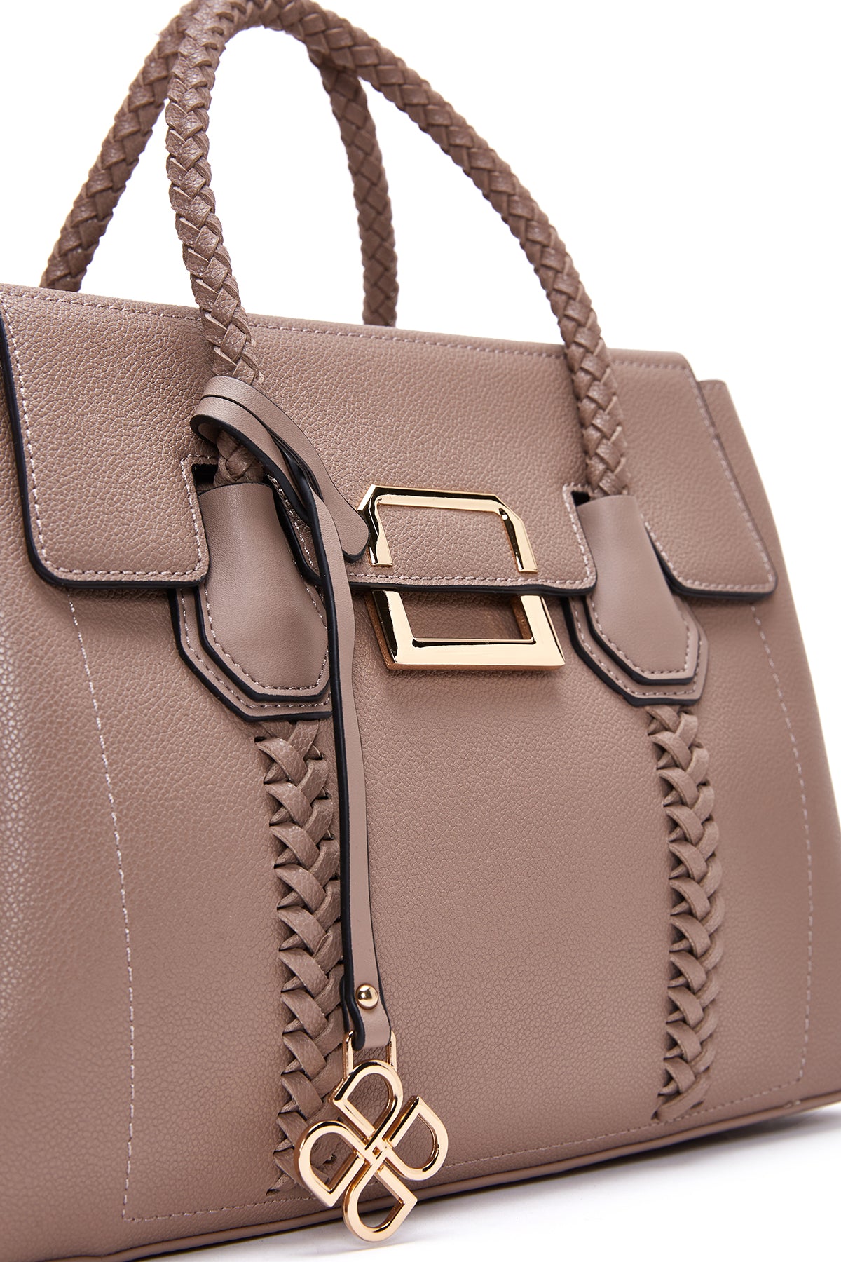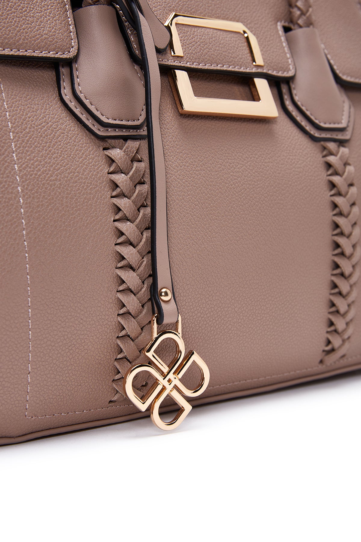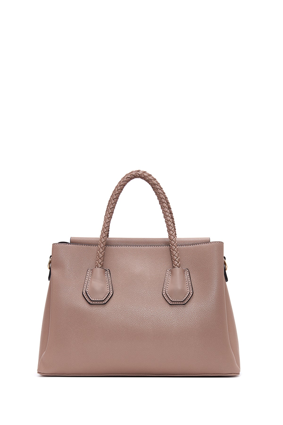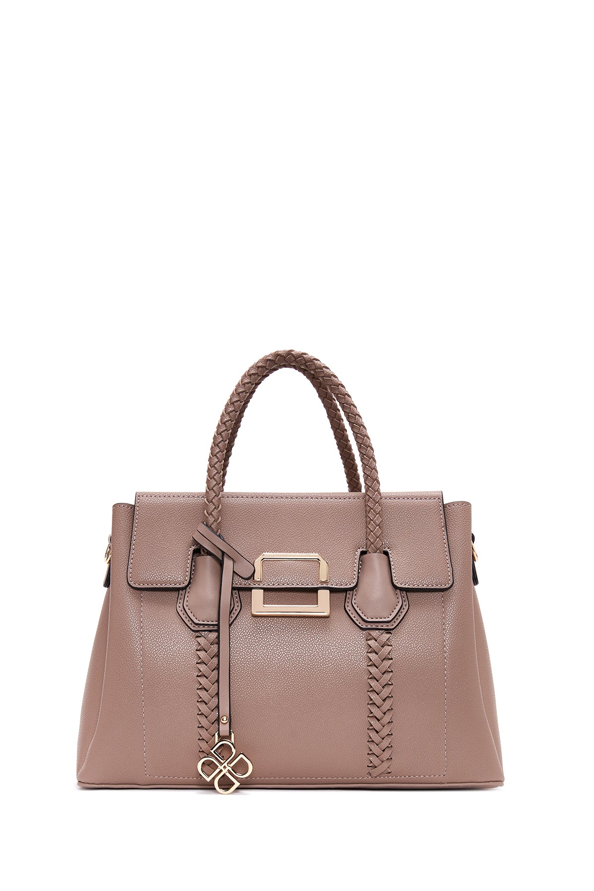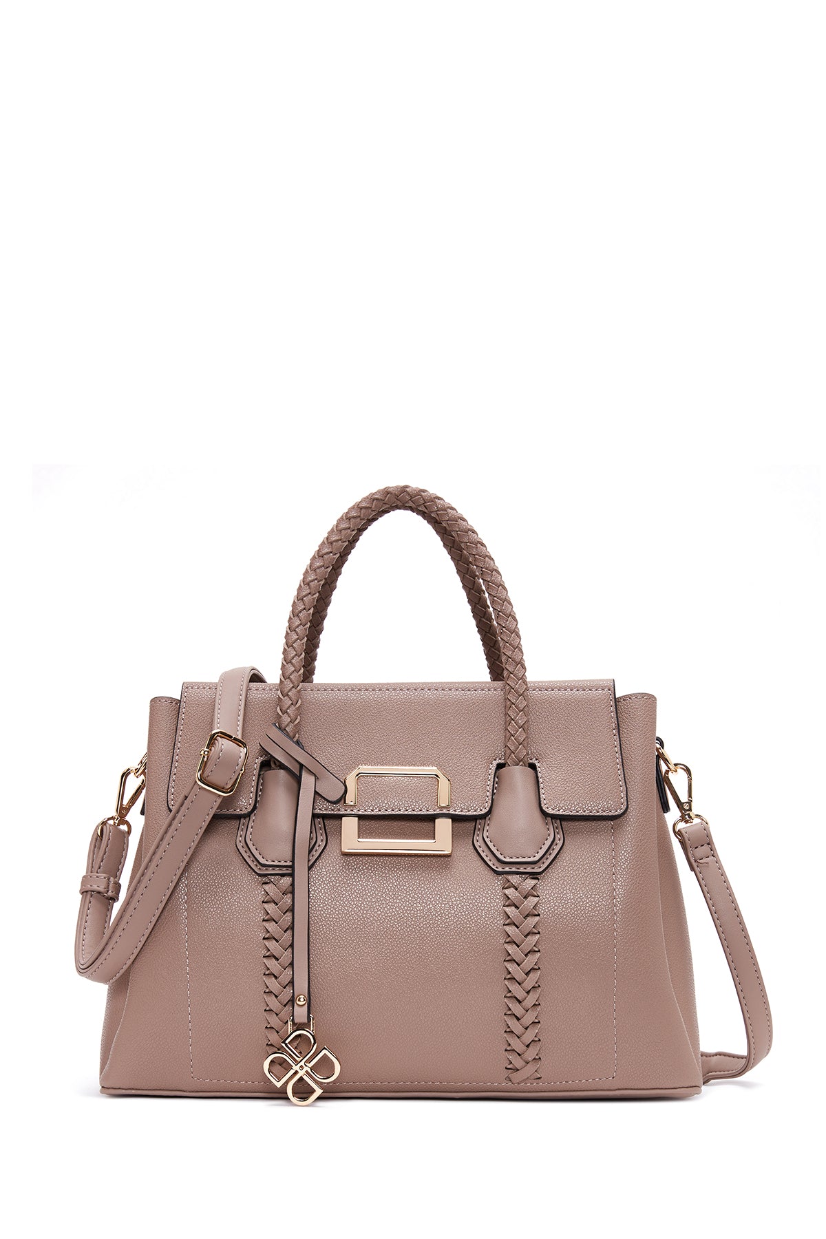 Kadın Vizon Uzun Askılı Örgü Detaylı Kol Çantası